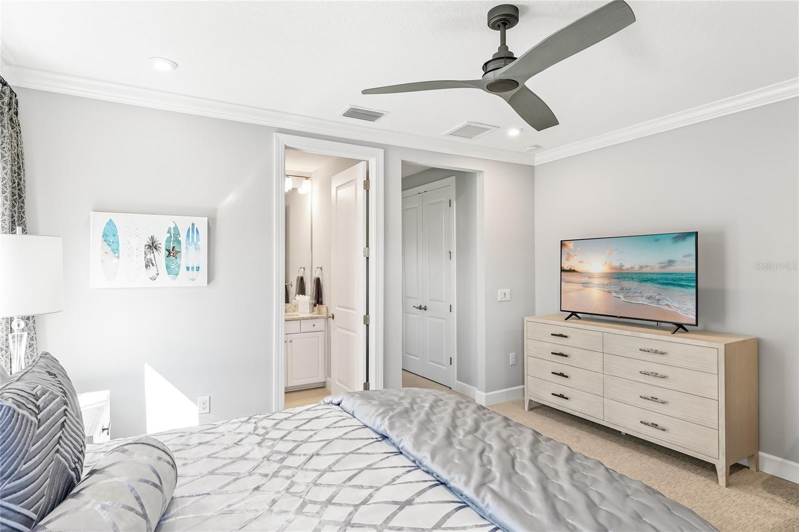 Perfection in Skye Ranch. This former Beacon model offers refined design and effortless indoor and outdoor living on a private preserve lot. Completed in 2020, the home features 4,541 square feet of thoughtfully curated space with soaring ceilings, a great room with custom built-ins and a fireplace, and an entertainer’s kitchen with an oversized island, built-in ovens, a walk-in pantry, and lit cabinetry. The main level includes a study, formal dining area, two en suite guest rooms, and an owner’s retreat with patio access, dual custom closets, and a spa bath with an oversized dual entry shower. Upstairs, a spacious game room with a wet bar and full bath adds flexibility for guests or recreation. Pocket sliders open to a resort-style lanai with pool, spa, and summer kitchen surrounded by peaceful preserve views. Features include impact windows, motorized shades, whole-home audio, three-zone HVAC, and a three-car garage. Located within the gated Cassia neighborhood, just minutes to top schools, Waterside, and Siesta Key.