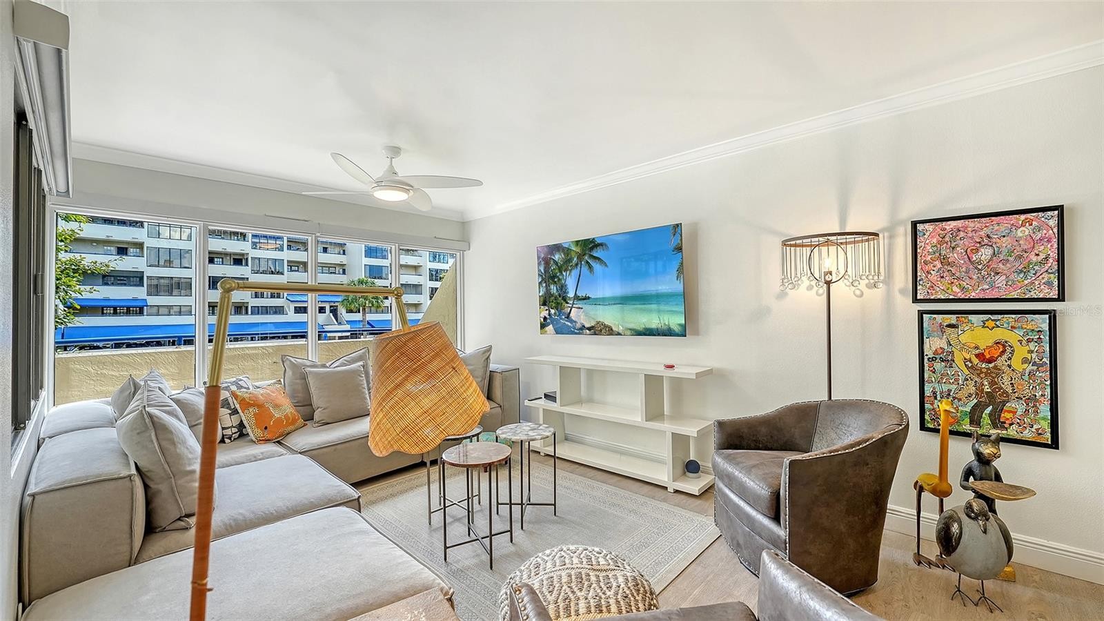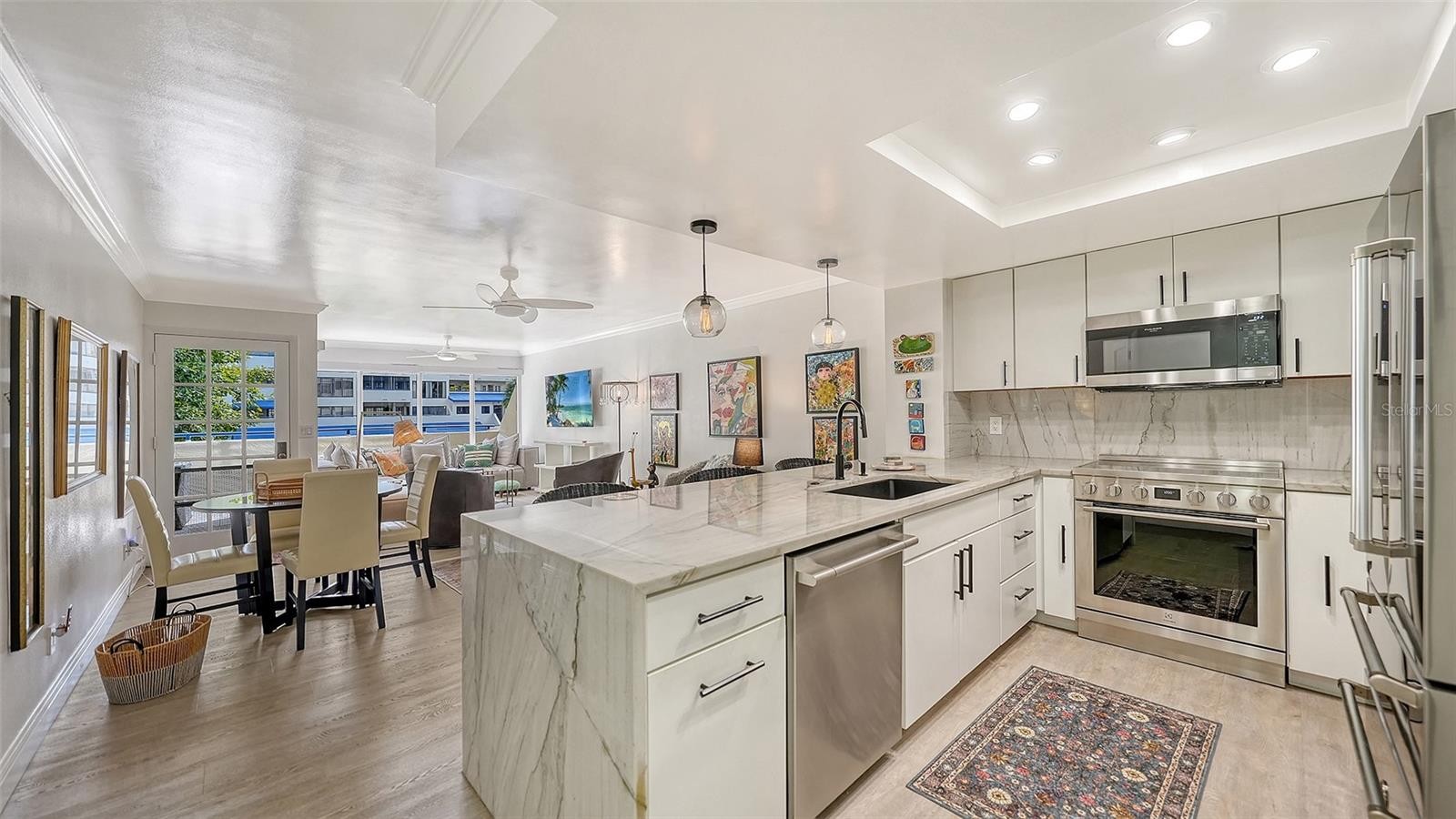Welcome to Central Park I in the heart of downtown Sarasota, where sophisticated design meets an exceptional location. This beautifully renovated 2-bedroom, 2-bath residence is offered fully furnished, presenting an effortless, move-in-ready opportunity in one of Sarasota’s most desirable boutique buildings. Inside, the thoughtfully reimagined interior features a bright, open-concept layout complemented by refined finishes and curated upgrades throughout. The designer kitchen is both striking and functional, showcasing elegant quartzite countertops and backsplash paired with premium Italian appliances by Bertazzoni and Fulgor Milano—a space equally suited for everyday living and stylish entertaining. The kitchen flows seamlessly into the main living and dining areas, creating an inviting atmosphere filled with natural light. Just beyond, a sunlit alcove provides a serene place to relax and unwind after a day enjoying all that downtown Sarasota has to offer. The living space opens to a southern-facing terrace overlooking Hudson Bayou and the community pool, while a covered portion allows for comfortable year-round outdoor enjoyment. The spacious primary suite serves as a private retreat, featuring elegant French doors leading to a bright east and south-facing terrace. The renovated en-suite bath offers a spa-like experience with a walk-in shower, stone vanity and a generous walk-in closet. A split guest bedroom and full bath provide ideal privacy and flexibility for visiting guests, a home office, or additional living space. Ideally situated in the sought-after Central Park I building, residents enjoy a coveted downtown lifestyle just moments from Southside Village, Palm Avenue’s renowned galleries, Marina Jack, Selby Gardens, and walking distance to the vibrant Sarasota Bayfront. Whether as a full-time residence or a refined seasonal retreat, this fully furnished, impeccably renovated condominium offers a rare blend of luxury, comfort, and walkable coastal living.
