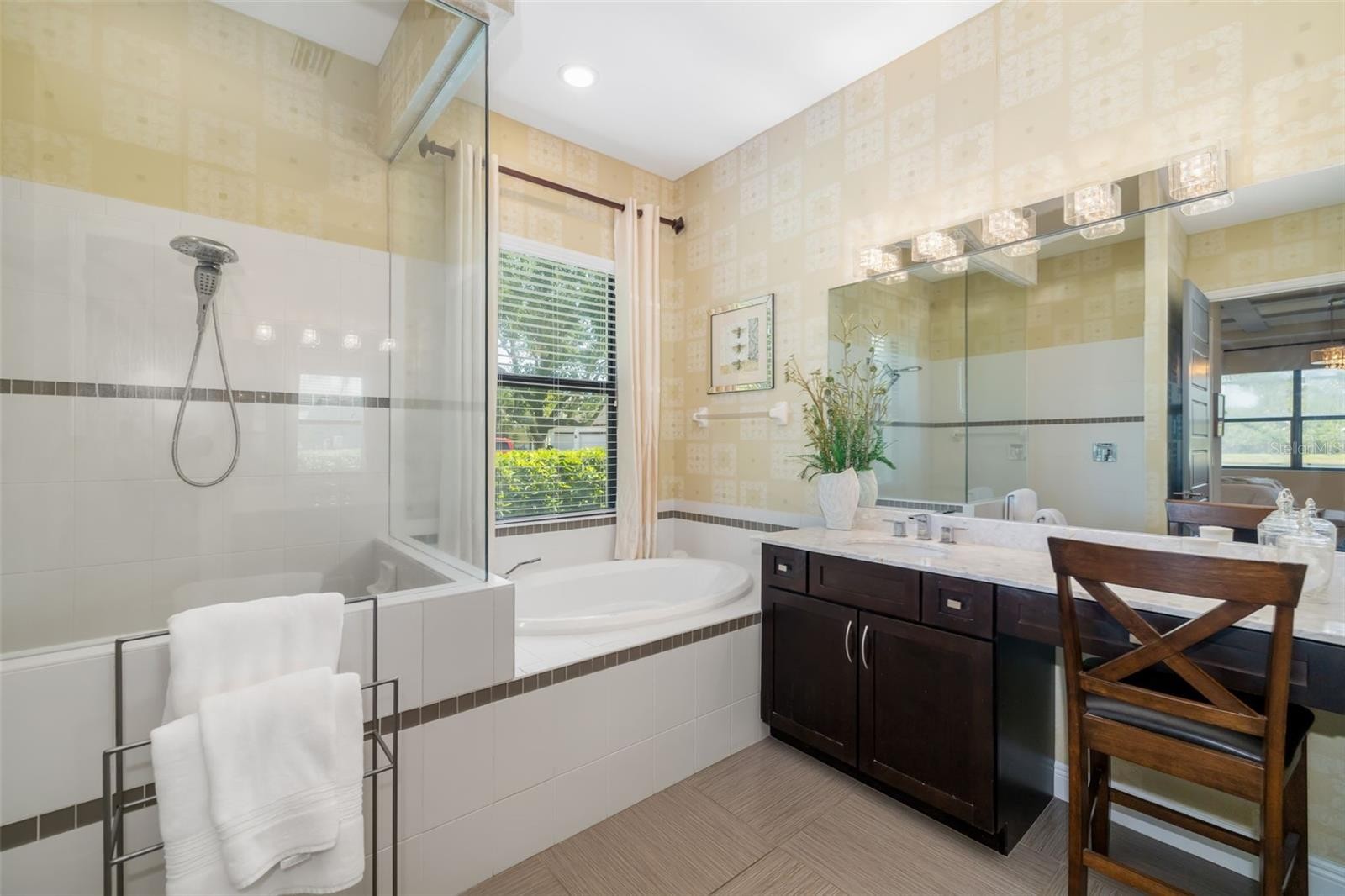 Welcome to 826 Honeyflower Loop, a beautifully maintained custom-built pool home located in the highly desirable gated community of Greyhawk Landing. This modern residence offers impact windows and doors, EV charger, whole-house surge protection, central vacuum, engineered hardwood flooring, designer lighting, and no carpet. Set on a picturesque lake and preserved lot, the home features an inviting open-concept layout with soaring ceilings and water views. The first floor primary suite provides a private retreat with dual custom walk-in closets and a spa-style bathroom with soaking tub, walk-in shower, and dual vanities. The gourmet kitchen is equipped with a Thermador gas range, Bosch dishwasher, granite countertops, spacious breakfast bar, with an adjacent dining room ideal for entertaining. Upstairs offers three guest bedrooms, two full baths, plus two large bonus rooms perfect for media, game room, home office, fitness, or the option for a fifth bedroom or in-law suite. The expansive screened lanai includes an updated textured marble surface (2025) and overlooks the sparkling pool with wide lake and preserve views for year-round Florida outdoor living. Greyhawk Landing residents enjoy resort-style amenities including multiple pools, fitness center, tennis and pickleball courts, sports fields, playgrounds, miles of nature trails, fishing pier. With proximity to Lakewood Ranch, A-rated schools, IMG Academy, premier golf courses, top beaches, medical facilities, and everyday conveniences, this home offers the ideal blend of luxury, comfort, and lifestyle in one of Bradenton’s most sought-after communities.