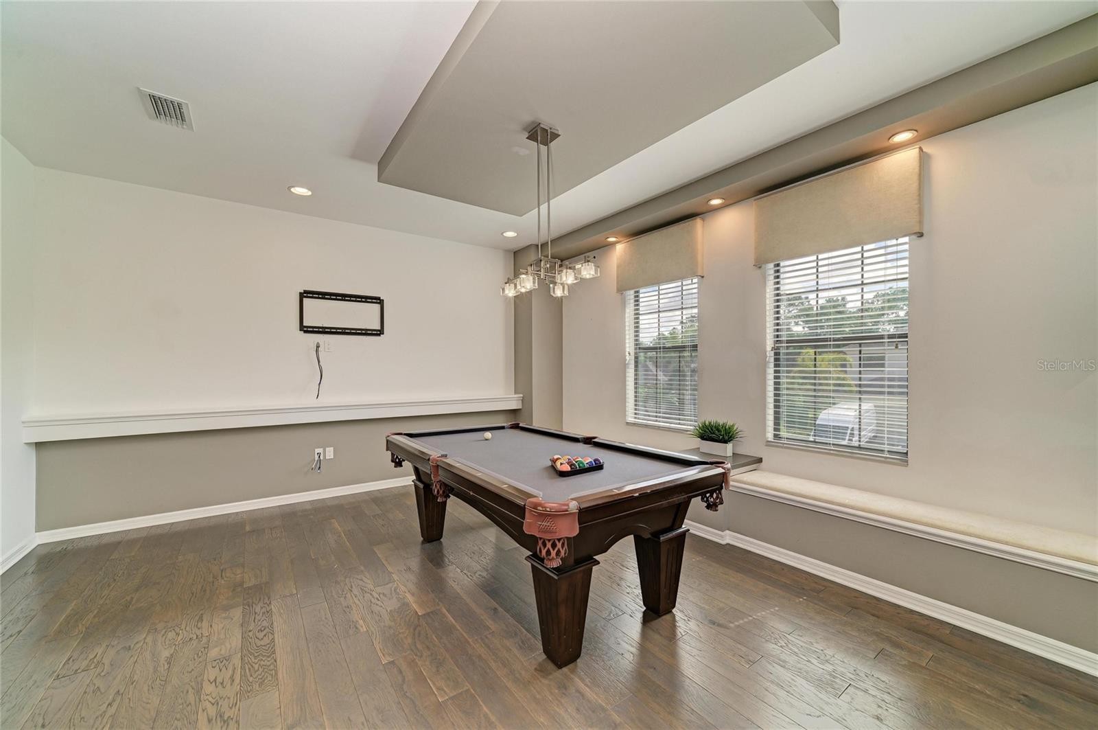 Positioned within the gates of GreyHawk Landing, this former Homes by Towne Sawgrass model showcases refined two-story living with distinctive architectural detail and thoughtfully designed spaces throughout. Originally built to highlight the builder’s craftsmanship, the residence features extensive trim work, custom built-ins, and a spacious floor plan tailored for both everyday comfort and effortless entertaining. The main living areas are finished in elegant tile flooring, while the bedrooms feature engineered hardwood, creating a clean, cohesive interior with NO CARPET. At the heart of the home, the gourmet kitchen is appointed with upgraded appliances, including a THERMADOR COOKTOP and BOSCH DISHWASHER, along with abundant workspace and a layout that flows seamlessly into the surrounding gathering areas, ideal for both casual living and hosting guests. Upstairs, a generous loft and separate recreation room provide flexible space for a media lounge with ceiling speakers, game room with POOL TABLE, or additional living area. Outdoor living embraces Florida’s indoor-outdoor lifestyle. A spacious screened lanai overlooks a tranquil pond, while the TEXTURED MARBLE TILE DECK frames the private pool and spa, offering ample space for relaxing and entertaining. CUSTOM LANAI LIGHTING enhances the setting as the day transitions into evening. A convenient pool bath, positioned separate from the main living areas, provides easy access for outdoor use. Landscape lighting highlights the lush surroundings and adds to the home’s evening ambiance. Additional features include a three-car garage with EV charger, whole-house surge protector, IMPACT WINDOWS AND DOORS, central vacuum system, laundry room featuring an LG WASHER AND DRYER with utility sink, and custom closets in the primary suite. Residents of GreyHawk Landing enjoy a gated, master-planned setting spanning nearly 1,000 acres, with over half the community preserved as natural open space featuring ponds, wetlands, and mature wooded areas. Community amenities include two clubhouses, a lagoon-style pool with water features, a separate lap pool, fitness center, tennis, pickleball and basketball courts, sports fields, fishing dock, and miles of scenic walking and biking trails. Conveniently located just east of I-75 in Bradenton, residents have easy access to Lakewood Ranch, downtown Sarasota, top-rated schools, shopping, and dining. The Gulf Coast beaches, including Anna Maria Island, are just a short drive away, offering an exceptional balance of natural beauty, community living, and coastal convenience. Theme parks are also within reach for an easy day trip.