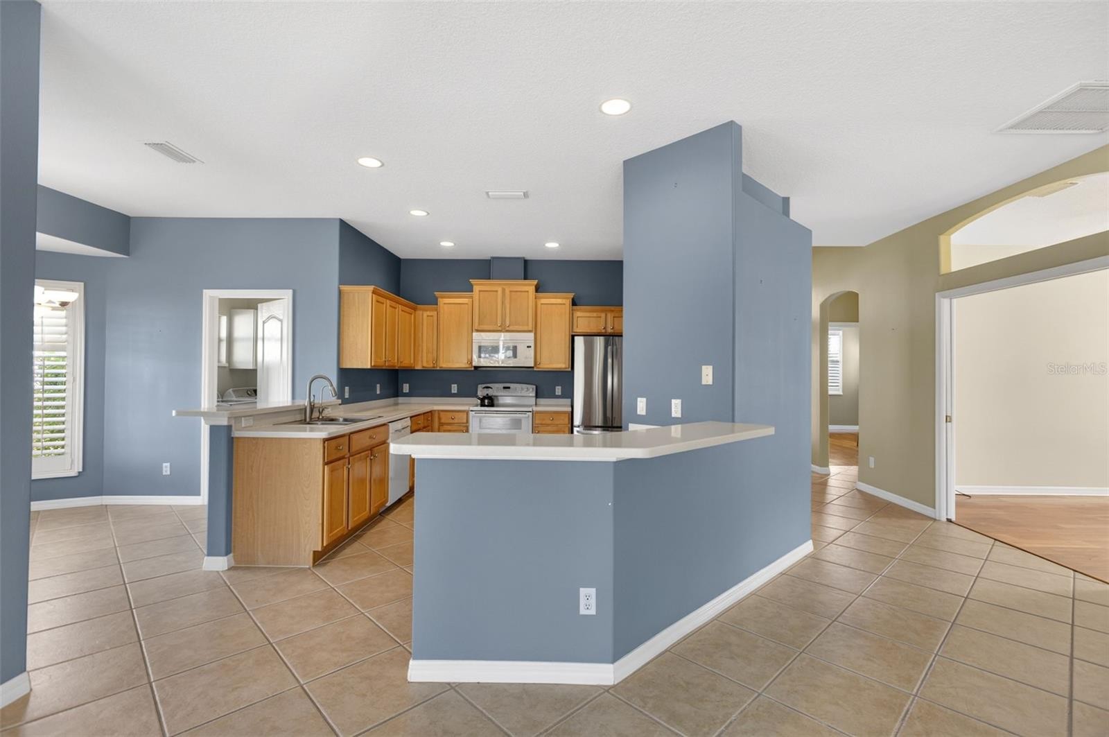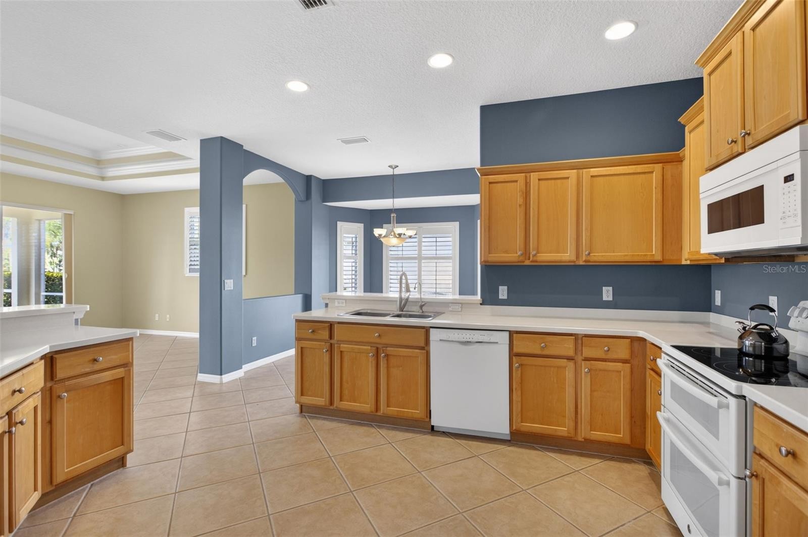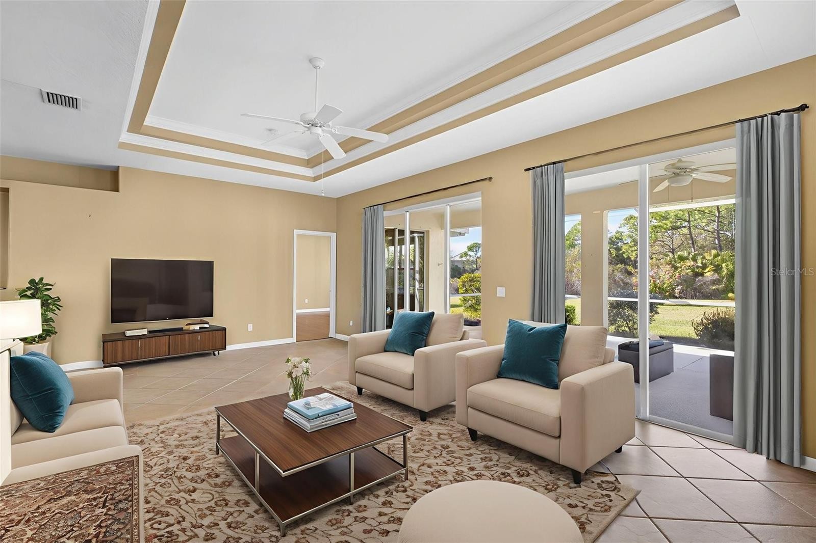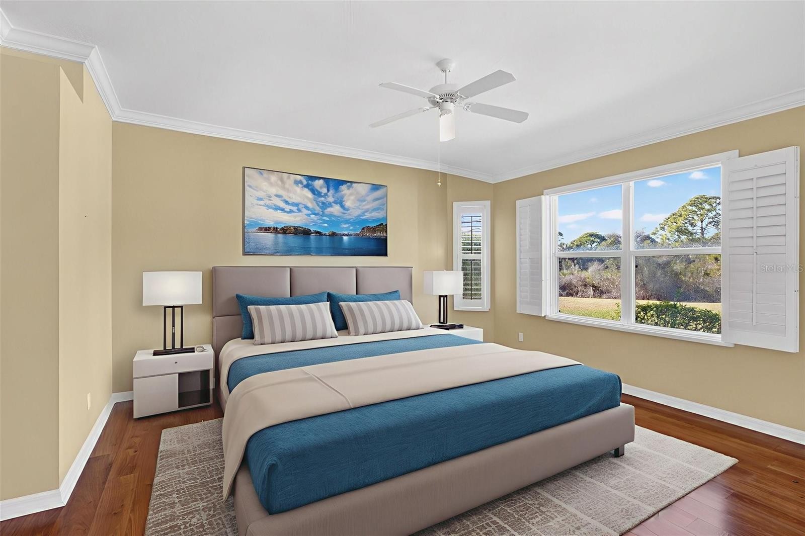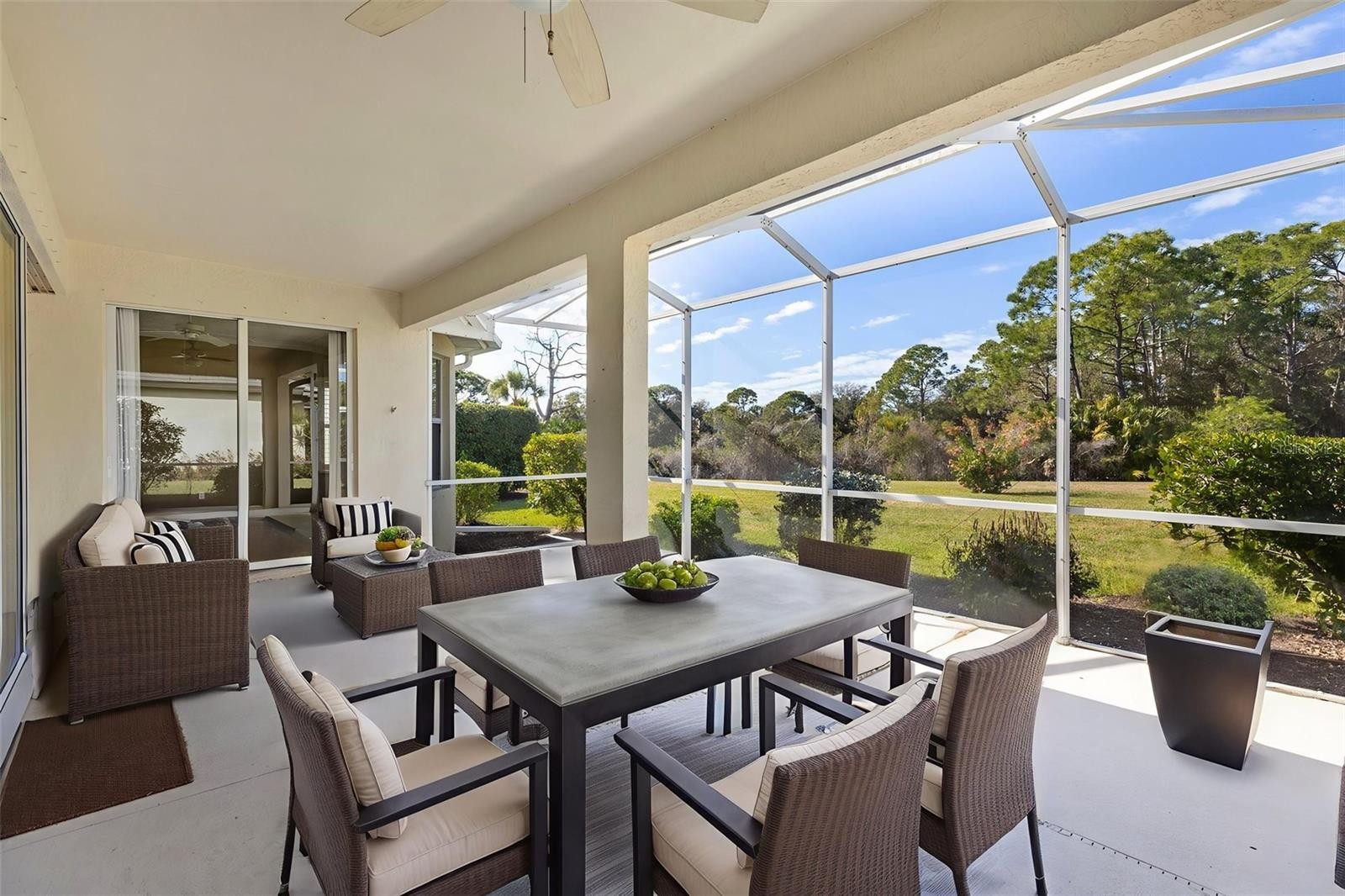 A rare, light-filled, meticulously-maintained tranquil sanctuary with an estate-sized .28-Acre Zone X Preserve- backed lot in the coveted The Woodlands at Rivendell! Maintenance-free Living, Low HOA Fees, and No Required Flood Insurance saves you thousands yearly. Newly Priced at $529,900 Elegance, privacy, and peace of mind come together effortlessly as you enter this amazing 400-acre community of lakes, preserves, and walking trails, that provide residents a peaceful, park-like setting just minutes from everything. From the moment you step inside, sunlight pours through 15-foot sliding glass doors, connecting the refined interior to a large covered lanai and lush natural vistas. Double tray ceilings, crown molding, custom plantation shutters, and rich cherry hardwoods create a refined atmosphere. The flexible home office features dual pocket doors, easily serving as a nursery or third bedroom. The open floor plan enhances both everyday living and entertaining, with expansive sightlines that keep nature's views front and center. The kitchen offers generous Corian countertops, abundant cabinetry, two breakfast bars, and newer quality appliances — all complemented by a reverse-osmosis drinking water system. A bright dining-area bump-out bathes the kitchen and living spaces in natural light throughout the day. The primary suite is a peaceful retreat, featuring a sunlit bay-window bump-out, private sliding-door access to the lanai, and two walk-in closets. The spa-inspired ensuite bath includes a large walk-in shower, a soaking tub, and a dual-sink vanity designed for both comfort and function. The guest bedroom is equally inviting with its own bay windows, ample closet space, and a full bath conveniently located just outside the door. Exceptional Infrastructure & Reliability: HVAC (2022): High-efficiency with UV air purification. Water Heater (2023): Dual-element electric for rapid heating. Kinetico System: Whole-home softening, carbon filtration, and UV treatment for "bottle-quality" water from every tap. Outdoor living is both serene and cost-efficient. The oversized lawn is supported by a private irrigation well with a new six-zone controller that will save you thousands every year in water bills, while affordable professional landscaping is included through an HOA. The over-sized 2-car garage adds practical flexibility with built-in storage, a utility sink, and a second refrigerator/freezer. Ideally positioned between the hustle and bustle of Sarasota and Venice, Rivendell in Osprey is next door to Florida’s #1-ranked Pine View School, the Legacy Trail, and Gulf beaches. Offering brilliant morning sun, dazzling sunset views over the preserve, and a sense of calm that’s increasingly hard to find, this move-in ready sanctuary is ready for its next chapter.