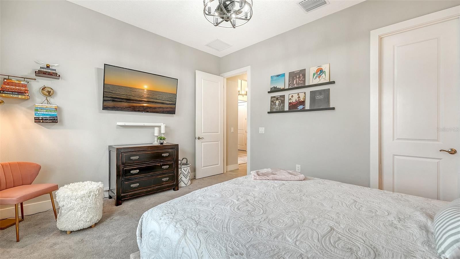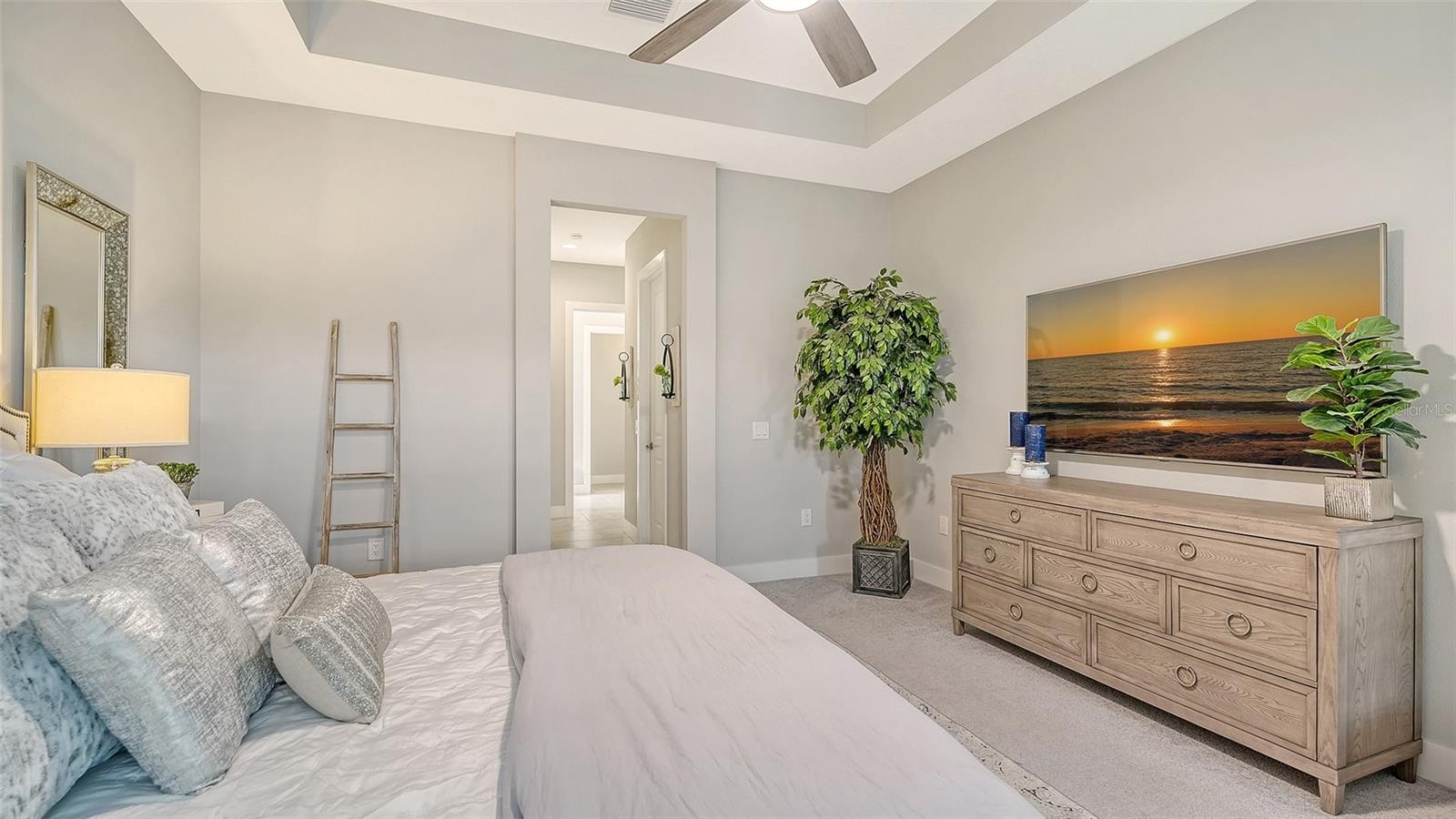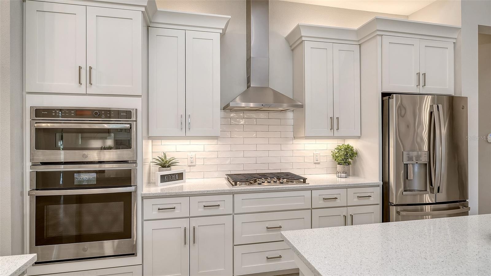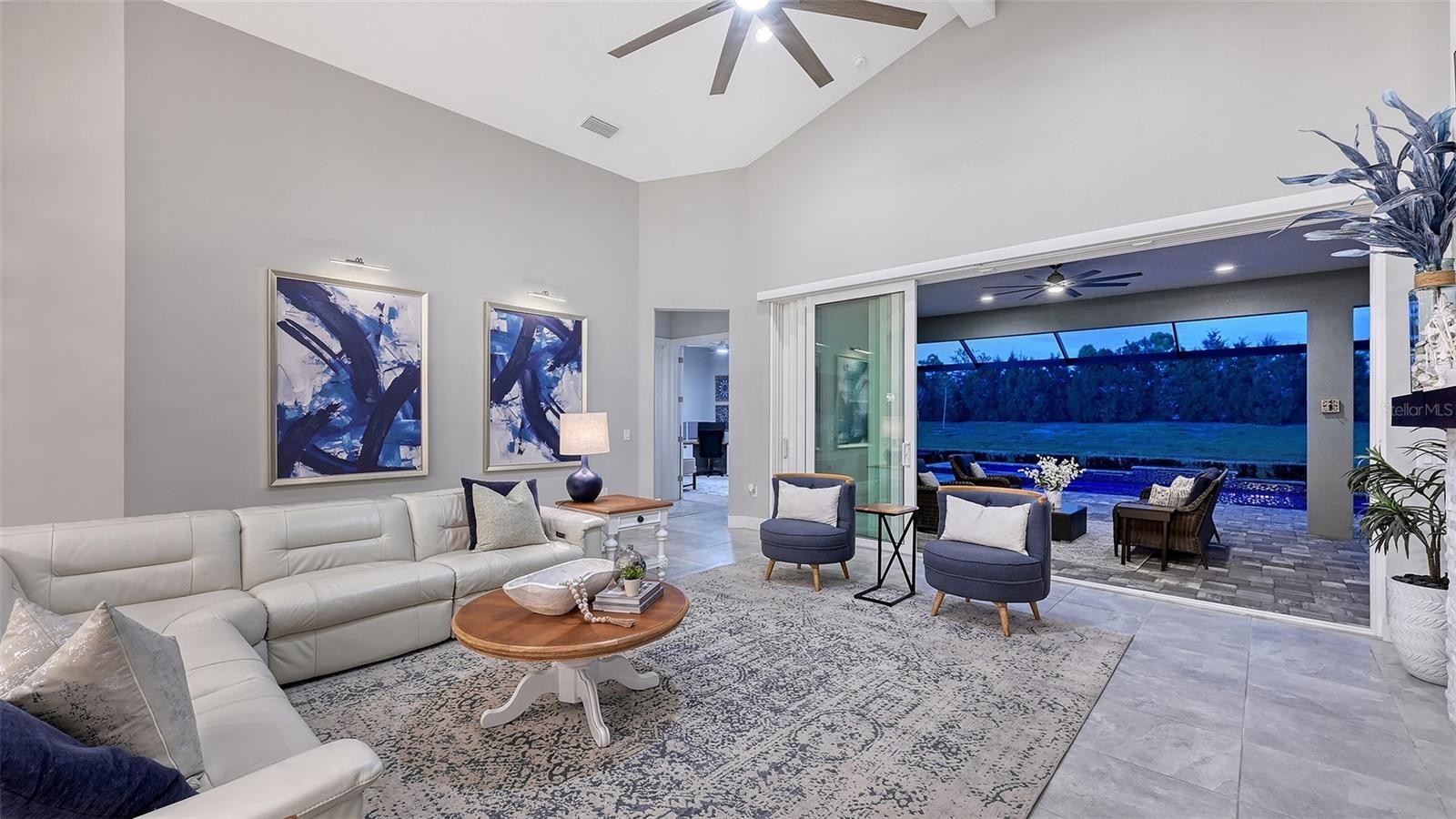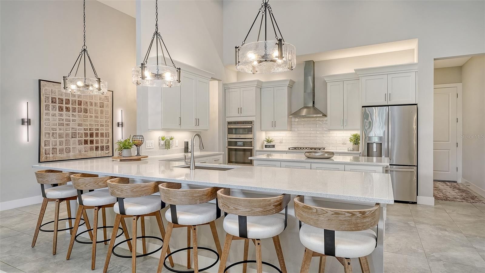 This tastefully designed Weatherly floor plan offers 3 full bedrooms, a dedicated office/study, and a versatile flex space ideal for a second bonus room or den, all thoughtfully arranged to maximize both function and style. The home’s beautiful water view sets the tone for the fully upgraded outdoor living space, where a caged-in lanai with panoramic screening and concrete pavers creates a polished backdrop for everyday enjoyment and entertaining. The resort-style pool and spa with three waterfalls and a sun shelf bring a true luxury feel outdoors, while the premium outdoor kitchen with AOG grill, refrigerator, sink, custom powder-coated hurricane shutter, outdoor ceiling fans, fenced dog run, and redesigned front and rear landscaping make the exterior just as impressive as the interior. Inside, the home continues with a long list of elevated finishes and custom details, including a gourmet kitchen with gas cooktop, range hood, stainless GE appliances, quartz countertops, an oversized peninsula bartop that seats 6, an oversized island with extra storage, soft-close cabinetry, and a butler’s pantry complete with a wine fridge and 36-bottle wine rack. Plantation shutters throughout, impact glass windows and doors, electric shades on the rear sliding doors, vaulted ceilings, tray ceilings, upgraded light fixtures and chandeliers, and quartz countertops throughout add both style and substance. The entry makes a strong first impression with a custom floating cabinet and designer mirror feature wall, while the living room is anchored by a dramatic 100-inch fireplace with mirrored feature wall. The flex space is further enhanced by a wood accent ceiling, and the owner’s suite offers two walk-in closets, private lanai access, a tray ceiling, and an ensuite bath with dual vanities and a step-in shower. A well-equipped laundry room with utility sink and cabinets adds convenience, and thoughtful extras like a Ring camera complete the home. Located in LakeHouse Cove at Waterside in Lakewood Ranch, residents enjoy access to a state-of-the-art community center, fitness center, resort-style pool, pickleball courts, bocce ball, a dog park, playground, kayak launch and storage, and lifestyle programming through the community’s lifestyle director. LakeHouse Cove is part of Waterside, Lakewood Ranch’s first village in Sarasota County, with convenient access to Waterside Place, where residents can enjoy dining, shopping, events, trails, green space, and waterfront gathering areas. Its central location also puts you just a short drive from Sarasota-Bradenton International Airport (SRQ), with convenient access to Tampa International Airport (TPA) for additional domestic and international travel options. University Town Center’s shopping, dining, and everyday conveniences are nearby, and some of the area’s most sought-after Gulf Coast destinations, including Sarasota and Bradenton beaches, are easily within reach. The location also offers convenient access to several area private school options, including The Out-of-Door Academy’s Lakewood Ranch campus, Saint Stephen’s in Bradenton, and Cardinal Mooney High School in Sarasota.