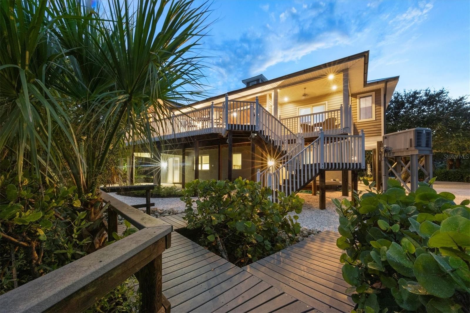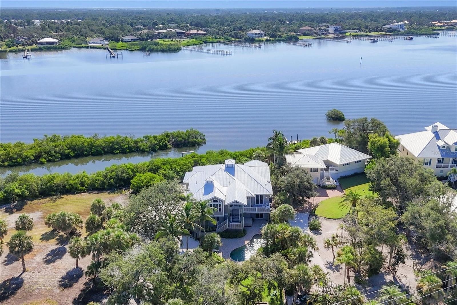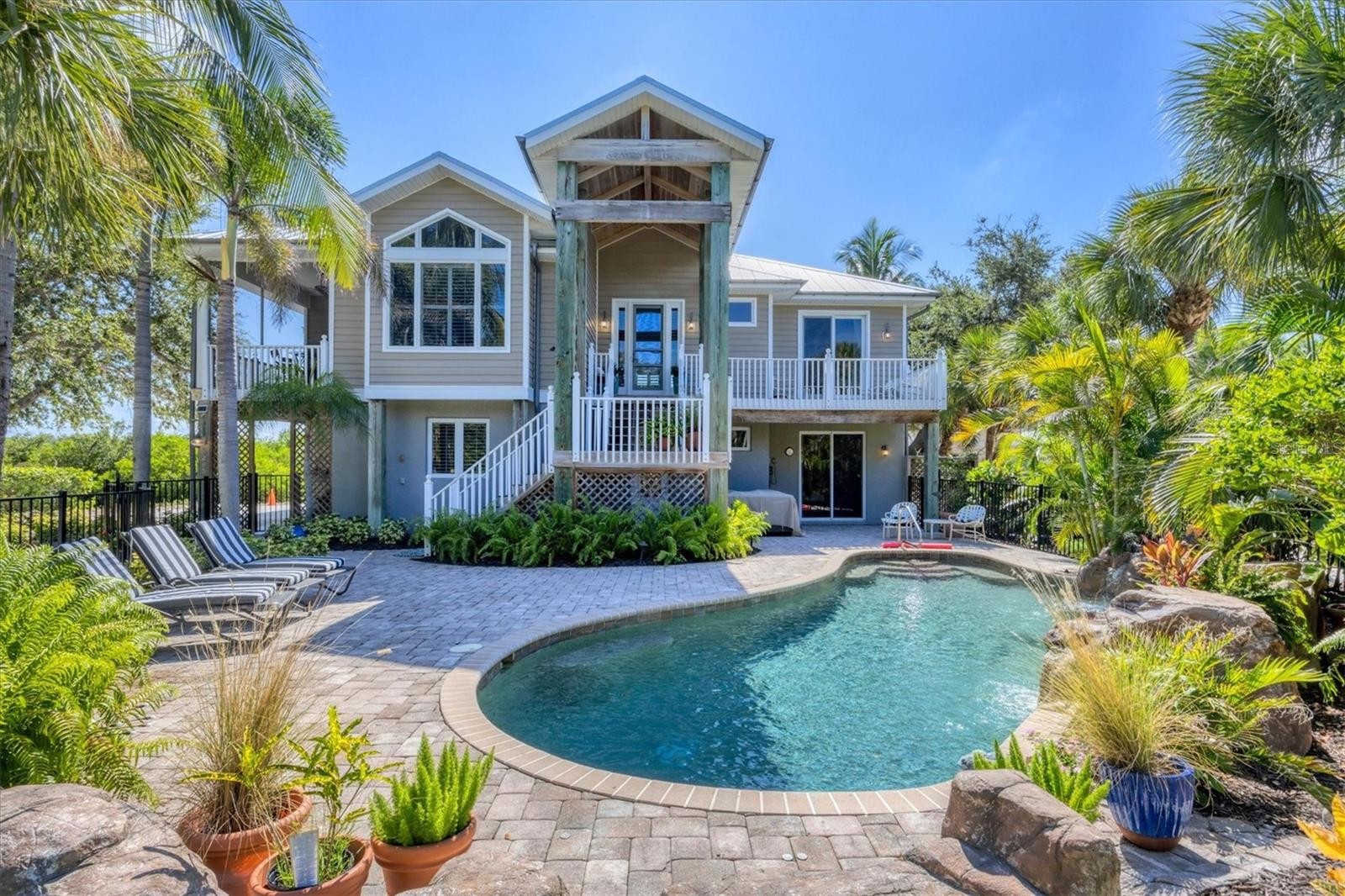LUXURY WATERFRONT HOME WITH EXCEPTIONAL FEATURES AND PRIME LOCATION Experience the epitome of Florida Waterfront living in this meticulously maintained, better-than-new three bedroom, three bath home and three car garage. Nestled along the serene Intercoastal waterway, this stunning residence offers a perfect blend of elegance, comfort, and outdoor leisure. Streaming with natural light, the open floor plan features soaring vaulted ceilings crafted from warm cypress wood, and stylish tile flooring, Generator Impact Hurricane windows & sliding doors add peace of mind and ultimate comfort, Recent Upgrades include: New Metal Roof, Septic System, Hot Tub, landscaping, Pool heater and motor, New elevator cab, motor & hydraulic system & controls. Relax in the heated saltwater pool, surrounded by beautifully landscaped gardens. Enjoy direct access to your private boat dock, Ideal for boating, fishing, and water adventures. This home boasts two inviting porches, one perfectly positioned for sipping your morning coffee while the sun rises, and the other offering breath taking sunsets. Two deeded beach easements provide exclusive access to pristine shoreline, offerings the ultimate coastal lifestyle. A spacious, air-conditioned flex area for hobbies or workshop. This property stands out as a pristine move-in-ready home, with Whole Home Generator. Don't miss this opportunity. County Records has property listed as 2 bedroom, 3 bathroom home.