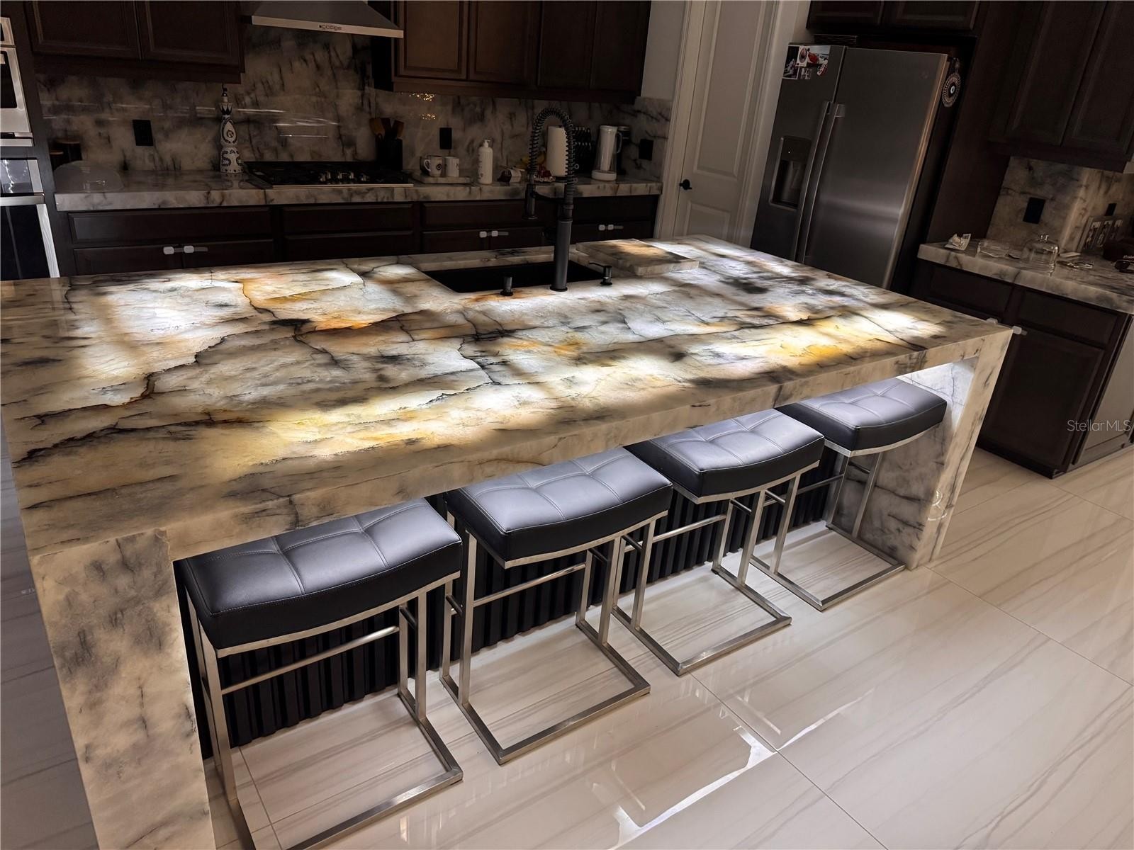 Beautifully upgraded and impeccably maintained, this stunning 3-bedroom plus den residence offers refined design, thoughtful details, and tranquil water views in the heart of Lakehouse Cove at Waterside. Every bedroom features a walk-in closet, and the 3-car garage provides exceptional storage and functionality. The heart of the home showcases a striking translucent quartzite island with custom island lighting, complemented by custom light fixtures throughout, 48x48 porcelain tile flooring, and 8-foot interior doors that enhance the home’s modern, open feel. A dramatic custom fireplace, two accent walls, elegant uplighting, and ceiling speakers elevate the main living spaces. Expansive 9-foot sliding doors create a seamless indoor-outdoor connection, while the service window adds ease for entertaining. The primary suite delivers a spa-like retreat with upgraded bathroom fixtures and a luxurious rain shower. Additional highlights include a custom office sliding door, new AC system, enhanced landscaping, and hurricane shutters for all windows and sliding doors, complete with pre-drilled screws for easy installation and peace of mind. Life in Lakehouse Cove at Waterside offers true resort-style living with a lakefront pool and spa, fitness center, clubhouse, pickleball courts, walking trails, dog parks, boathouse, kayak launch, and a water taxi to Waterside Place. Just steps away, enjoy waterfront dining, boutique shopping, and vibrant community events. Ideally located minutes from downtown Lakewood Ranch, UTC Mall, the new Mote Marine Aquarium, championship golf, Sarasota’s Gulf beaches, and downtown Sarasota.**THIS PROPERTY QUALIFIES FOR A 1% LENDER INCENTIVE IF USING PREFERRED LENDER. INQUIRE FOR MORE DETAILS.*