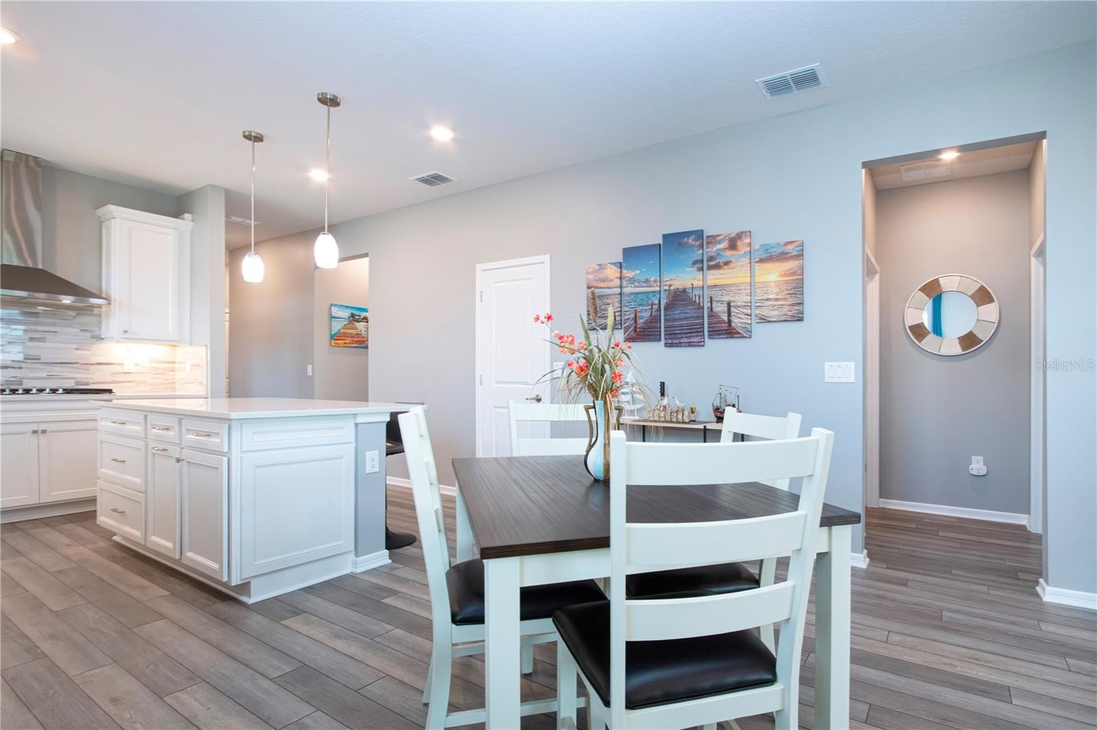 Rare Opportunity in Del Webb BayView – Privacy, Space, and Resort-Style Living. If you’ve been waiting for the right home in Del Webb BayView, this one stands out. Built in 2022 and located on a quiet cul-de-sac, this beautifully maintained Contour model by Pulte Homes offers 2 bedrooms, 2 bathrooms, a versatile flex room, and 1,405 square feet of thoughtfully designed living space that feels open, comfortable, and easy to enjoy. Step inside and you’ll immediately notice the luxury vinyl plank flooring that runs throughout the main living areas, creating a seamless and modern feel. The open-concept layout allows the kitchen, dining space, and gathering room to flow naturally together, making the home feel larger while creating the perfect environment for entertaining or relaxing. The kitchen is designed as the centerpiece of the home, featuring quartz countertops, Whirlpool stainless steel appliances, elegant cabinetry, and a spacious center island where friends and family naturally gather. The owner’s suite provides a quiet and comfortable retreat, complete with a walk-in closet, dual vanities, and a walk-in shower featuring bench seating and a rain shower head. A separate guest bedroom and bath provide privacy for visitors, while the flex room is ideal for a home office, hobby room, or den. One of the most desirable features of this home is the outdoor space. The extended 30-foot screened lanai opens to a large private backyard, offering plenty of room to relax or entertain. The home sits on an oversized pie-shaped lot with generous spacing between neighboring homes, creating a sense of openness and privacy that buyers rarely find in this community. Additional highlights include ceiling fans throughout and a durable polyaspartic-coated garage floor, and the owner is open to offering the furnishings separately, creating a potential turnkey opportunity. Living in Del Webb BayView means enjoying one of the area’s most impressive active-adult communities. The 22,562-square-foot Driftwood Clubhouse serves as the social hub, offering a fitness center, on-site dining at the Sailfish Bar & Grille, pickleball and tennis courts, bocce, shuffleboard, scenic walking trails, and resort-style pools including a zero-entry pool, resistance pool, and spa. A full-time lifestyle director keeps the calendar full of clubs, classes, and events. Located just a short drive from Sarasota, St. Petersburg, and Tampa, residents enjoy convenient access to beaches, dining, shopping, and entertainment while still enjoying the peaceful atmosphere of this vibrant community. HOA fees include cable, internet, and lawn maintenance, allowing you to enjoy a truly low-maintenance lifestyle. Opportunities for homes with this combination of privacy, lot size, and upgrades don’t come along often in Del Webb BayView. Schedule your private showing and see why so many buyers are choosing this exceptional community!