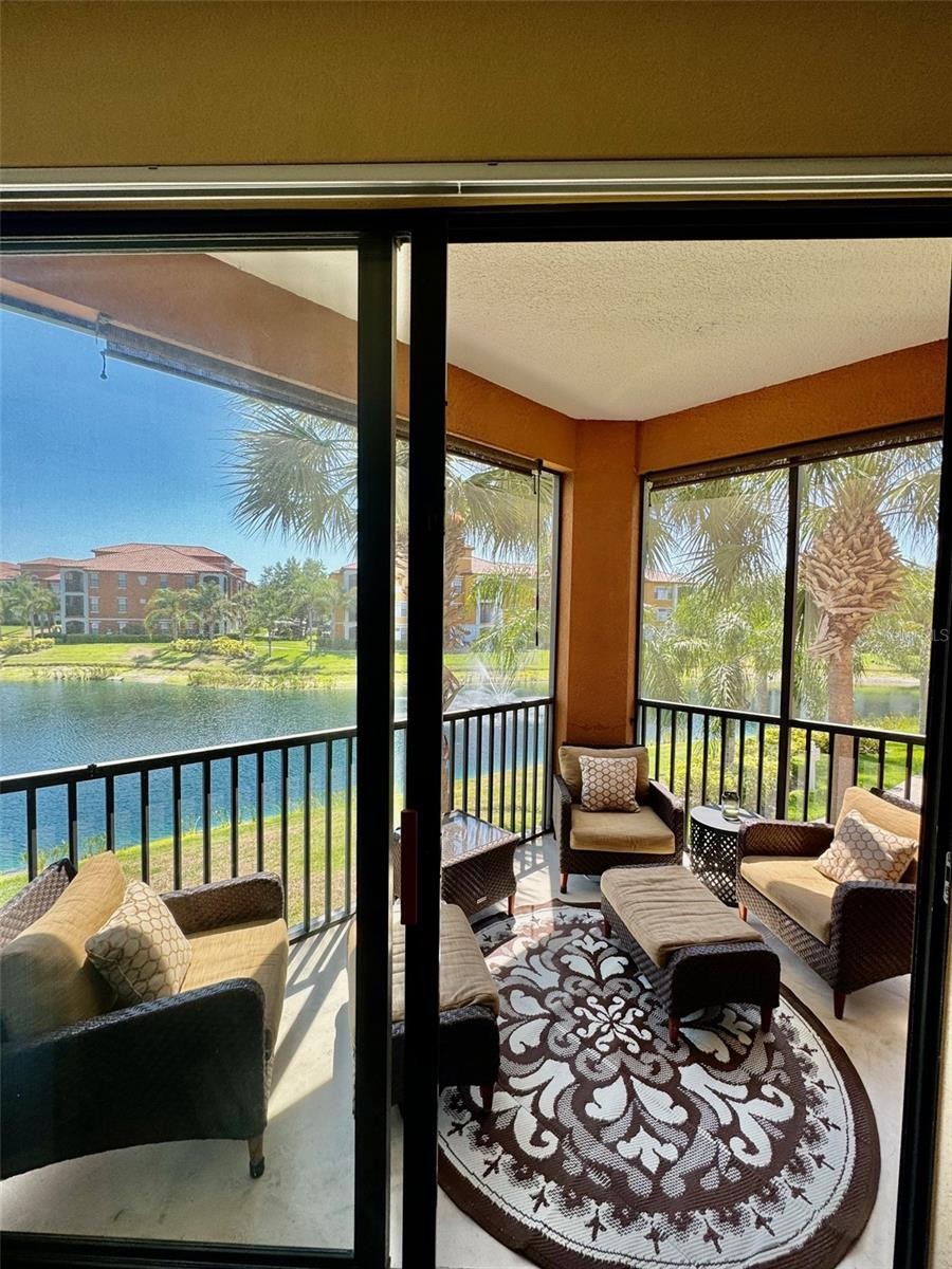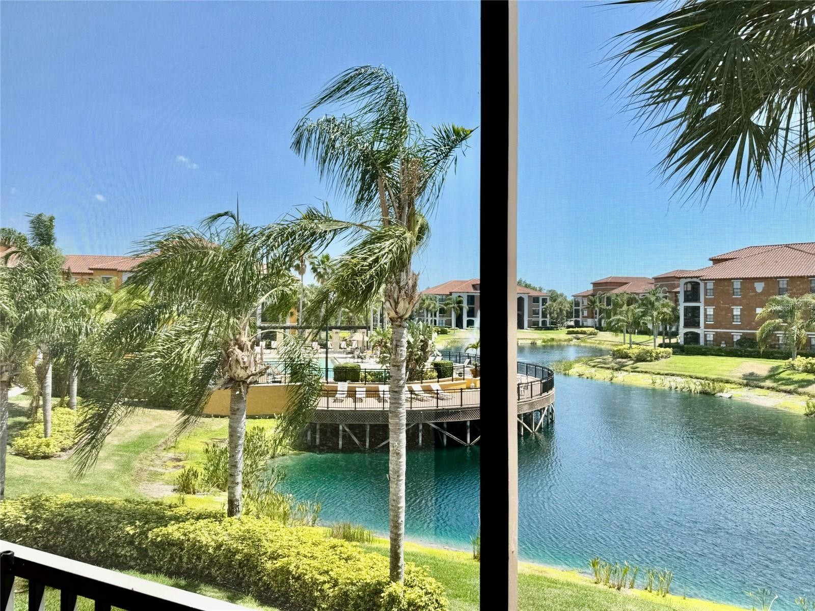 Highly desirable LAKE VIEW unit at the luxurious Serenata Condominiums! Great investment opportunity if you are not ready to retire. This second floor unit is tastefully decorated and being sold turnkey furnished. One of the best views on the entire property, southwestern exposure facing the pond and pool. Spectacular split floor plan featuring main living area with 9 foot ceilings, built-in shelves, oversize hurricane resistant windows/sliders to private screened patio. Each bedroom has a large walk in closet with a great view. This unit includes a breakfast bar, furniture quality wood cabinets, nice appliances, laundry room and a storage closet on the lanai. Serenata is a maintenance free gated community featuring the best resort style pool in the area. The property features meticulously maintained mature landscaping, 24 hour fitness center, lighted tennis court, game room, library, wifi access in the clubhouse/pool area and valet trash service. Publix, CVS, Starbucks, Panera Bread and many other stores are nearby. The new UTC Mall & SRQ Airport are 5 minutes away. Downtown & St. Armands are only 10-15 minutes away!