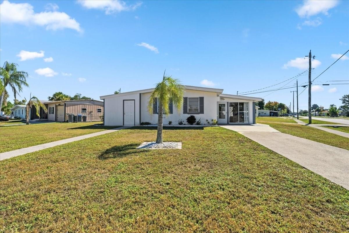 Welcome to this well-loved North Port home on city water and sewer — a true gem that’s been cared for and maintained in great condition! Featuring a 2023 roof and newer A/C, this home is ready to move right in and enjoy. Step inside to find a comfortable 2-bedroom, 2-bath split floor plan that offers both privacy and flow. The spacious great room is filled with natural light from its many windows, creating a bright and welcoming atmosphere. The kitchen features white cabinetry and plenty of light, along with a cozy dinette area perfect for casual meals. Enjoy the large enclosed Florida room, ideal for relaxing or entertaining, and step out to the outdoor patio where you can sunbathe, grill, or unwind in the Florida breeze. A detached garage with electrical provides great flexibility for parking, storage, or even a workshop. Situated on a corner lot with a sidewalk, this home offers great curb appeal and convenience. Located just minutes from Warm Mineral Springs, the brand-new Costco, and Wellen Park, you’ll have shopping, dining, and recreation right at your fingertips. This charming home truly captures the best of North Port living — comfort, location, and value all in one!