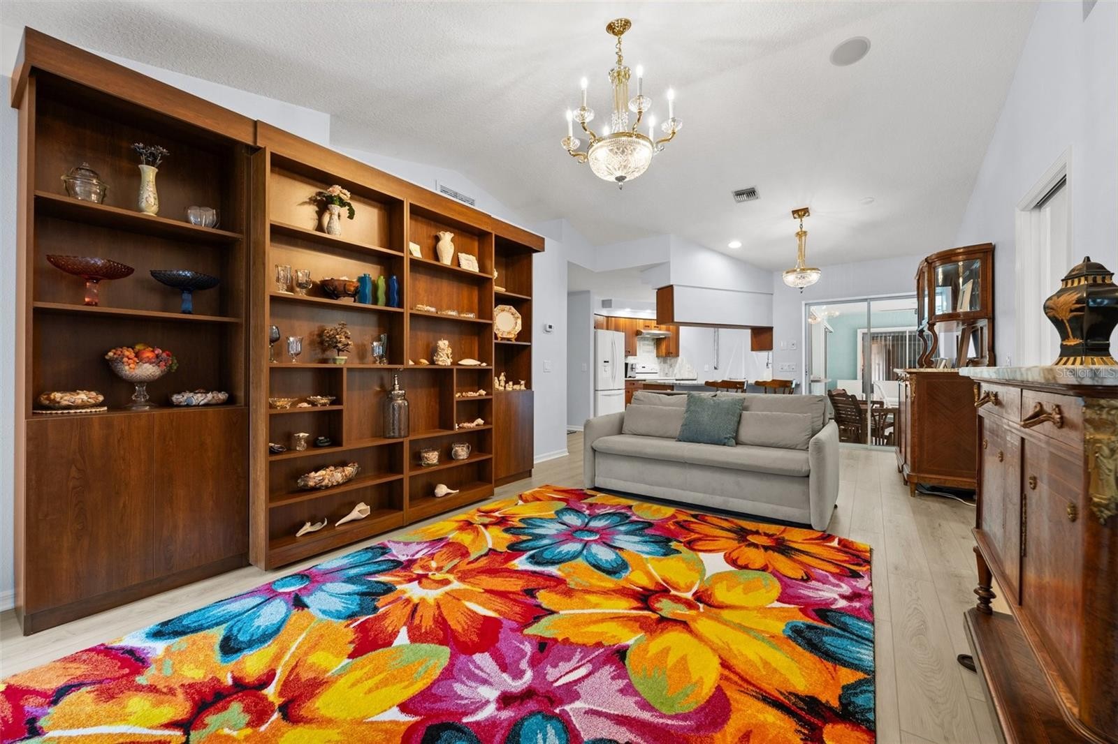 Beautifully updated and move-in ready, this 3-bedroom, 2-bath, 2-car garage pool home with a family room sits on an OVERSIZED LOT in the sought-after Artist Acres community. Ideally located just minutes from Historic Dearborn Street and directly across from Artist Acres Woods & Village, enjoy scenic walking trails, lush gardens, and tranquil ponds right outside your door. CLICK ON THE VIRTUAL TOUR LINK 1 FOR THE VIDEO AND VIRTUAL LINK 2 FOR THE 3D TOUR. Inside, you’ll love the bright, airy open floor plan featuring COREtec luxury vinyl flooring throughout, soaring vaulted and tray ceilings, and thoughtful updates at every turn. The open living and dining area is perfect for entertaining and flows seamlessly through glass sliders to the lanai, creating the ideal indoor-outdoor lifestyle. The kitchen is both stylish and functional, offering white appliances, granite countertops, a tiled backsplash, reverse osmosis system, closet pantry, abundant cabinetry, breakfast bar, and a convenient service window to the lanai—perfect for poolside gatherings. Just off the kitchen, the inviting family room with a gas fireplace adds warmth and versatility, making it an ideal space for relaxing or entertaining. Retreat to the spacious primary suite, complete with lanai access, his-and-hers walk-in closets, and a spa-inspired en-suite bathroom featuring a dual-sink vanity, linen closet, and an all-tile walk-in shower with multiple shower heads and glass enclosure. Guest bedrooms are thoughtfully positioned on a split floor plan, each with walk-in closets and easy access to a shared bath with direct lanai access. Step outside to your private oasis—sip morning coffee or unwind in the evening on the lanai, take a refreshing dip in the sparkling private pool, or lounge on the sun-drenched pool deck. The large, beautifully landscaped backyard offers endless possibilities and includes a shed for lawn and garden storage. 2023 METAL ROOF - OWNED SOLAR - KITCHEN REVERSE OSMOSIS SYSTEM - UPDATED MASTER BATHROOM - UPDATED KITCHEN. Minutes to nearby shopping, dining, LIVE entertainment, fishing, boating, biking, & MORE! Also, it is just a short drive to Award award-winning beaches such as Englewood Beach, Stump Pass Beach, and Manasota Key. Schedule your showing TODAY!