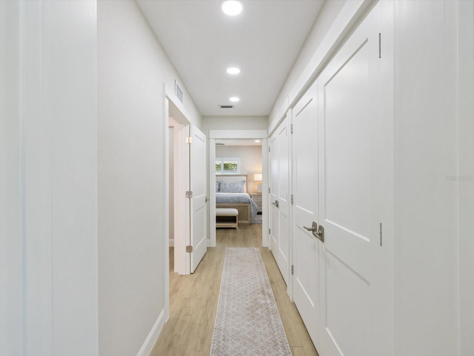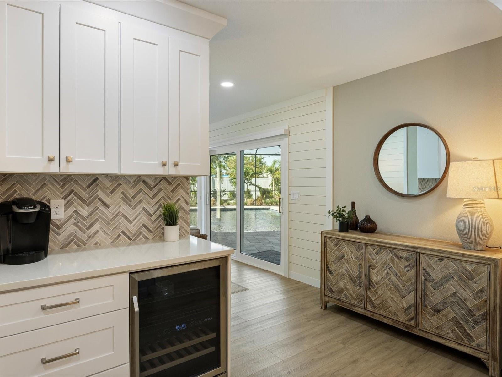 Welcome to your private luxury retreat on Venice Island, where coastal elegance meets exceptional craftsmanship. This stunning residence has been completely remodeled from top to bottom, offering peace of mind, refined finishes, and effortless island living just moments from the beach and downtown Venice. Step inside to discover a show stopping chef’s kitchen designed for both everyday living and entertaining. Custom solid wood cabinetry with dovetail soft close drawers is paired with a spacious walk in pantry and a thoughtfully designed wine and coffee bar. High end KitchenAid stainless steel appliances from 2023 include an induction cooktop, convection oven, microwave, two dishwashers, and a wine refrigerator creating a kitchen as functional as it is beautiful. Every detail of the home reflects quality and sophistication, from luxury finishes and upgraded bathrooms to a cohesive modern design throughout. Major systems have been fully updated, including electrical, air ducts, interior plumbing, drain and water lines, and underground plumbing to the street completed between 2022 and 2023, providing confidence and long term reliability. The primary bedroom is conveniently located on the first floor and features a spacious layout with a spa inspired ensuite bath, offering comfort, privacy, and ease of living. Additional bedrooms provide flexible space for family, guests, or a home office. Convenience is unmatched with two laundry rooms, one on each level, plus an additional laundry area in the fully remodeled studio apartment above the garage. Interior upgrades include moisture resistant luxury vinyl plank flooring, new drywall and paint, LED lighting, solid core interior doors, hurricane rated exterior doors completed in 2023, plantation shutters from 2023, Hunter Douglas VertiGlide shades added in 2024, and custom closet systems by Sunset Closets from 2024. A Ring camera system added in 2023 enhances security and peace of mind. Outside, the property is equally impressive with Hardie Board siding, a 50 year metal roof installed in 2023, PGT hurricane rated Low E windows added in 2023, new gutters from 2023, and a beautifully finished paver driveway completed in 2023. The backyard is a true island oasis featuring a 15 by 28 foot Aquatec saltwater pool with PebbleTec finish, sun shelf, heater, and no see um screened enclosure completed in 2023 perfect for year round enjoyment. Lush landscaping, vinyl fencing, and concrete epoxy finishes in the carport, porch, and garage complete the outdoor spaces. Adding even more value is a fully remodeled studio apartment above the garage ideal for guests, multi generational living, or rental income. A separate gated entrance provides secure storage for a boat or RV, a rare and highly desirable feature on the island. Located in a preferred X flood zone, flood insurance is not required. Just a short walk to Venice’s pristine beaches, charming downtown, dining, and shopping, this exceptional home offers the ultimate combination of luxury, location, and lifestyle.