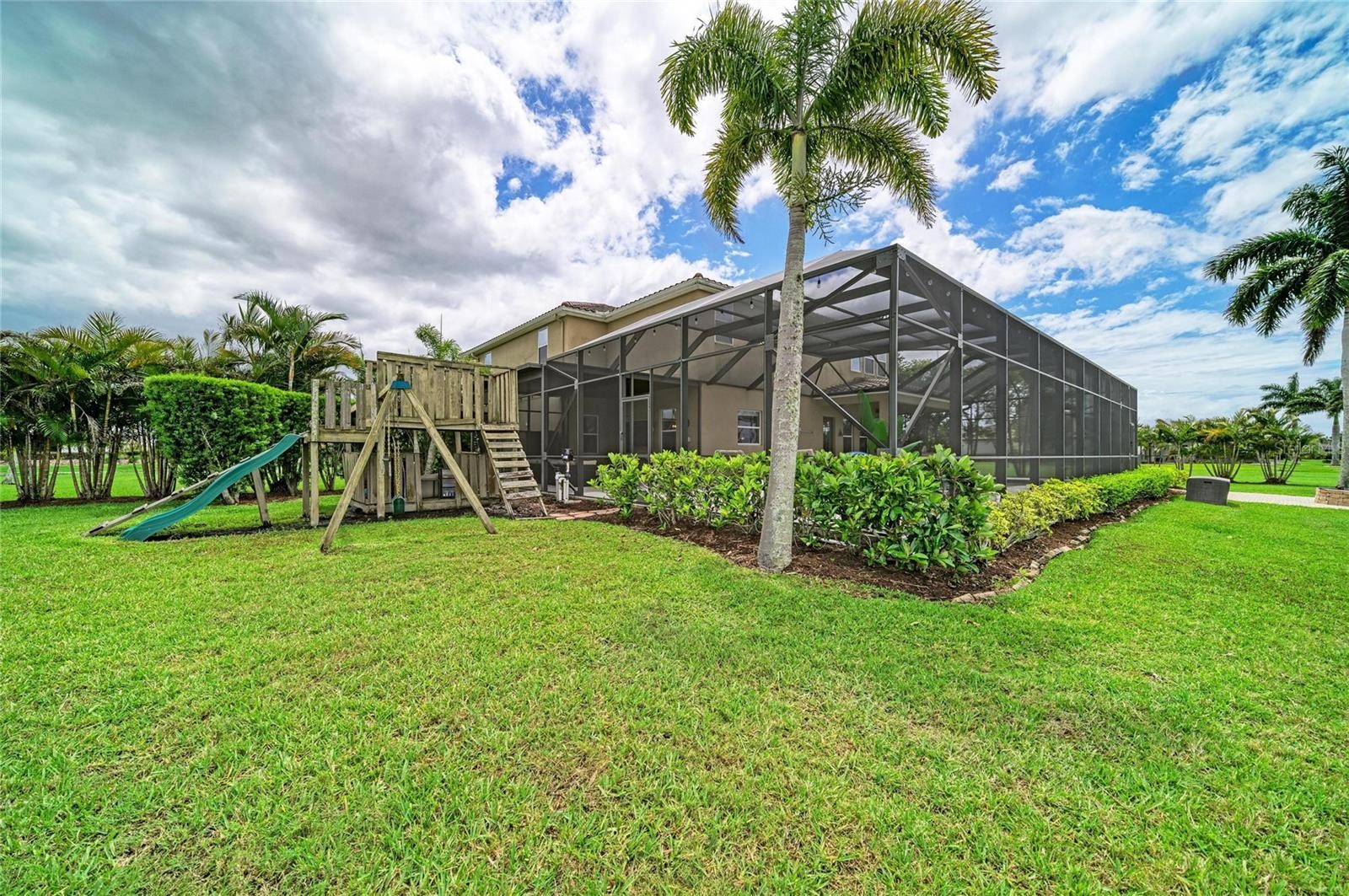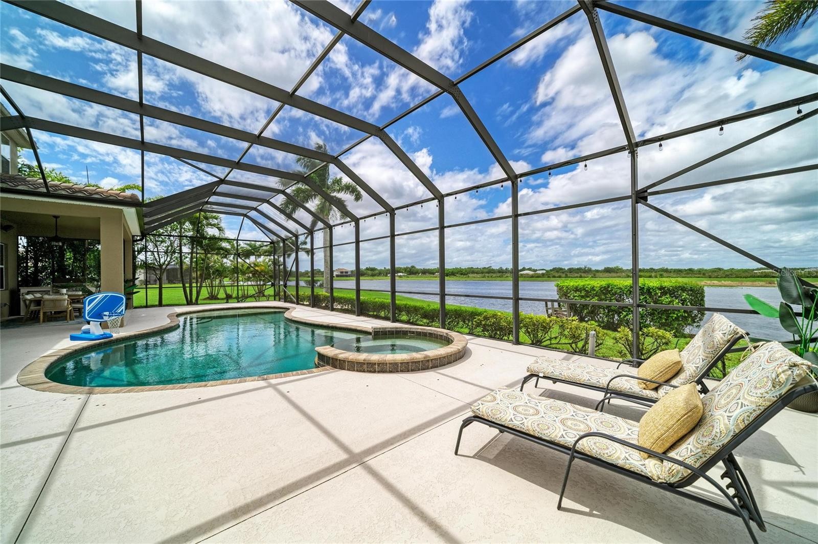 Room to truly live, relax, and entertain on over an acre in the intimate 13 home community of Regent Lake. This impressive residence offers five spacious bedrooms, four with private en-suite baths, plus a half bath on the main floor. The thoughtfully designed layout also includes a large upstairs bonus room, perfect as a media room, game room, or private retreat for guests. At the center of the home is a generous open-concept living space where the kitchen, breakfast nook, and family room flow seamlessly together. 10’ ceilings on the main level, 9’ ceilings upstairs, and eight-foot doors throughout add to the home’s spacious feel. Designed with both everyday living and entertaining in mind, the kitchen features an oversized center island, separate breakfast bar, stainless steel appliances, granite countertops, dual built-in convection oven and microwave and a cooktop with a custom wood vent hood. Rich 42-inch wood cabinetry with crown molding, decorative backsplash, and solid wood dovetail drawers with soft-close construction has timeless style. The primary suite is a private retreat featuring dual walk-in closets, a garden tub, walk-in tiled shower, double vanities, and upgraded fixtures throughout. Step outside to more than 1,500 square feet of screened outdoor living space designed for year-round enjoyment. The expansive lanai features a heated spa, saltwater pool, and a fully equipped outdoor kitchen, making it ideal for hosting guests or unwinding at the end of the day. Western rear exposure provides stunning sunset views, while the front of the home enjoys soft morning light. From the lanai and main living areas, take in peaceful views of the 25-acre spring-fed lake, stocked with bass and ideal for canoeing, kayaking, or electric boating. Privately tucked away yet conveniently located near I-75, Gulf beaches, restaurants, and shopping, this home offers the perfect balance of peaceful country-style living and everyday convenience.