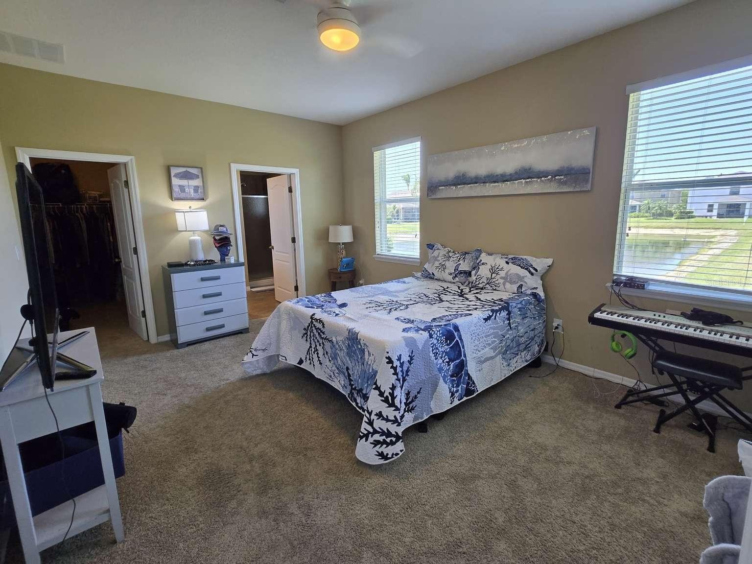3 bedroom, 2 bath single family home in Palmer Oaks community in Sarasota. New roof, new gutters, new A/C and new refrigerator. Located on a quiet and shaded lot with a tree-lined street. Watch the sunrise on the covered front porch, and watch the sunset across the lighted fountain pond view from screened lanai and master bedroom. Never mow the grass again as HOA includes neighborhood maintenance and lawn/sprinkler care. House has 2 main living room areas for privacy, and the Kitchen is equipped with stainless steel appliances and granite countertops and island. Primary bedroom has a walk-in closet with a granite double vanity with a separate tub and shower. Tile floors throughout main areas with carpeted bedrooms. Attached two car garage opens to the separate laundry room. Gated community, sidewalks, private lakes, and fountains throughout the neighborhood. Newly resurfaced heated pool has loungers and bathrooms along with a covered area and palm trees for shade. Walking distance to grocery stores, shops and restaurants. A short bike ride to the Legacy bike trail. A few minutes to I-75 and 15 minutes to Siesta Key.