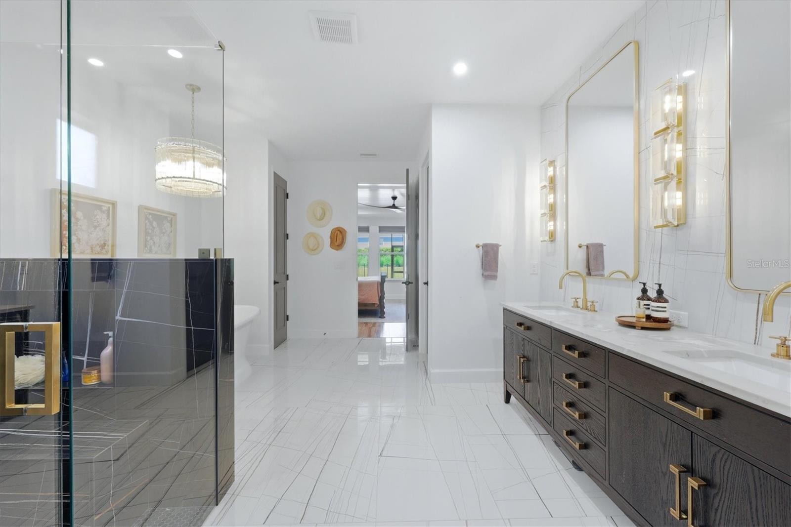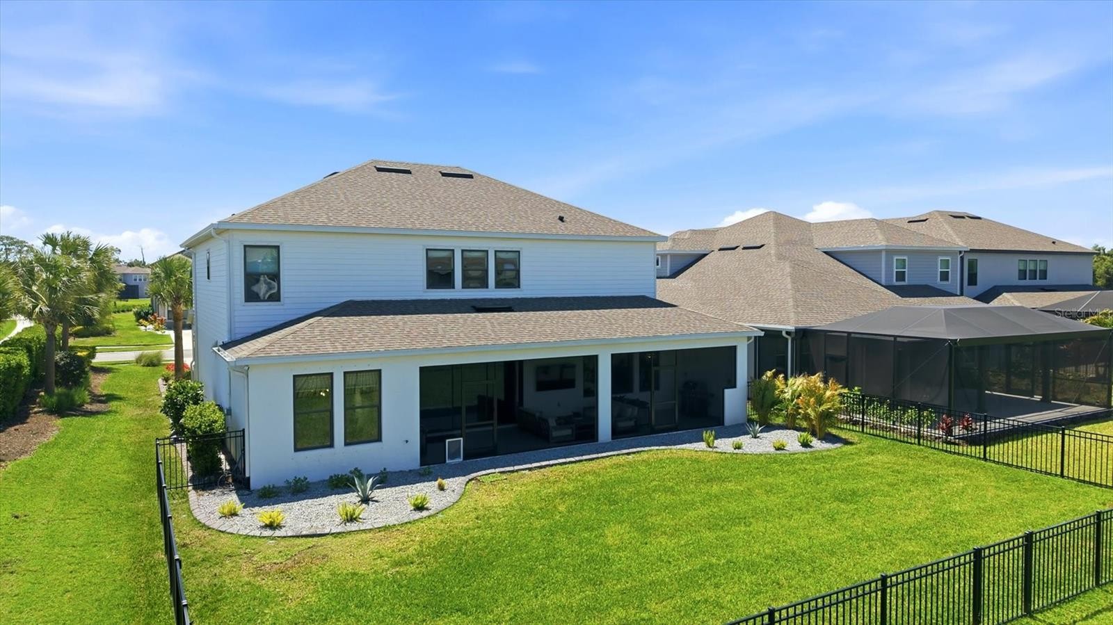 In the beautiful, amenity-rich, gated community of Skye Ranch, this generously proportioned two-story home is a showpiece in refined details. From architectural accent walls and ceilings, to upgraded cabinets, surfaces and appliances, this residence surpasses a model home. With five bedrooms (three are en suites), four and a half baths, two open living areas, a private study/office and a large fenced-in yard, you’re not likely to run out of living space ever. And, with a climate-controlled three-car garage, your vehicles will be quite comfortable too. There are so many upgrades and custom features here, you’ll want to see them for yourself. Reach out for the list of more than three dozen significant highlights and upgrades and we’ll be happy to share. Brands like JennAir, Sub-Zero and Asko exemplify level of quality in the oversized kitchen. The custom range hood created for the home, floor-to-ceiling tile wall, designer lighting, waterfall center island and butler’s pantry make the space a joy to share with family and guests. If you plan to work from home, you’ll appreciate the privacy of the study/office with custom metal and glass doors. When you choose to spend time relaxing outside, the generously sized screened lanai with elegant large-format tile flooring invites a peaceful respite at end of the day. And the fenced-in yard it overlooks provides ample space to play, whether it’s people or pets. The primary suite offers more than just a large bedroom. In fact, the focal point is the bath floor-to-ceiling marble tile, designer lighting and fixtures, huge double vanity, an elegant slipper tub, frameless glass shower with multiple showerheads and even a bidet in the water closet. You’ll love feeling like you’re in a spa right at home. Even the large walk-in closet will be an experience with the custom floor-to-ceiling built-in cabinets and glass doors, a next-level elegance. While more function than luxury, the whole-house reverse osmosis water system makes water for drinking, cooking and bathing far healthier. And the low-maintenance landscaping makes living even easier. Skye Ranch is celebrated for all it has to offer residents and guests such as multiple recreation areas, miles of nature trails for exploring, running and biking, and security-monitored gated entrances. But the biggest amenity of all is The HUB, more than a community center, it offers a full-size gymnasium, complete fitness center, rock-climbing wall, expansive pools, meeting areas, full-service café, with events and programs of all kinds provided regularly. Even with all this, if it’s a beach you seek, the number one beach in the country, Siesta Beach, is a short drive away. Sarasota living is not just a beautiful Gulf Coast lifestyle, it’s arts, dining, recreation, nature and proximity to the best of Florida. Here at home, you’ll experience all this every day. See for yourself and make it yours!