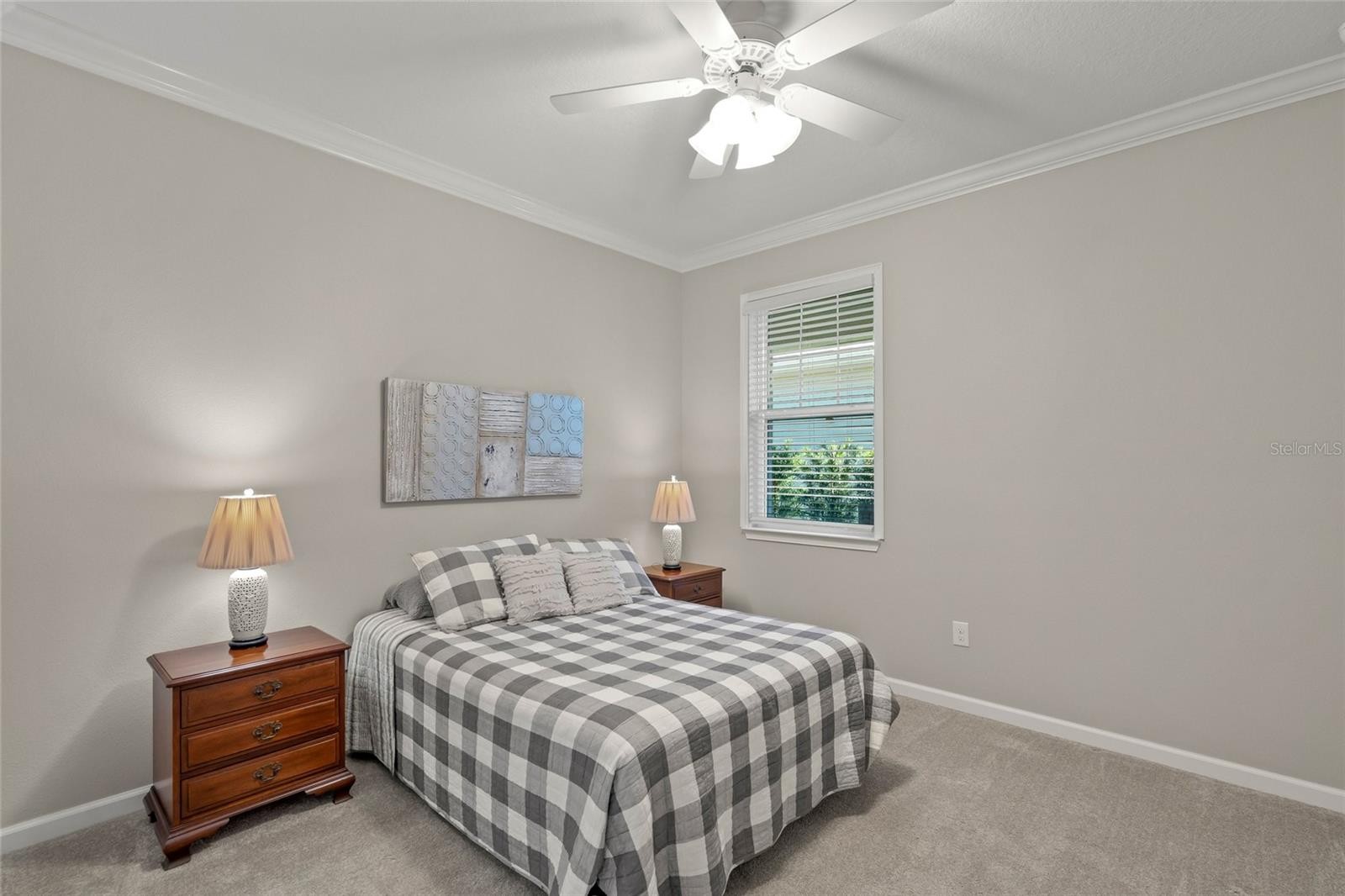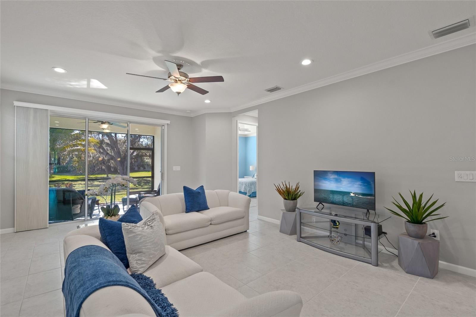 First time on the market! This newer-built, resilient home was constructed in 2019 to the latest hurricane codes and no flood insurance is required. Featuring a highly sought-after 2BR+Office/2BA floor plan with a 2-car garage, this residence is one of only 10 Maritime models built by Mattamy Homes, making it a rare opportunity. A welcoming front porch with retractable screen door provides wonderful airflow and leads to a gorgeous impact-glass front door. Inside, the open-concept layout is ideal for both everyday living and entertaining. The beautifully appointed kitchen showcases wood cabinetry, glass tile backsplash, quartz countertops, stainless steel appliances, and dimmable pendant lighting. The adjacent dining area comfortably accommodates a variety of table sizes and flows seamlessly into the spacious great room—perfect for gatherings. The primary suite offers a tray ceiling and a luxurious en-suite bath featuring an oversized frameless glass shower with bench seating, dual vanities, and a large walk-in closet. The guest suite is privately tucked away with an adjoining bath, providing excellent separation and privacy. The study includes a built-in desk and French doors, making it ideal for a home office or den. Additional highlights include tile flooring throughout the main living areas and study, 2 carpeted bedrooms, a laundry room with extra storage, and a finished garage with epoxy floors, utility sink, and an additional refrigerator. Crown molding and framed windows/sliders add an elegant, refined finish. Enjoy Florida living from the covered front porch or relax on the covered, rear screened lanai with pavers and privacy screen overlooking peaceful water and park-like views. Situated at the end of a cul-de-sac, this home benefits from minimal drive-by traffic. For added peace of mind, there are Accordion Shutters for all windows and sliders making preparing for hurricane a simple task that only takes minutes. The monthly HOA fee covers roof repair and replacement, exterior painting, exterior insurance, grounds maintenance, irrigation, and access to all community amenities and events. Sunrise Preserve at Palmer Ranch is a gated community offering resort-style amenities including a pool, tennis, pickleball and bocce ball courts, grilling areas, fire pit, clubhouse, and fully equipped fitness center. A robust calendar of social events makes it easy to meet neighbors and stay active. Ideally located in the Palmer Ranch area —convenient to shopping, dining, I-75, and world-class beaches.