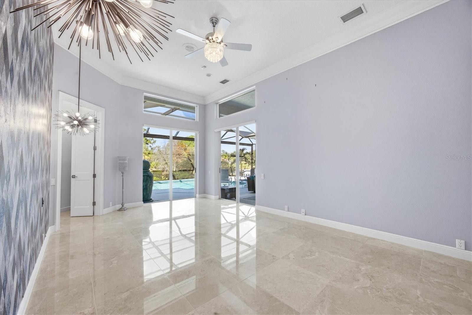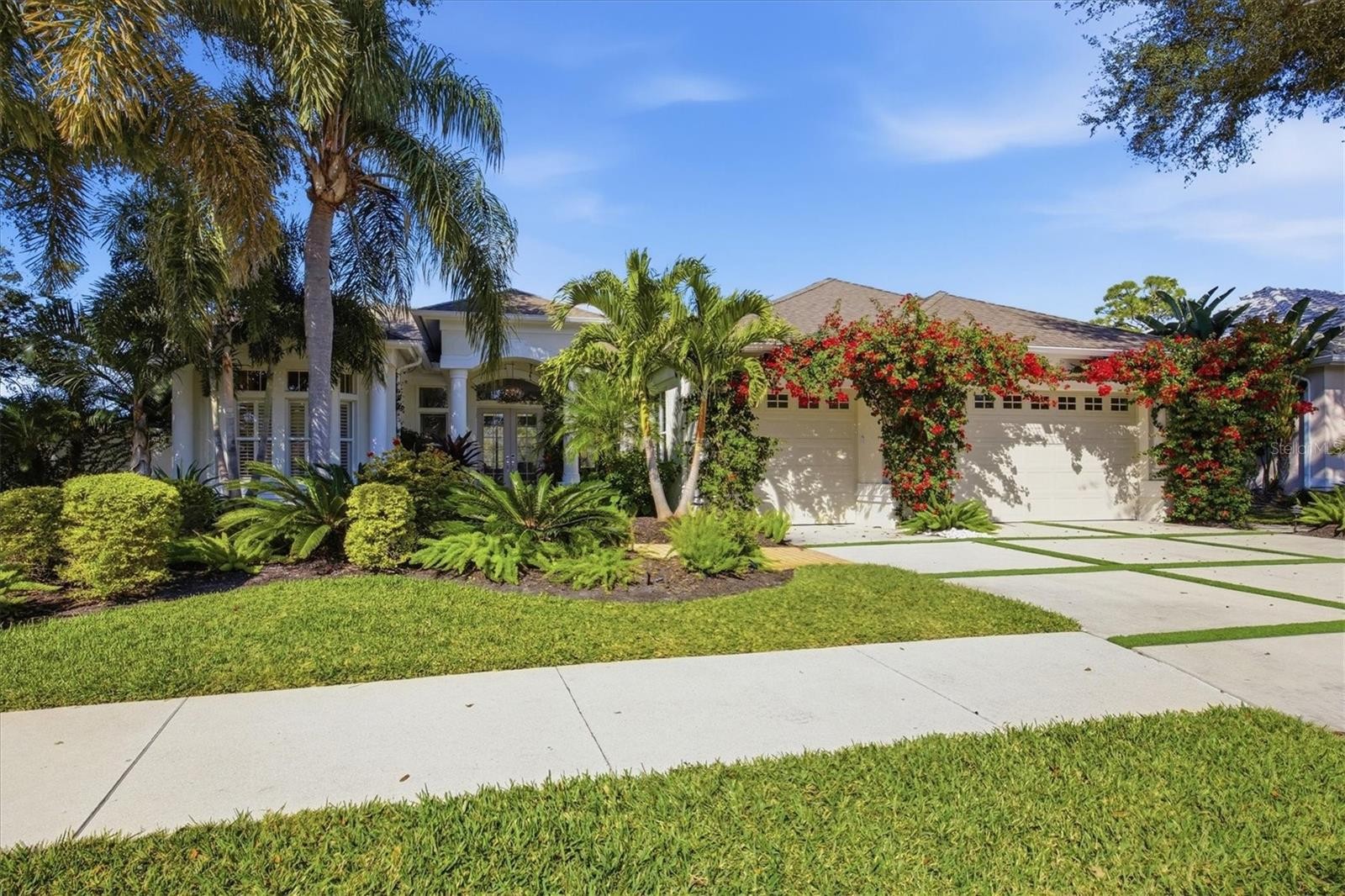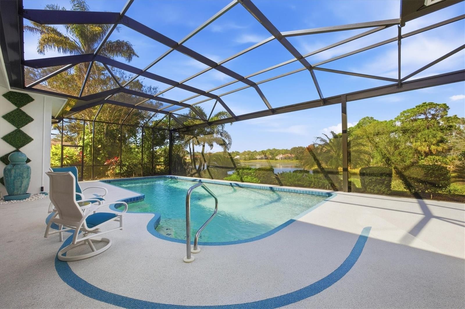 Experience an extraordinary blend of luxury, tranquility, and timeless elegance in this breathtaking Arthur Rutenberg lakefront estate. Offered $75,000 below appraised value and capturing approximately 500 yards of sweeping water views, this residence is even more impressive in person. Completely renovated between 2014–2016 and 2022–2025, this custom masterpiece is tucked within the respected guard-gated community of Deer Creek in Palmer Ranch. Dramatic 12-foot ceilings, stunning marble and glass architectural accents, transom windows, and exquisite marble flooring flood the home with natural light and refined elegance. The chef’s kitchen is a true showpiece, featuring stunning underlit Patagonia quartz from Brazil, custom cabinetry, a Bosch convection oven and microwave, French-door refrigerator, separate ice maker, and a striking partial glass ceiling and architectural feature wall that transform the entire space, all bathed in the light of a spectacular Swarovski chandelier. The expansive great room opens seamlessly to a spectacular 42-foot heated saltwater pool and overlooks the tranquil 9-acre lake, offering unforgettable sunsets and an endless variety of wildlife views. Designed for exceptional indoor-outdoor living, the residence provides over 3,000 square feet of interior living space plus an additional 1,500 square feet of outdoor living. The flexible floorplan includes three spacious bedrooms and a beautifully appointed office or optional fourth bedroom, complete with a cozy fireplace and plantation shutters. The primary suite is a private sanctuary, highlighted by fully marbled floors, soaring 12-foot walls, a dramatic five-foot crystal chandelier, and a glass-wrapped spa bath with walk-in shower, custom freestanding soaking tub, and a custom walk-in closet. Meticulously upgraded throughout, the home features energy-efficient zoned HVAC with warranty, foam insulation, two water heaters, heated bathroom fans, crown molding, upgraded LED lighting, triple sliding doors, a heat pump, reverse osmosis water system, and full storm protection. A three-car garage with 8-foot doors includes a walk-up, fully floored attic offering exceptional storage. The grounds are framed by mature oaks, bougainvillea, sago palms, creeping fig, and vibrant Birds of Paradise, creating a lush and private setting. Deer Creek is well-known for its stately guard-gated entrance, 17 scenic lakes, and serene upscale atmosphere—just 12 minutes to world-famous Siesta Key Beach and moments from shopping, dining, and cultural attractions. This exceptional lakefront residence truly represents the Pinnacle of Gulf Coast luxury living.