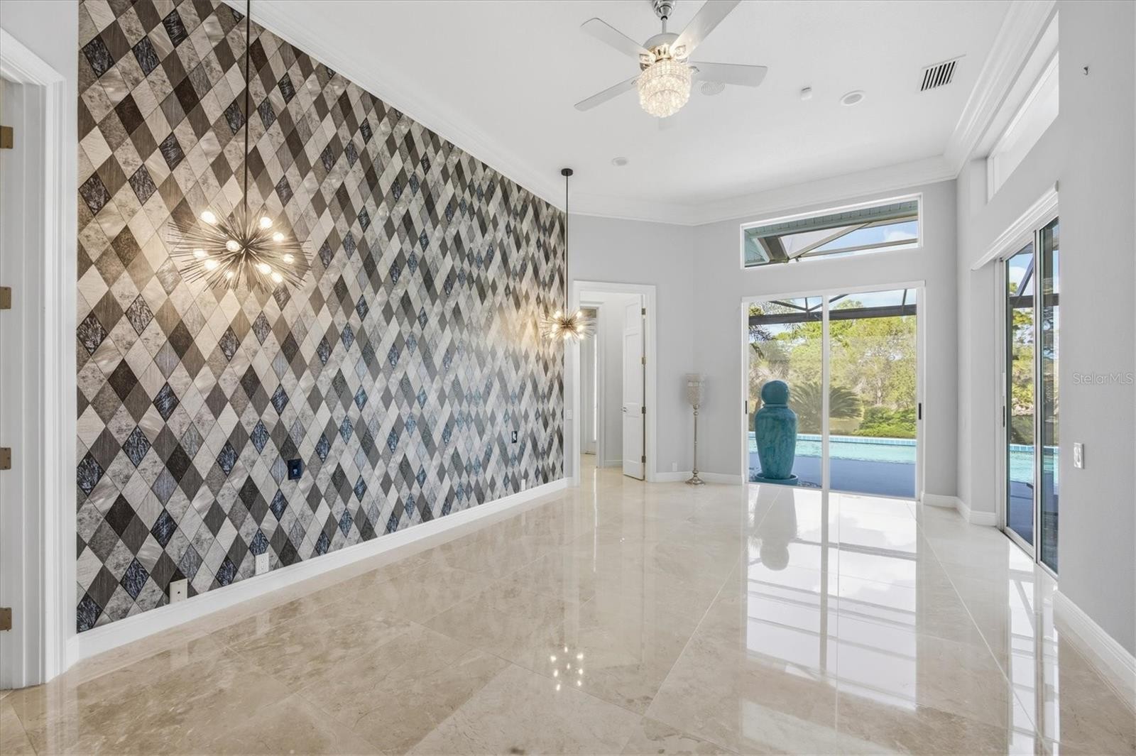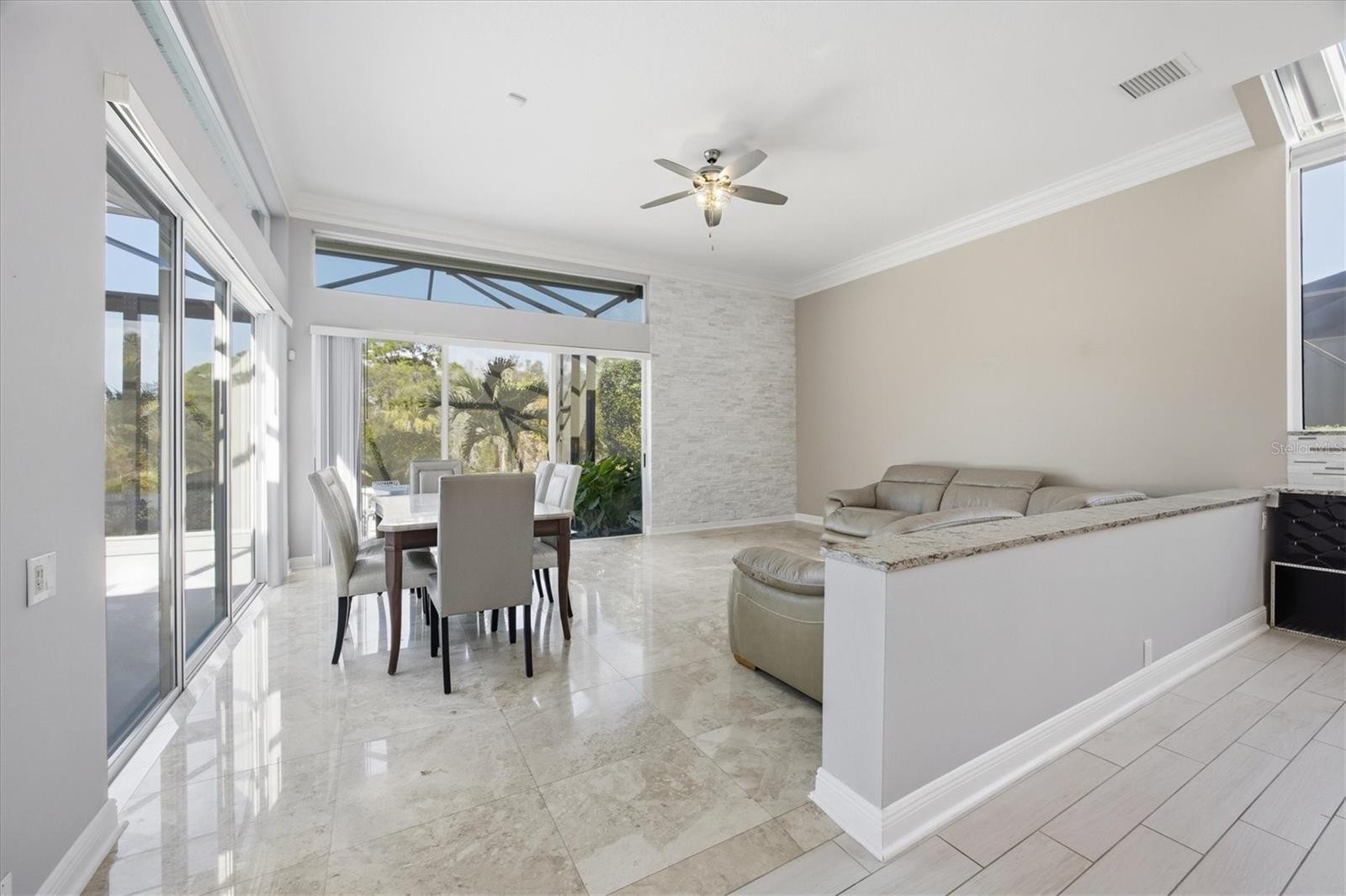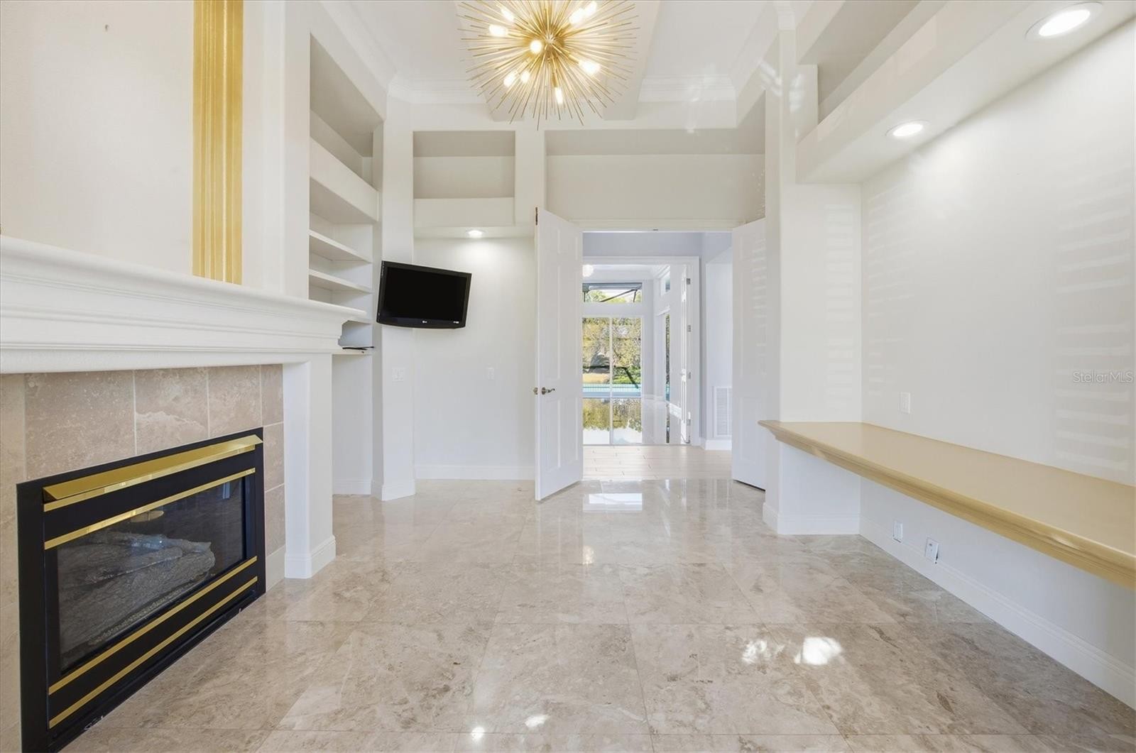 Experience an extraordinary blend of luxury, tranquility, and timeless elegance in this breathtaking Arthur Rutenberg lakefront estate. Offered $75,000 below appraised value and capturing approximately 500 yards of sweeping water views, this residence is even more impressive in person. Completely renovated between 2014–2016 and 2022–2025, this custom masterpiece is tucked within the respected guard-gated community of Deer Creek in Palmer Ranch. Dramatic 12-foot ceilings, stunning marble and glass architectural accents, transom windows, and exquisite marble flooring flood the home with natural light and refined elegance. The chef’s kitchen is a true showpiece, featuring stunning underlit Patagonia quartz from Brazil, custom cabinetry, a Bosch convection oven and microwave, French-door refrigerator, separate ice maker, and a striking partial glass ceiling and architectural feature wall that transform the entire space, all bathed in the light of a spectacular Swarovski chandelier. The expansive great room opens seamlessly to a spectacular 42-foot heated saltwater pool and overlooks the tranquil 9-acre lake, offering unforgettable sunsets and an endless variety of wildlife views. Designed for exceptional indoor-outdoor living, the residence provides over 3,000 square feet of interior living space plus an additional 1,500 square feet of outdoor living. The flexible floorplan includes three spacious bedrooms and a beautifully appointed office or optional fourth bedroom, complete with a cozy fireplace and plantation shutters. The primary suite is a private sanctuary, highlighted by fully marbled floors, soaring 12-foot walls, a dramatic five-foot crystal chandelier, and a glass-wrapped spa bath with walk-in shower, custom freestanding soaking tub, and a custom walk-in closet. Meticulously upgraded throughout, the home features energy-efficient zoned HVAC with warranty, foam insulation, two water heaters, heated bathroom fans, crown molding, upgraded LED lighting, triple sliding doors, a heat pump, reverse osmosis water system, and full storm protection. A three-car garage with 8-foot doors includes a walk-up, fully floored attic offering exceptional storage. The grounds are framed by mature oaks, bougainvillea, sago palms, creeping fig, and vibrant Birds of Paradise, creating a lush and private setting. Deer Creek is well-known for its stately guard-gated entrance, 17 scenic lakes, and serene upscale atmosphere—just 12 minutes to world-famous Siesta Key Beach and moments from shopping, dining, and cultural attractions. This exceptional lakefront residence truly represents the Pinnacle of Gulf Coast luxury living.