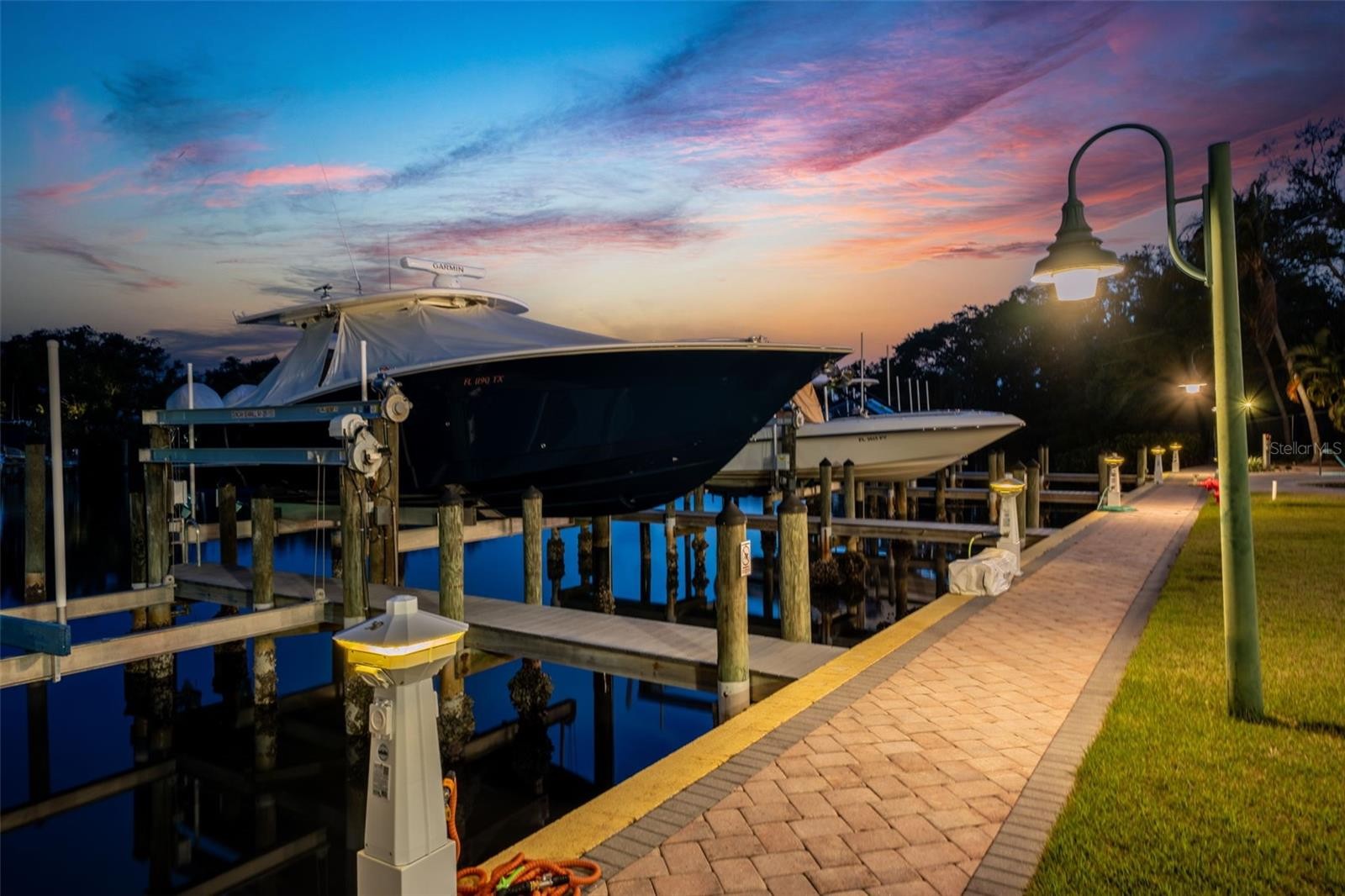 Tucked along the shimmering waterfront in the heart of Sarasota, Hudson Crossing is an exclusive enclave of just twelve residences, offering an exceptional balance of privacy, sophistication, and walkable convenience. Perfectly positioned across from the beautifully revitalized Marie Selby Botanical Gardens, this coveted address places you moments from the bayfront, world-class dining, and a vibrant arts and cultural scene—while still preserving a tranquil, residential ambiance. This refined three-bedroom waterfront residence lives with the scale and comfort of a single-family home, paired with the effortless luxury of condominium living. Thoughtfully curated for both lifestyle and function, the home includes a private two-car garage, ground-level storage, a deeded boat slip, and a rare, exclusive rooftop terrace—an offering seldom found in such a premier downtown setting. Spanning over 2,500 square feet, the interiors are impeccably maintained and designed for immediate enjoyment. High ceilings and elegant tile flooring set the tone for the light-filled, open-concept layout, ideal for both relaxed living and sophisticated entertaining. At the heart of the home, a chef-inspired kitchen showcases custom cabinetry, premium stainless steel appliances including Wolf, Bosch, and Sub-Zero, a gas cooktop, walk-in pantry, and an expansive breakfast bar that seamlessly connects to the main living areas. Walls of impact-rated sliding glass doors frame the living and dining spaces, opening to a waterfront terrace that blurs the line between indoors and out. Here, tranquil water views and gentle coastal breezes create a serene backdrop for everyday living. The primary suite serves as a private sanctuary, complete with terrace access, two spacious walk-in closets with custom built-ins, and a luxurious ensuite bath beautifully appointed bath with quartz finishes and a large soaking tub. Two additional guest suites are thoughtfully positioned for privacy, each offering walk-in closets and flexibility for use as guest accommodations, a home office, or a refined library. In addition to the private 2-car garage with EV hookup, built-in cabinetry, and bike storage, this residence includes a large private storage cabana near the pool and dock, providing ample space for kayaks, fishing gear, and more – a rare feature that outdoor enthusiasts will love. For boating enthusiasts, the deeded dock with 20,000 lbs. boat lift provides direct access to Sarasota Bay, with effortless navigation to downtown landmarks such as the Ringling Bridge. Kayak down to Marina Jack or sail to Big Pass and New Pass in just minutes, with seamless passage to the Gulf and its renowned beaches. Hudson Crossing represents a rare opportunity to experience a low-density, waterfront lifestyle in one of downtown Sarasota’s most desirable locations—just moments from the Bayfront, theaters, galleries, boutiques, the weekly farmers market, and the area’s celebrated white-sand shores.