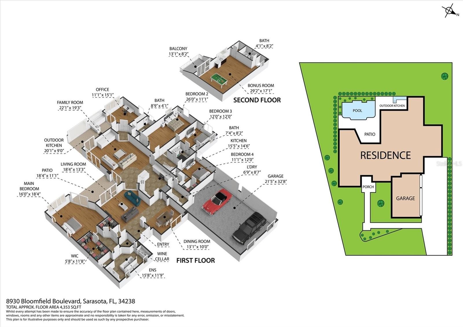 One or more photo(s) has been virtually staged. Welcome to Silver Oak Estates, an exclusive, gated enclave nestled within Palmer Ranch. This custom-built John Cannon residence offers refined luxury, timeless design, and serene natural beauty, all situated on one of the community’s most coveted lakefront lots. Boasting 4 spacious bedrooms, a private office and a versatile bonus/game room, this thoughtfully designed home provides exceptional living space for both everyday comfort and entertaining. As you enter the grand foyer, you’ll be greeted by tall ceilings, intricate crown moldings and custom millwork, a hallmark of the quality craftsmanship that defines John Cannon Homes. The living room features sliding glass doors that seamlessly open to a screened salt water pool and expansive lanai offering unobstructed views of the shimmering lake and lush preserve. A formal dining room sits opposite the well appointed kitchen designed for the culinary enthusiast with granite countertops, stainless steel gas range, refrigerator and an oversized breakfast bar. A custom walk in wine room with built-in bottle storage is ideal for wine collectors. Beyond the kitchen is the family room surrounded by sliding glass doors illuminating the room with natural light. The primary suite offers tranquil lake and preserve views, direct access to the lanai and pool. Work from home in a richly appointed office with hardwood floors, custom built-ins, and captivating lake views. Head upstairs to enjoy the bonus room fully equipped with a wet bar, mini-fridge, pool table, full bathroom and an oversized balcony overlooking the lake and preserve! Located just minutes from the gorgeous beaches on Siesta Key and Casey Key, downtown Venice, top-ranked schools including the highly acclaimed Pine View School, world-class golf, Costco, Potter Park YMCA, The Legacy Trail plus convenient I-75 access, this residence offers an unparalleled lifestyle in one of Sarasota’s finest communities!