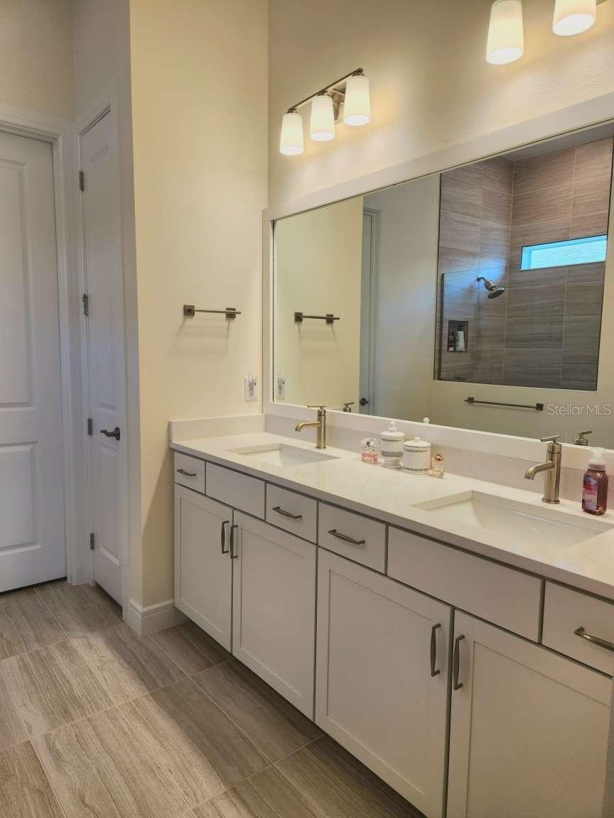 3 bedroom, 2.5 bath POOL home in 55+ Del Webb Bayview community. This is the Prestige model which includes nearly 2100 sf. The open concept plan is light and bright and features a chefs kitchen with gas cook top, walk in pantry and huge island. Quartz counters, Whirlpool stainless appliances, built in oven and microwave and contemporary tile backspalsh complete the look. The primary suite has upgraded walk-in shower, tile to ceiling and built in bench in dry area. Double sinks, water closet and not one, but 2 separate huge walk in master closets. Bedroom #2 looks out to the front, has a large walk in closet and private full en-suite bath. Bedroom #3 can also be used as a flex room, office or den with the 8 ft glass doors and large step in closet. Luxury vinyl plank throughout living areas and tiled wet areas. Some additional upgrades include epoxy garage floors, faux wood blinds, custom ceiling fans, unique contemporary kitchen pendant lighting, 12 foot ceilings and 8 foot doors throughout which make the house feel luxurious and high end. Hurricane impact windows throughout which means no shutters to put up during hurricane season! Backed up to a preserve with pond views on both sides of the back patio. You will see bald eagles, soft shell turtles and Florida sandhill cranes. We truly live among the wildlife here. The back yard is a paradise in itself with the custom designed salt water pool, spa and screened in with no-seeums-grade screening to keep even the tiniest bugs out. Front entry also screened in with no-seeums-grade screening allowing you to keep the AC off during cooler weather and feeling the cross breezes. Del Webb Bayview has planned activities 7 days a week, restaurant, indoor and outdoor bars on site, enormous state of the art gym with aerobics room, ball room, art room, community kitchen that holds cooking shows with guest chefs, community garden, bocce ball, pickleball, shuffle board, water volleyball, tennis, walking trails, corn hole, billiards. You will never be bored unless you want to be.