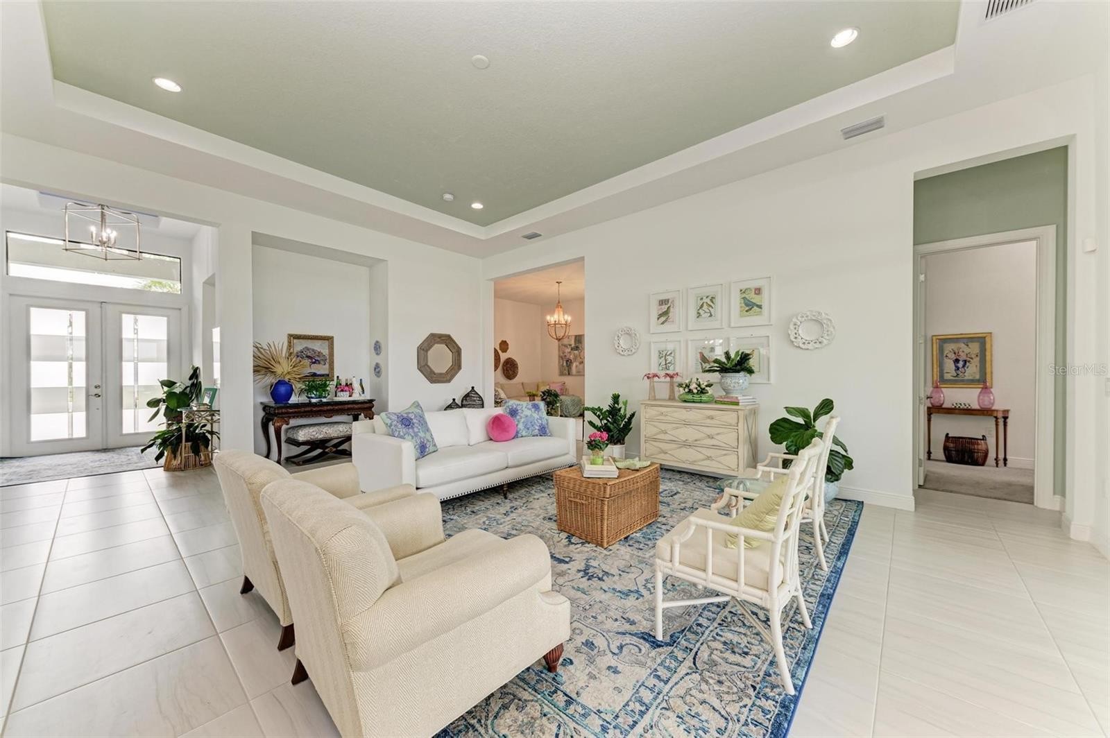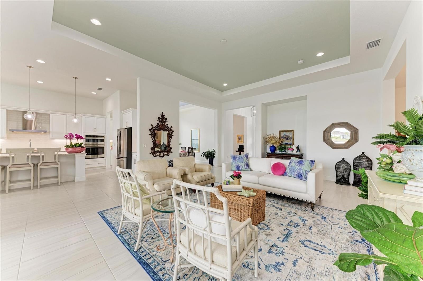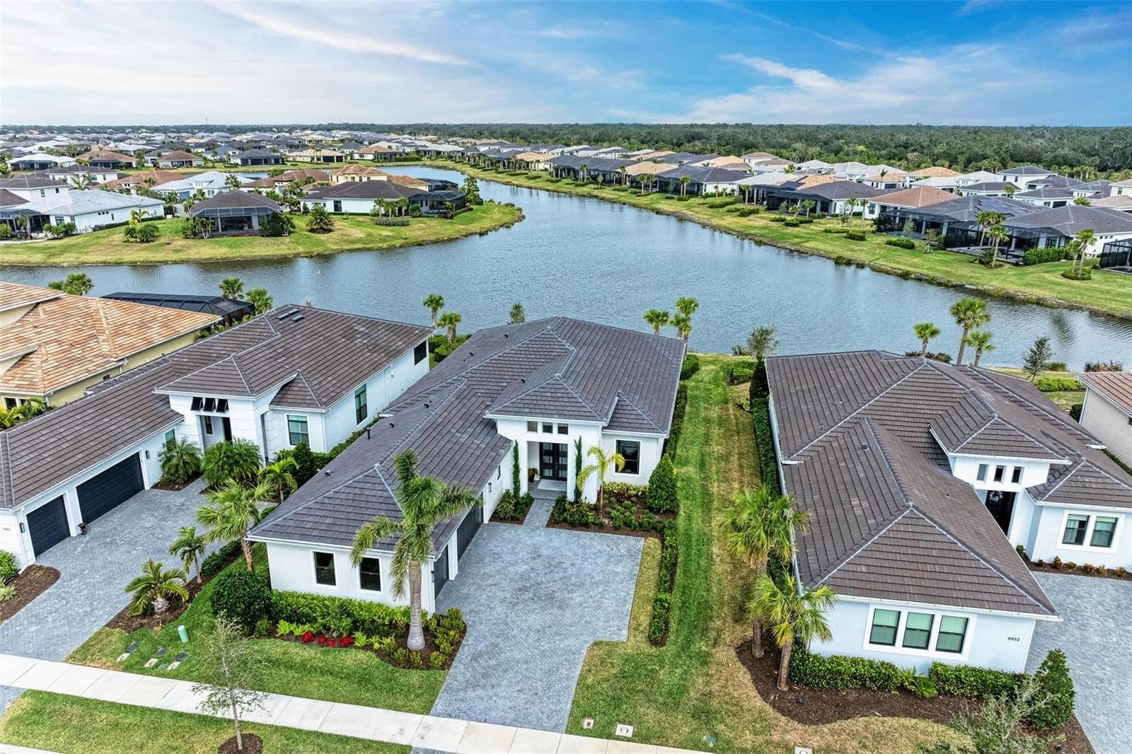 One or more photo(s) has been virtually staged. Opportunity Awaits! Come tour this beautiful must-see home and see why it's one of the best opportunities in Sarasota. This gorgeous, like-new home with ZERO storm damage and located in Flood Zone X will surely exceed your expectations! Nestled on one of the very best homesites in the picturesque, gated community of Artistry, whether you're seeking a peaceful retreat or space to gather with family, this home has it all. The ‘Renoir’ floorplan showcases nearly 2800 sq ft and winding water views. The flexible floorplan is perfect for full-time or part-time residents who desire a spacious home with more space dedicated to living. This immaculate home offers a graceful living area, a spacious bonus area, and a den plus a spacious guest room with an ensuite bathroom for privacy. Converting the large bonus room to a bedroom is possible if preferred. The coastal contemporary design and lush landscaping welcome you home to a quiet homesite with plenty of room to add your own custom pool, if desired. The glass double door entry opens to a sunlit foyer. Sweeping views and spacious gathering areas are highlighted by soaring ceilings with tray accents, oversized windows, and stacked sliding glass doors. The timeless kitchen is perfect for entertaining friends and loved ones, with classic white shaker cabinets and stainless-steel appliances, including a natural gas range. The great room transitions to a deep extended outdoor lanai with plenty of covered space to enjoy the outdoors. Unwind in the owner's retreat with tranquil views. The elegant ensuite bathroom has a frameless glass walk-in shower and sit-down vanity area. A sizable separate laundry room offers a cheerful space for chores, and the three-car garage adds practicality and convenience. Landscaping is included with HOA dues. Artistry is in a prime location and features a heated community pool, fitness center with clubhouse, walking paths, sports courts, and social events. Enjoy an active lifestyle with easy access to beaches, downtown Sarasota, and Lakewood Ranch. No Community Development District (CDD) fees mean lower monthly costs for you. This exceptional home is ready for immediate occupancy. Book your private tour and see if this is the home that's right for you!
