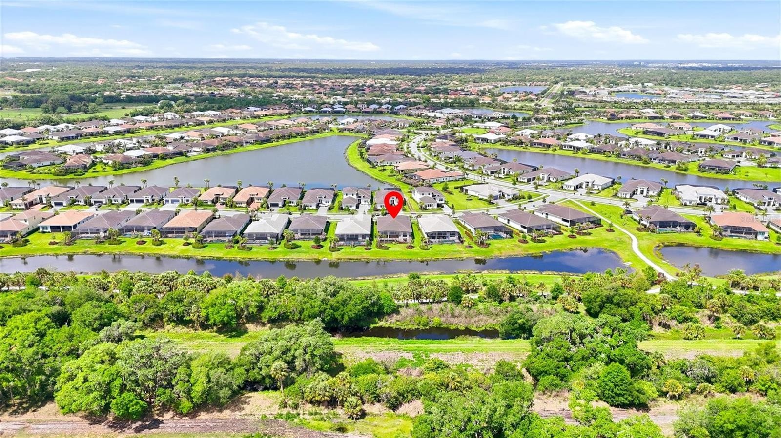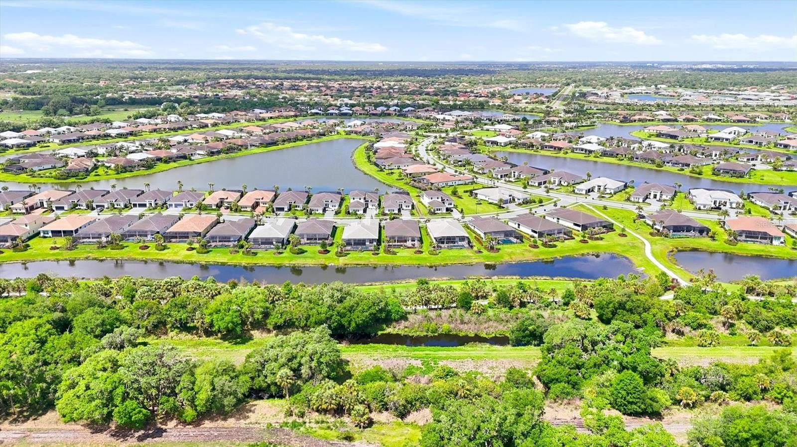 This sought-after Van Gogh model is designed for effortless Florida living, featuring an open-concept layout and two expansive sliding glass doors that seamlessly connect indoor and outdoor spaces. Step outside to your private oasis—a saltwater pool and spa overlooking a tranquil lake, with peaceful views of the community’s nature trail and lake creating a serene, private backdrop rarely found this close to everything Sarasota has to offer. The lanai is prepped for your dream outdoor kitchen, with existing gas, water, and electric hookups already in place, making it easy to customize the space to suit your lifestyle and entertaining needs. Inside, the home is both elegant and functional. The bright white kitchen showcases quartz countertops, custom cabinetry, an under-sink water filtration system, and an open floor plan that flows beautifully into the main living areas. Enhancing comfort and quality throughout the entire home, a water softener has also been installed. The spacious primary suite is enhanced by bay windows that fill the room with natural light, along with a spa-like bathroom featuring an oversized walk-in shower. A versatile den/flex room offers the flexibility today’s buyers need for a home office, playroom, or guest space. The laundry room has been thoughtfully upgraded with custom cabinetry for added convenience and storage. Located within Artistry Sarasota, residents enjoy maintenance-free living and access to resort-style amenities including a community pool, playground, basketball, and pickleball courts. This prime location places you just minutes from shopping, dining, and everyday conveniences, while still offering a peaceful, tucked-away feel. Downtown Sarasota is only about 10 miles away, giving you easy access to world-class restaurants, arts, and beaches. This is the ideal home for luxury buyers seeking a quiet, refined lifestyle without sacrificing proximity to everything Sarasota has to offer.