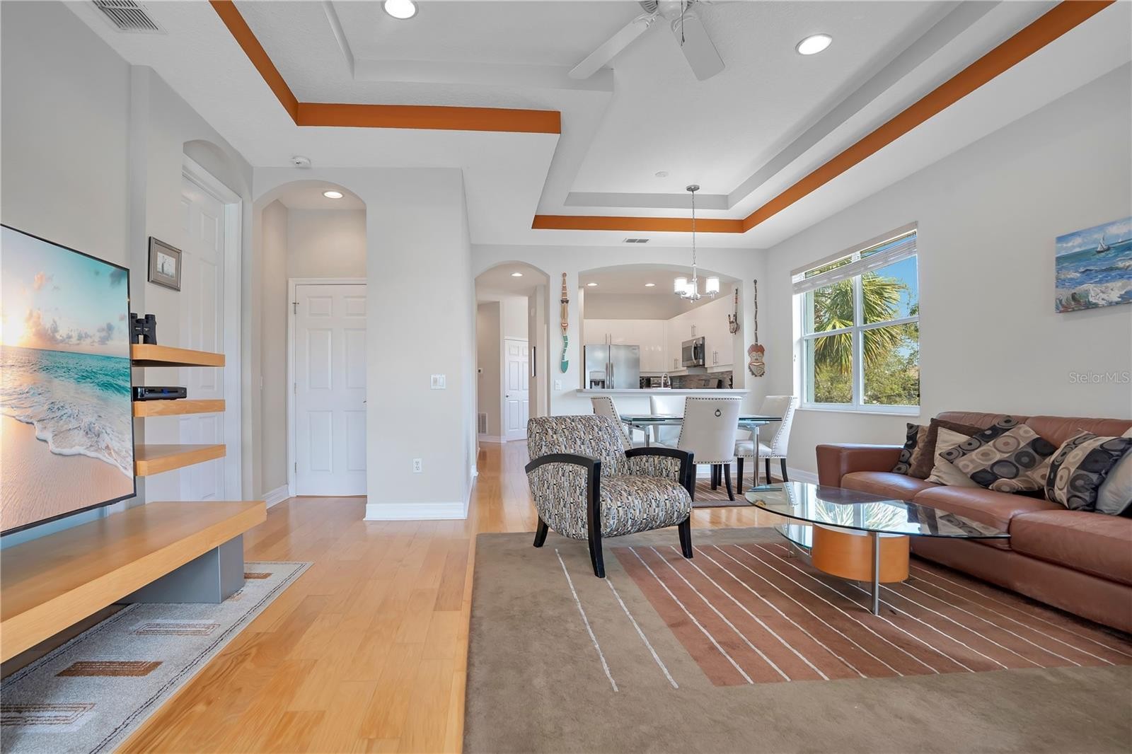 Experience effortless living and unmatched freedom in this beautifully crafted condo, nestled within the unique Waterlefe Golf & River Club community. Enjoy stunning views of both the water and golf course, along with access to a host of amenities designed to enhance your lifestyle. This rarely available Stonington floorplan boasts contemporary Bamboo floors throughout, creating a clean and cohesive foundation for your personal style. The kitchen impresses with solid wood hi-gloss cabinetry and efficient appliances, including a gas range that simplifies meal prep. The smart layout features two spacious secondary bedrooms and a versatile den, perfect for hosting guests or creating a home office workspace. Large bathrooms with double sinks in the primary suite, high ceilings, a tremendous amount of natural light, generous walk-in closets, a private two-car garage, new roof, freshly painted exterior and plenty of parking all contribute to making this condo feel like your perfect next home. Unwind at the end of the day while you take in breathtaking sunsets from the expansive 30-foot lanai / balcony, accessible from both the great room and the primary suite. Waterlefe offers residents a wealth of activities and amenities to enjoy. The centerpiece is its golf course, which has hosted the US Open qualifier eight times and is renowned as the best layout in the area. Whether you prefer membership or pay-to-play options, this course provides exceptional opportunities. Residents and guests can also unwind at the Sunset Grille, the community’s vibrant bar and restaurant hub. The River Club stands out with its more formal bistro and bar, featuring weekly specials, regular entertainment, and monthly events. Adjacent to the River Club, you'll find a poolside tiki bar, walking park, kayak storage and launch, plus a 59-slip marina exclusively available through marina equity memberships for residents. A fitness room with dedicated classrooms further enhances the community’s appeal. Come visit this wonderful unit in person—you’re sure to be impressed.