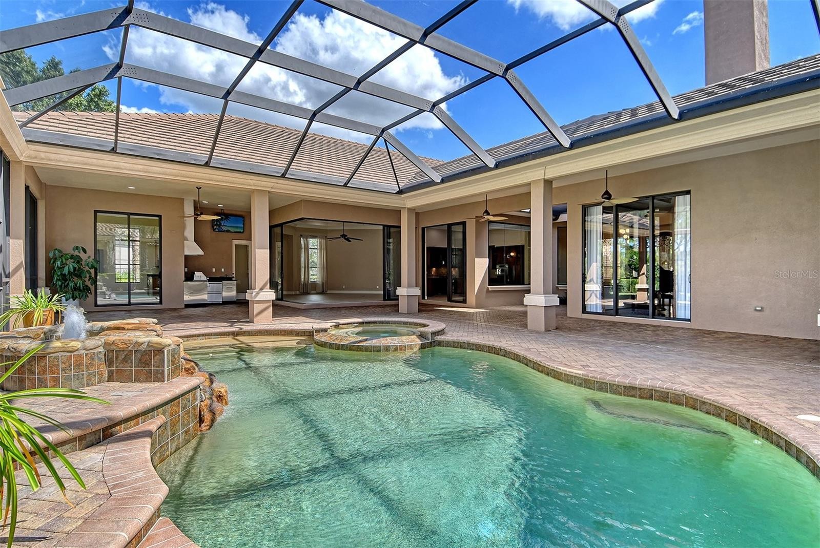 One or more photo(s) has been virtually staged. Welcome to your Private Paradise. Nestled on a beautifully landscaped 30,000sqft plus corner lot, this stunning one-story single-family estate built by Taylor Woodrow Homes offers the perfect blend of elegance, comfort, and resort-style living. Step inside to discover 4 spacious bedrooms, 4 full bathrooms and a beautifully appointed powder room, all thoughtfully designed to provide both luxury and functionality. Retreat to your primary suite oasis, complete with a spa inspired bathroom and direct access to the outdoor living area. The homes' large, oversized windows create the perfect setting for natural light to be present throughout each room. The kitchen is a cook's delight, boasting a full gas cooktop and center island with custom cherry cabinetry. The kitchen flows seamlessly into the spacious family room providing a warm and inviting atmosphere for indoor-outdoor gatherings or just relaxing at home. You can choose to use the rear large bonus room in a variety of ways, simply select the way that works best for your lifestyle! Outside, the highlight of the property awaits- an expansive screened-in lanai overlooking a full-size swimming pool and heated- in ground spa. The lanai overlooks a lush tropical landscape all designed for maximum privacy. Whether hosting weekend barbecues or enjoying a quiet morning coffee, this outdoor haven. Other highlights of the home are the three additional bedrooms which are generously sized, one with and ensuite bathroom and the other two with a Jack and Jill bathroom. The laundry is conveniently located near all three bedrooms and just inside the hallway leading from the home's three car- side load garage. For added comfort and security, the home comes with security system and a new whole house generator, installed in 2025. The Founders Club has 262 homesites which have been perfectly positioned around The Robert Trent, Jr. Course. Social to Full Membership are Currently Available. The Clubhouse includes a restaurant, grill room, and exercise center. The Club's amenities also include tennis courts, a recreation center and playground. A year-round activities calendar is always available. The Founders Club is close to University Town Center, a short ride to Lakewood Ranch and yet close to all the Greater Sarasota's vast cultural destinations which make Sarasota and Sarasota's Beaches World Class.