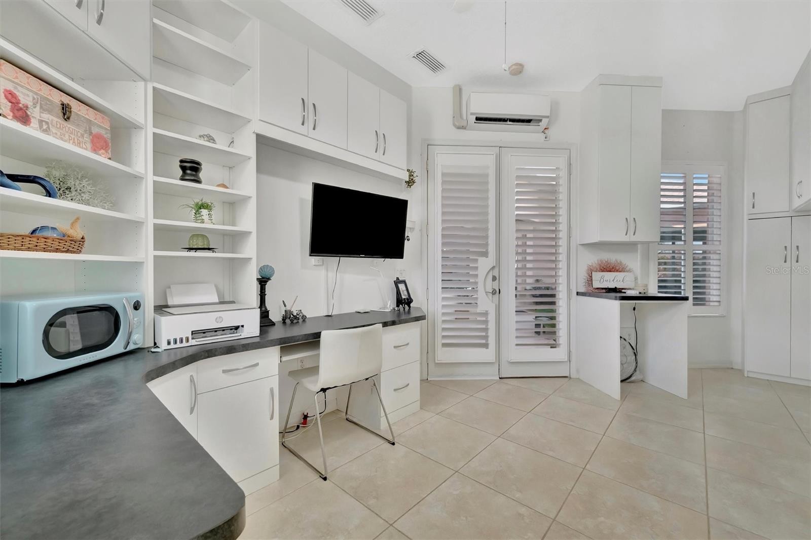 Discover this distinctive 3-bedroom, 2-bath courtyard villa with a 2-car garage in the vibrant community of Parrish. Designed with the sought-after Brighton floorplan, the home’s open-concept layout creates seamless sightlines from the bright entry courtyard throughout the main living areas, enhancing both flow and functionality. Natural light fills the interior through an abundance of newer impact-rated windows and sliding glass doors, beautifully framing the private courtyard and outdoor living space. This serene setting offers endless potential—whether you envision a pool, spa, waterfall feature, or a custom-designed retreat tailored to your lifestyle. Recent updates provide added peace of mind, including a new A/C system (2024) and a roof installed in 2020. The inviting kitchen features a charming aquarium window, coffee bar, select newer appliances, and a dining area that opens to the spacious great room, where tranquil preserve and pond views create a picturesque backdrop. The primary suite is privately positioned just off the great room and offers dual walk-in closets and a well-appointed en-suite bath. A unique highlight of this floorplan is the separate third bedroom/den/office located off the enclosed courtyard. Complete with a double Murphy bed, built-in desk, and ample closet space, it provides exceptional flexibility for guests, work-from-home needs, or multigenerational living. Low low HOA fees covering yard maintenance, internet, cable, community swimming pool and friendly neighbors! Enjoy the convenience of being just a short walk or golf cart ride from Creekside Commons, one of Parrish’s newest shopping, dining, fitness, and everyday essentials developments. Parrish is one of Florida’s fastest growing communities with quick access to 3 airports, Ellenton Outlet Mall, University Town Center, Lakewood Ranch, St. Pete/Tampa, world-class beaches and plenty of SUNSHINE! Call today for your private showing.