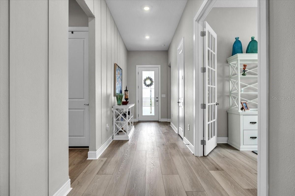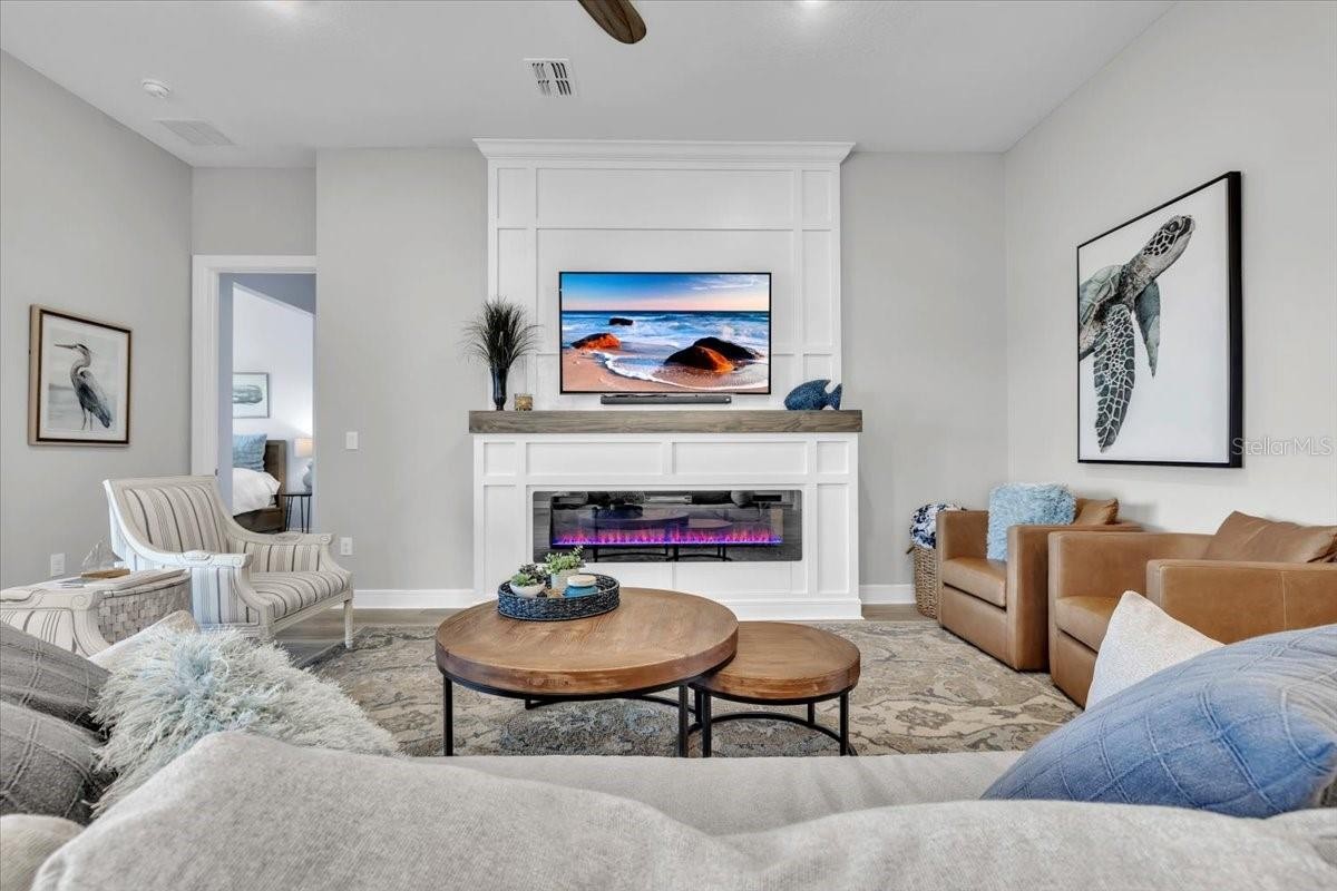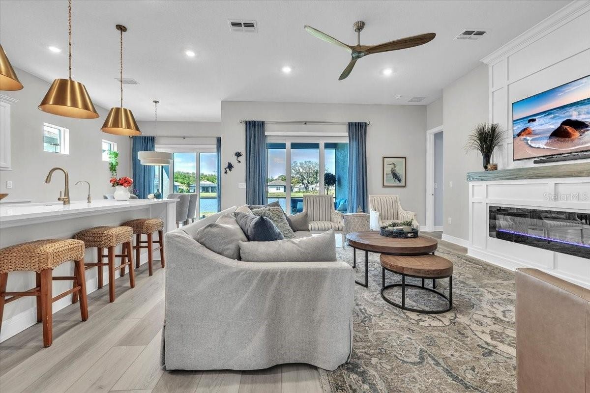 Stunning Prestige Model in Premier 55+ Del Webb Community with Serene Water Views Welcome to this beautifully upgraded Prestige model home located in a highly sought-after Del Webb 55+ community, where resort-style living meets everyday comfort. This spacious 3-bedroom, 2.5-bath residence offers a thoughtfully designed layout filled with natural light, elegant finishes, and modern upgrades throughout. Step inside to discover a bright and airy open-concept floor plan enhanced by luxury vinyl plank flooring throughout, fresh interior paint, volume ceilings, 8-foot doors, and upgraded baseboards. Custom feature walls with exquisite woodwork add warmth and character, creating a truly designer-inspired feel. The chef’s kitchen is both stylish and functional, featuring built-in wall oven and microwave, cooktop stove, stunning stone countertops, and upgraded soft-close cabinetry with convenient pull-outs. This space flows seamlessly into the expansive great room, where a custom electric fireplace with a beautiful mantle serves as the perfect focal point for relaxing or entertaining. The tranquil owner’s suite is a private retreat, offering a spacious en-suite bath and an oversized walk-in closet complete with a unique laundry pass through door that leads directly to the laundry room—a thoughtful and convenient touch. Additional highlights include a generously sized interior storage closet with built-in shelving, providing ample organization space. Step outside to your fully screened lanai and take in the peaceful water views, where you can unwind, enjoy nature, and watch local wildlife in a serene setting. Garage has epoxy flooring, Water softener and reverse osmosis in the kitchen. Located in a vibrant and welcoming community, residents enjoy an array of resort-style amenities, including a heated pool, pickleball and tennis courts, a state-of-the-art fitness center, clubhouse, on-site restaurant, and a full calendar of social events and activities. This home offers the perfect blend of luxury, comfort, and active adult living—your Florida lifestyle awaits! Quick and easy access to I-75, 30 minutes to St. Pete, 30 min to sarasota, Close to shopping, outlets, restaurants and beaches.