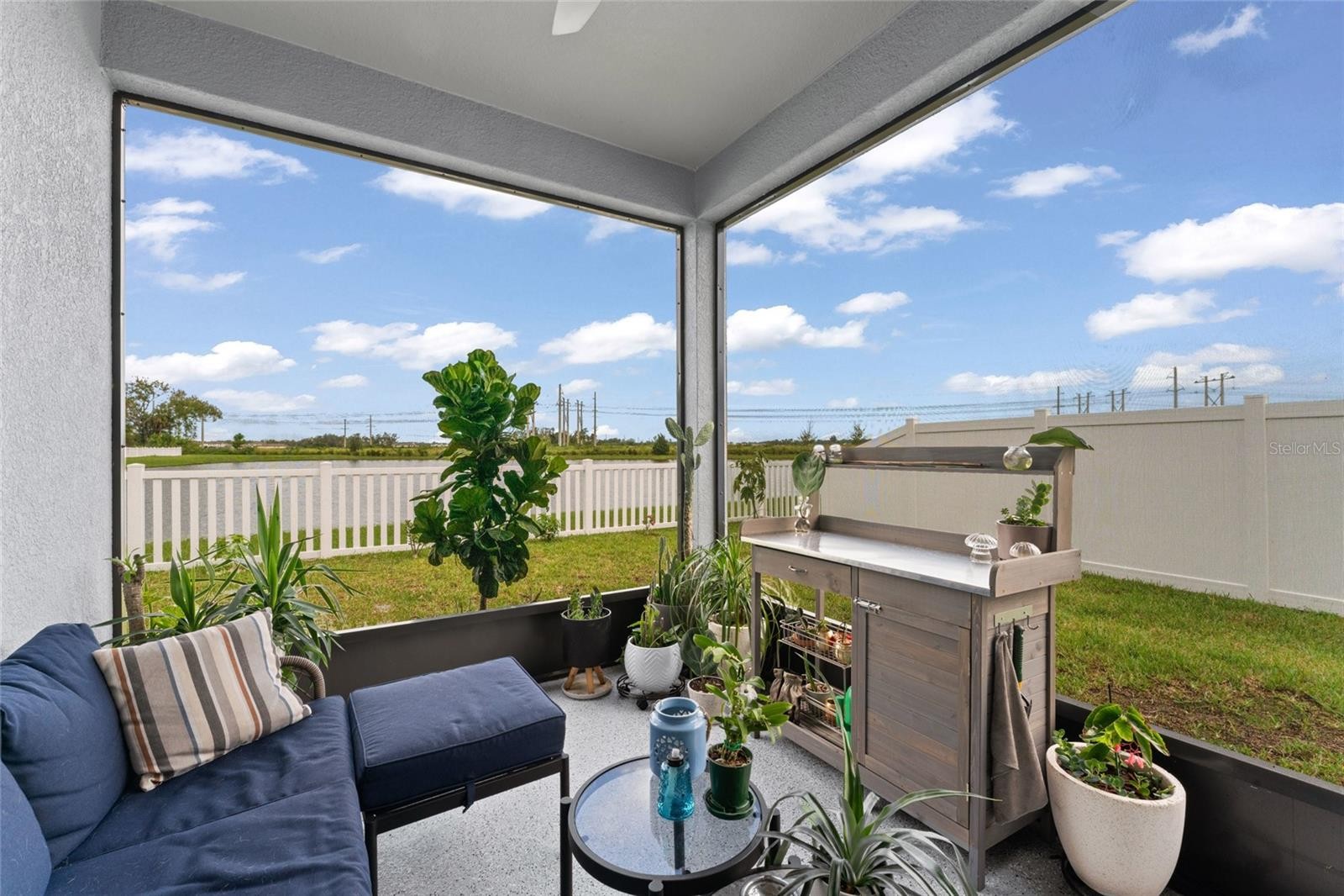 Seller is MOTIVATED!! Sawgrass Lakes features this beautiful 3-bedroom, 2-bathroom home with a stunning pond view. Luxury vinyl plank flooring runs throughout the entire residence. The kitchen boasts 42-inch white cabinets, granite countertops, and stainless steel appliances, and it overlooks the dining and living areas. The split-bedroom layout provides privacy for both guests and family. The primary suite includes a walk-in closet and a spacious en-suite bathroom. The secondary bedrooms also have walk-in closets. Relax and enjoy the pond view from the screened lanai with epoxy flooring. Additional upgrades include an epoxy garage floor, a vinyl-fenced yard, upgraded appliances, including a washer and dryer, knobs & handles on cabinets and drawers, custom lighting fixtures, upgraded paint, and enhanced landscaping throughout the exterior, pavered driveway and sidewalk.