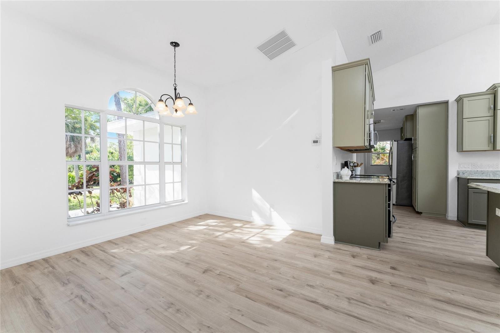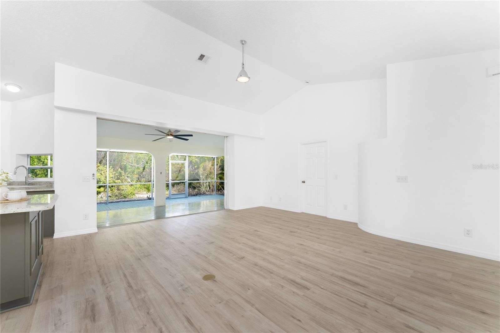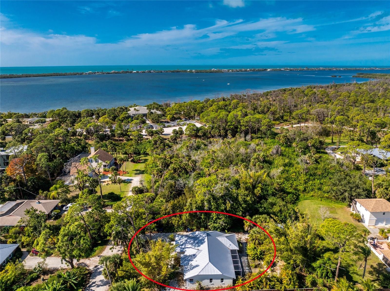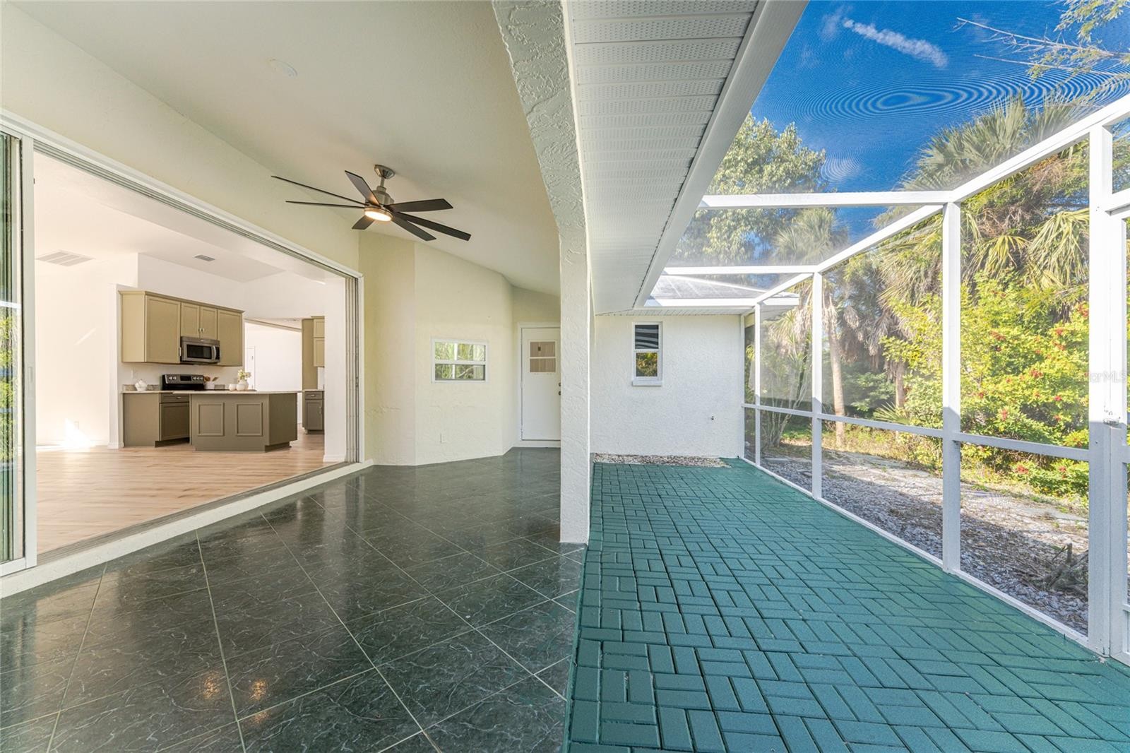 Remodeled and move-in ready, this home is right around the corner from Lemon Bay Park, offering a peaceful setting surrounded by natural surroundings. Nestled among tall pines and oak trees, this three-bedroom plus bonus room, two-bathroom home is ready for immediate enjoyment and is topped with a durable metal roof for long-term peace of mind. Inside, the space is light, bright, and spacious, featuring consistent LVP flooring throughout for a clean look and easy maintenance. Large windows, vaulted ceilings, and double front doors with glass inserts work together to fill the home with abundant natural light. The great room, kitchen, and dining area are all open, creating an ideal layout for everyday living and entertaining. The kitchen features custom cabinetry with soft-close hinges, granite countertops, and a small island that provides additional workspace. The garage has been converted into a bonus room, offering flexible space that can be used as a home office, playroom, hobby room, or additional living area. The ensuite primary bedroom is spacious and includes sliding glass doors that open to the lanai, dual walk-in closets, and a spa-like primary bathroom with a soaking tub, fully tiled walk-in shower with multiple shower heads, and a single-sink vanity with an extended makeup area. Both guest bedrooms feature reach-in closets, and the guest bathroom offers a fully tiled walk-in shower with frameless glass doors and a vanity with a uniquely designed vessel sink. Outside, the partially covered and screened lanai with both tile and paver patio areas provides the perfect spot to unwind in the evening while enjoying dinner and drinks in a private, natural setting. The location offers close access to Lemon Bay Park, a quiet retreat with walking trails through mangroves, pine flatwoods, and native coastal habitats, along with scenic bay views, kayaking opportunities, and abundant wildlife. Just five miles from Englewood Beach, local tiki bars, and waterfront restaurants, with easy access to shopping and medical facilities, and only two miles from Historic Dearborn Street, the home at 938 Morrison Avenue places you in the heart of the Englewood while still offering a peaceful place to come home to.