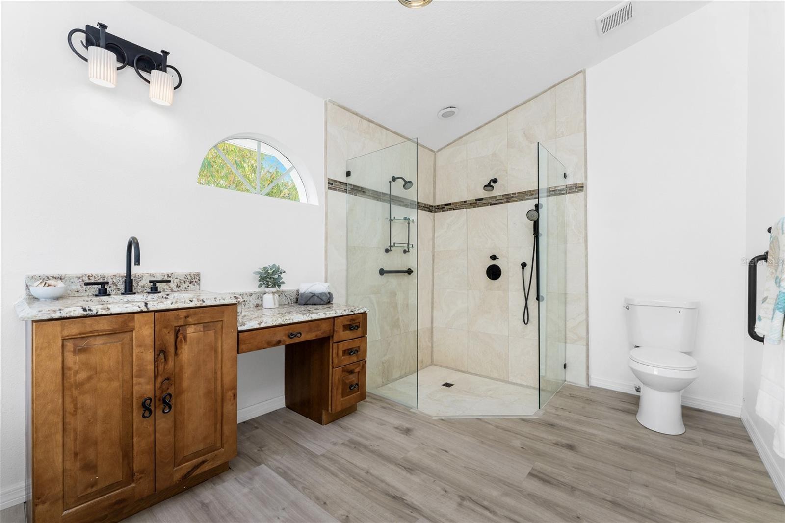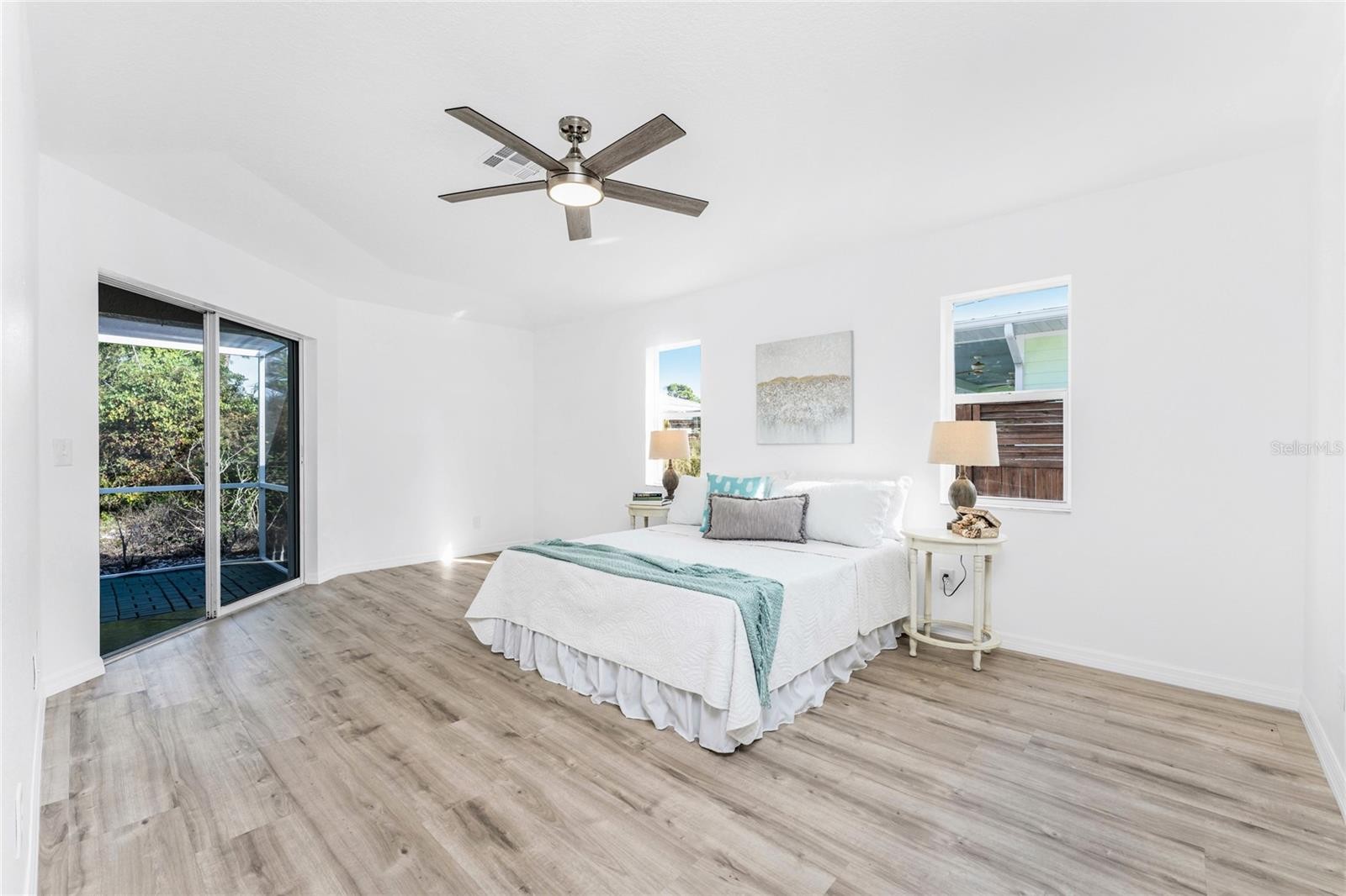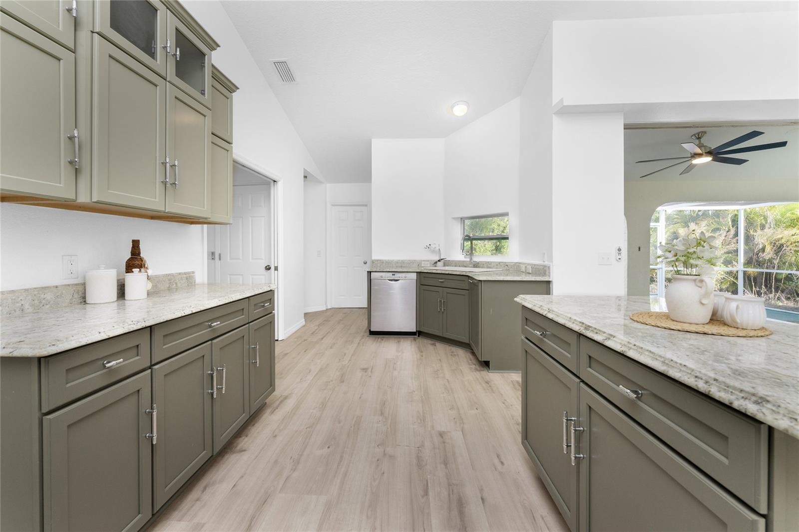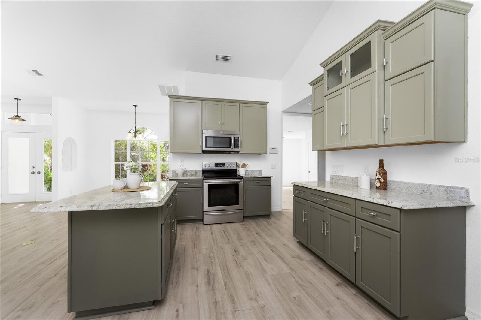 Remodeled and move-in ready, this home is right around the corner from Lemon Bay Park, offering a peaceful setting surrounded by natural surroundings. Nestled among tall pines and oak trees, this three-bedroom plus bonus room, two-bathroom home is ready for immediate enjoyment and is topped with a durable metal roof for long-term peace of mind. Inside, the space is light, bright, and spacious, featuring consistent LVP flooring throughout for a clean look and easy maintenance. Large windows, vaulted ceilings, and double front doors with glass inserts work together to fill the home with abundant natural light. The great room, kitchen, and dining area are all open, creating an ideal layout for everyday living and entertaining. The kitchen features custom cabinetry with soft-close hinges, granite countertops, and a small island that provides additional workspace. The garage has been converted into a bonus room, offering flexible space that can be used as a home office, playroom, hobby room, or additional living area. The ensuite primary bedroom is spacious and includes sliding glass doors that open to the lanai, dual walk-in closets, and a spa-like primary bathroom with a soaking tub, fully tiled walk-in shower with multiple shower heads, and a single-sink vanity with an extended makeup area. Both guest bedrooms feature reach-in closets, and the guest bathroom offers a fully tiled walk-in shower with frameless glass doors and a vanity with a uniquely designed vessel sink. Outside, the partially covered and screened lanai with both tile and paver patio areas provides the perfect spot to unwind in the evening while enjoying dinner and drinks in a private, natural setting. The location offers close access to Lemon Bay Park, a quiet retreat with walking trails through mangroves, pine flatwoods, and native coastal habitats, along with scenic bay views, kayaking opportunities, and abundant wildlife. Just five miles from Englewood Beach, local tiki bars, and waterfront restaurants, with easy access to shopping and medical facilities, and only two miles from Historic Dearborn Street, the home at 938 Morrison Avenue places you in the heart of the Englewood while still offering a peaceful place to come home to.