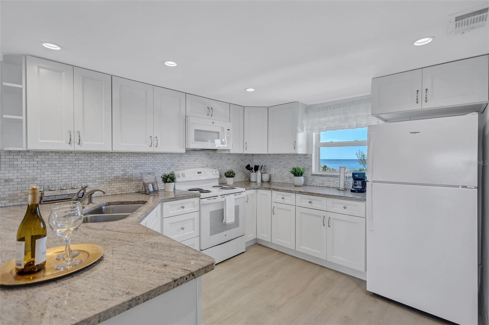 Discover an exclusive, gated oasis at the southernmost tip of Siesta Key. This recently renovated 5th-floor condo, nestled within the private 5.2 acre community of The Pointe, offers a lifestyle of unparalleled luxury & tranquility. The residence provides a rare opportunity to witness breathtaking sunrises over Sarasota Bay & celebrate unforgettable sunsets over Midnight Pass & the Gulf of America. Inside, a chef’s kitchen features solid-wood, soft-close cabinetry, granite countertops & several new appliances. The 2 full bathrooms are equally modern with new fixtures & sleek quartz vanity tops. Throughout the light-filled, move-in-ready home with Impact Glass windows, elegant luxury vinyl & porcelain tile provide low-maintenance sophistication. The new professional staging can be included or purchased separately. Relax on your spacious, 29-foot screened lanai as you watch kayakers glide over the water & observe the natural beauty of the Neville Bird Sanctuary. Engage with resort-style amenities, including a heated lap pool & spa, lighted tennis & pickleball courts, a fitness center & saunas. The pet-friendly community offers the ultimate peace of mind with a dedicated management team & dual elevators. For the boater, slips up to 26 feet & kayak storage are available for a nominal annual fee. Located on an elevated part of the Key, this property had no water damage or storm assessments in 2024. Enjoy the convenience of a short stroll to Turtle Beach & the free public trolley to Siesta Village & Siesta Beach.