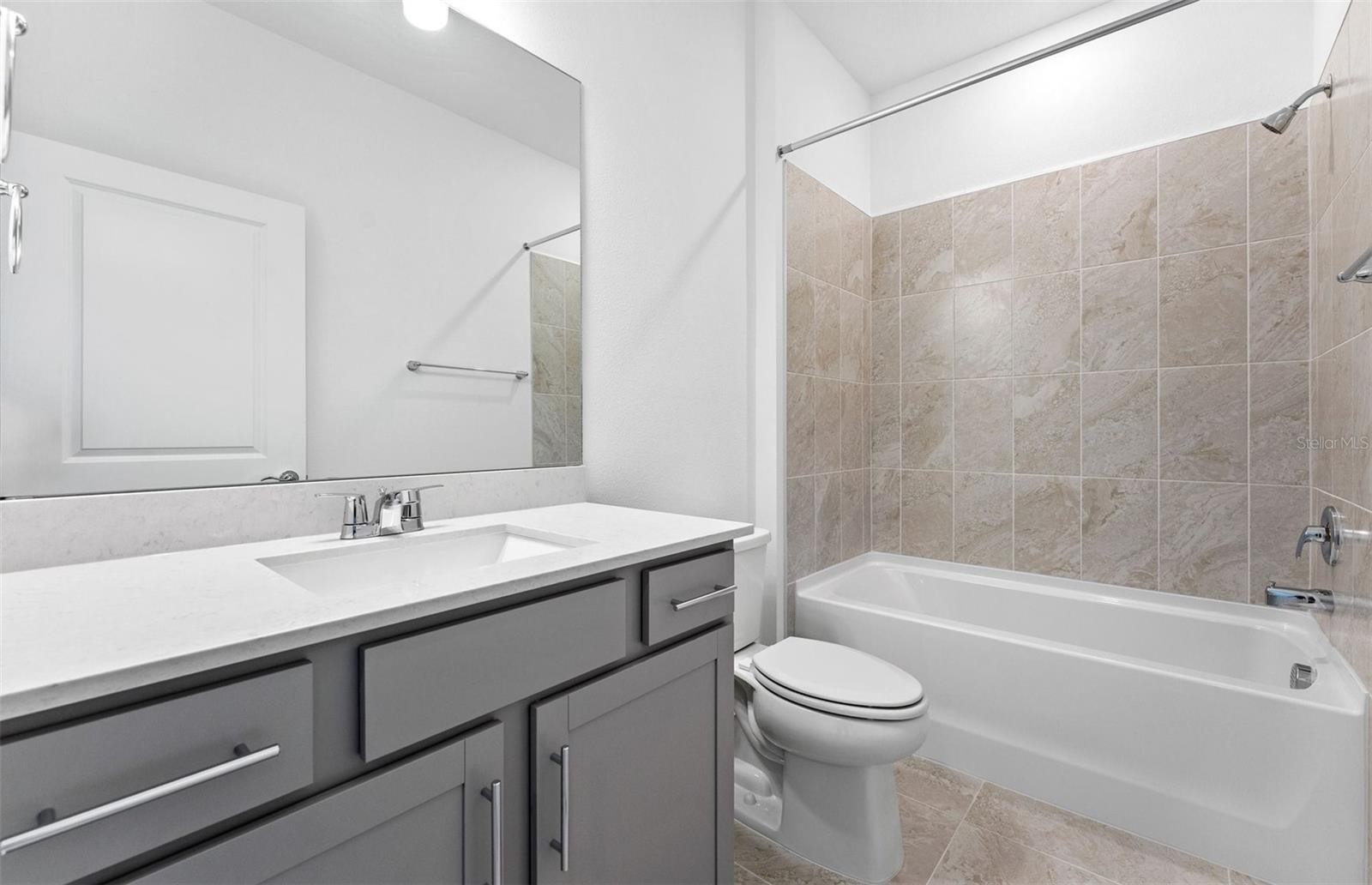 One or more photo(s) has been virtually staged. Move in Ready Available NOW!! Experience a new level of retirement living at Del Webb Sunchase in Parrish, FL, including free HOA for 1 year. Picture a meticulously designed, resort-style residence with state-of-the-art amenities and engaging social spaces where lifelong connections are made. This community offers a full-time lifestyle director, resort-style pool, pickleball courts and stadium, putting green, golf simulator and more. You’ll enjoy close proximity to world-class beaches, easy access to Lakewood Ranch, Sarasota, St Pete and Tampa, lush landscapes, and convenient living all in one. This home has the upgrades you've been looking for, featuring the perfectly sized Heston floor plan with a single-story, open-concept home design. The designer kitchen showcases an island, modern gray cabinets, quartz countertops with a 4"x12" tiled backsplash, a large pantry, Whirlpool stainless steel appliances including a dishwasher, microwave, gas range, and refrigerator and a large single-bowl sink. The bathrooms have matching gray cabinets and quartz countertops, comfort height commodes and a walk-in shower and dual sinks in the Owner's bath. There is 22”x22” floor tile in the main living areas, baths, and laundry room, and stain-resistant carpet in the bedrooms. This home also features a laundry room complete with Whirlpool washer and dryer, and a 2-car garage. Additional upgrades include extended covered lanai, 4 LED downlights in the gathering room, pendant pre-wiring in the kitchen, polished chrome cabinet hardware throughout, whole house faux wood blinds and a Smart Home technology package with a video doorbell. Enjoy peace of mind with Pulte’s transferable, 10-year Limited Structural Warranty that covers materials and workmanship in the 1st year, workability of plumbing, electrical, HVAC, and other mechanical systems through the 2nd year, various types of water infiltration and internal leaks through the 5th year, and the structural integrity of the home through the 10th year. Plus, we’re currently offering limited-time incentives and below-market rates!