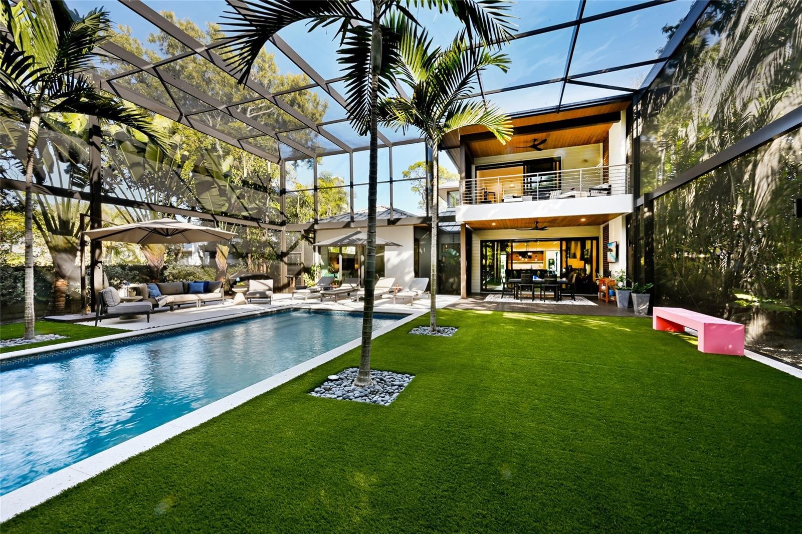 The Epitome of Refined Coastal Luxury in Hudson Bayou: this custom-built Edgewater residence offers a pristine living space crafted with meticulous attention to detail and luxury throughout. Its sleek façade invites you into a world where modern elegance meets tropical serenity. Inside, sunlight pours through expansive windows onto wide-plank Spanish White Oak floors. The open-concept living area flows effortlessly beneath soaring ceilings and modern architectural lines. At the heart of the home, the gourmet chef’s kitchen features Thermador appliances hidden behind sleek cabinetry, quartz countertops, and a dramatic waterfall island designed for culinary artistry and entertaining. The layout blends open gathering areas with private retreats. The main-level Owner’s Retreat offers an unparalleled sense of serenity, with a spa-inspired en-suite featuring a lavish rain shower, a freestanding soaking tub, and designer fixtures. Upstairs, a second primary suite ensures family and guests enjoy equal comfort and privacy – complete with a balcony – a tranquil haven for morning coffee or evening breezes. The home’s dedicated spa-inspired wellness area, with a private sauna and cold plunge, offers an immersive environment for restorative living – the ultimate escape for refined relaxation and wellness. Additionally, a club room with direct outdoor access offers flexible space – an executive office by day and a media lounge by night. The home is also equipped with a whole-house water filtration/RO system for pure water throughout. Resort-Style Outdoor Living: step outside into a luxurious oasis that feels like a private resort. The expansive screened lanai spans the back of the home, ensuring insect-free comfort while framing views of lush palm trees and the heated saltwater pool. Multiple lounge areas and a covered alfresco dining space offer plenty of room for relaxation and entertaining. Fire up the grill for poolside BBQs, host a soirée, or simply unwind with a sunset cocktail. The resort-style pool offers a private island-style escape, surrounded by tropical greenery for seclusion. Whether soaking up the sun on a chaise or chatting in the shade, this outdoor haven makes every day feel like a vacation. Prime Location & Lifestyle: nestled on a quiet dead-end street in prestigious Hudson Bayou — a highly sought-after West of Trail/West of Osprey enclave with its own quaint Pomelo Park — this home offers peaceful privacy while being just moments from vibrant downtown Sarasota. In this golf cart-friendly neighborhood, you’re a short ride from Marie Selby Botanical Gardens, Marina Jack and Bayfront Park. Downtown Sarasota’s boutique shopping, art galleries, theaters, and fine dining are all within a mile, as is the charming Southside Village — home to the iconic Morton’s Gourmet Market and various restaurants and bars. Sarasota Memorial Hospital is also less than a mile away. The property sits in Zone X (not in a flood zone), meaning no flood insurance is required. It is also zoned for the coveted Southside School District, so top-rated schools are within easy reach. This property embodies the ultimate coastal lifestyle, perfect for cherished family memories or substantial rental income, thanks to its short-term rental zoning within Sarasota’s city limits. This is the ultimate retreat for the discerning buyer seeking sophistication and relaxation – a rare opportunity where privacy, luxury, and location converge.