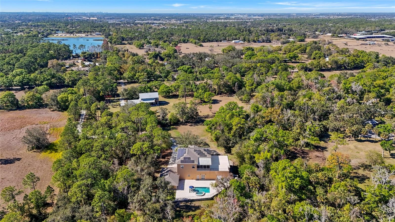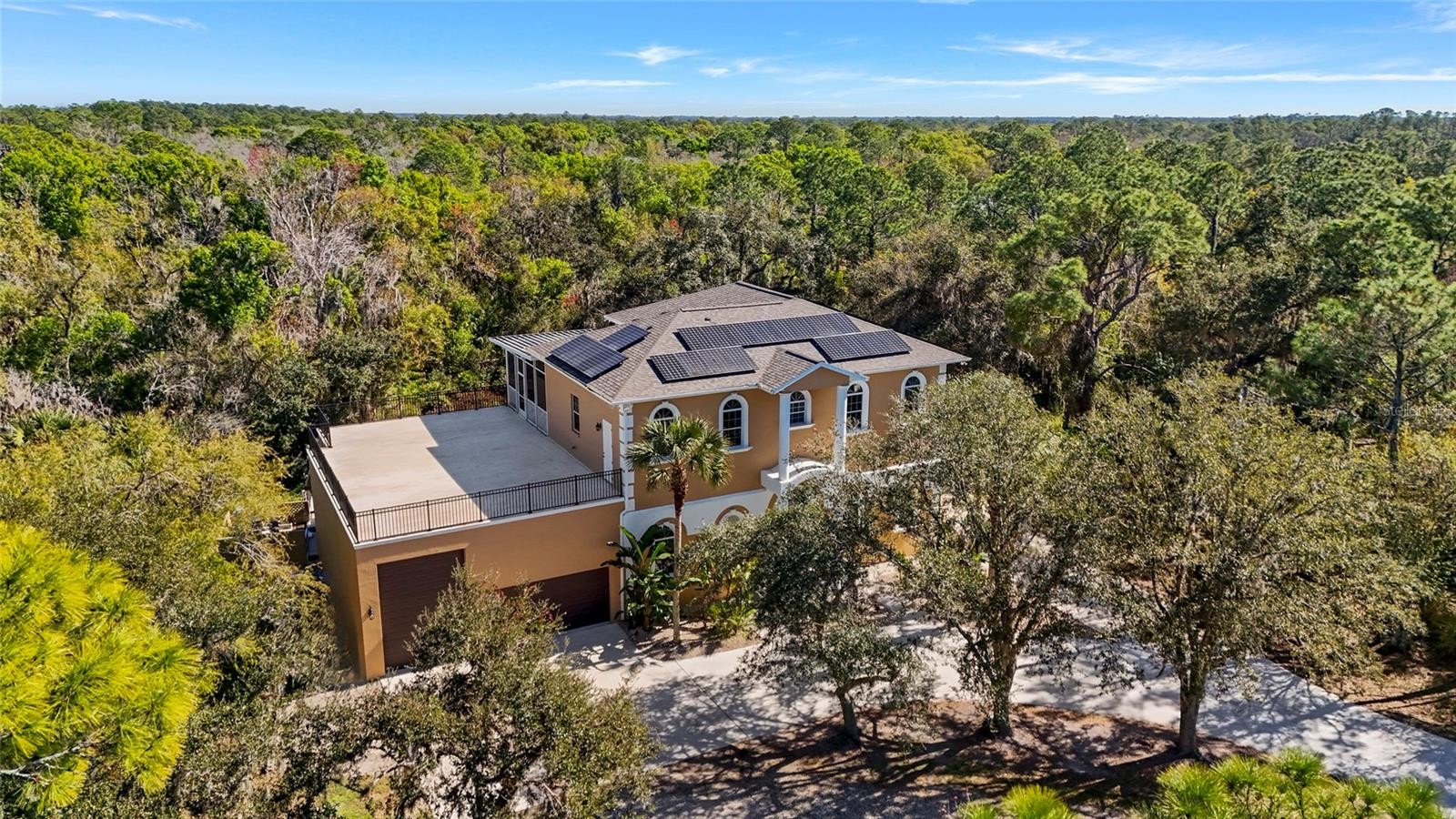 Welcome to an exceptional, one-of-a-kind luxury estate offering total privacy, massive upgrades, and unmatched versatility, all just minutes from Lakewood Ranch and every modern convenience. At the heart of this property is a jaw-dropping RV and collector’s dream garage! The Garage is hurricane-rated, plumbed for a future bathroom, equipped with two 50-amp hookups, soaring ceilings, and space to accommodate a 45+ foot RV plus up to six vehicles, boats, toys, or showroom-quality car storage. Truly unmatched. This solid concrete, all-block construction estate features soaring 15-foot ceilings on both levels, elegant crown molding throughout the great room, dining area, and kitchen, and an incredible coral stone gas fireplace that anchors the living space with dramatic beauty. The thoughtfully designed floor plan offers 4+ bedrooms and 4.5 bathrooms, including a private-entry in-law suite or office — perfect for multi-generational living, guests, or Airbnb potential. The lower level features a versatile game room or potential second owner suite with wet bar, mini fridge, oversized storage, dual-sink bath, large shower, and hurricane-rated doors opening to the pool oasis. An acoustically soundproof theater room delivers a true cinematic experience and can easily serve as an additional bedroom or retreat. Upstairs, the primary suite boasts a spa-style bath with jacuzzi tub and dual sinks, plus access to a stunning 1,500-square-foot upper deck overlooking the heated massive elevated custom pool including zero-entry tanning shelf, eight-person spa and surrounded by travertine is an entertainer’s paradise offering breathtaking views. All of this sits on over 8 private acres with a long, secluded driveway offering TOTAL PRIVACY with NO HOA, NO water bill, NO flood insurance requirement, low insurance, and because of the solar panels, a very low electric bill! This is a true luxury compound, entertainer’s oasis, multi-generational estate, and investor opportunity wrapped into one — powered by green energy, built to last with solid concrete construction, and unlike anything else on the market. Nothing compares in Sarasota or Lakewood Ranch for acreage, privacy, construction quality, and proximity to town — with Publix, Aldi, Starbucks, hospitals, top-rated schools (including Out-of-Door Academy), restaurants, parks, salons, theaters, and country clubs just minutes away. Priced well below appraisal. Exceptional. Private. Luxurious. One-of-a-kind.