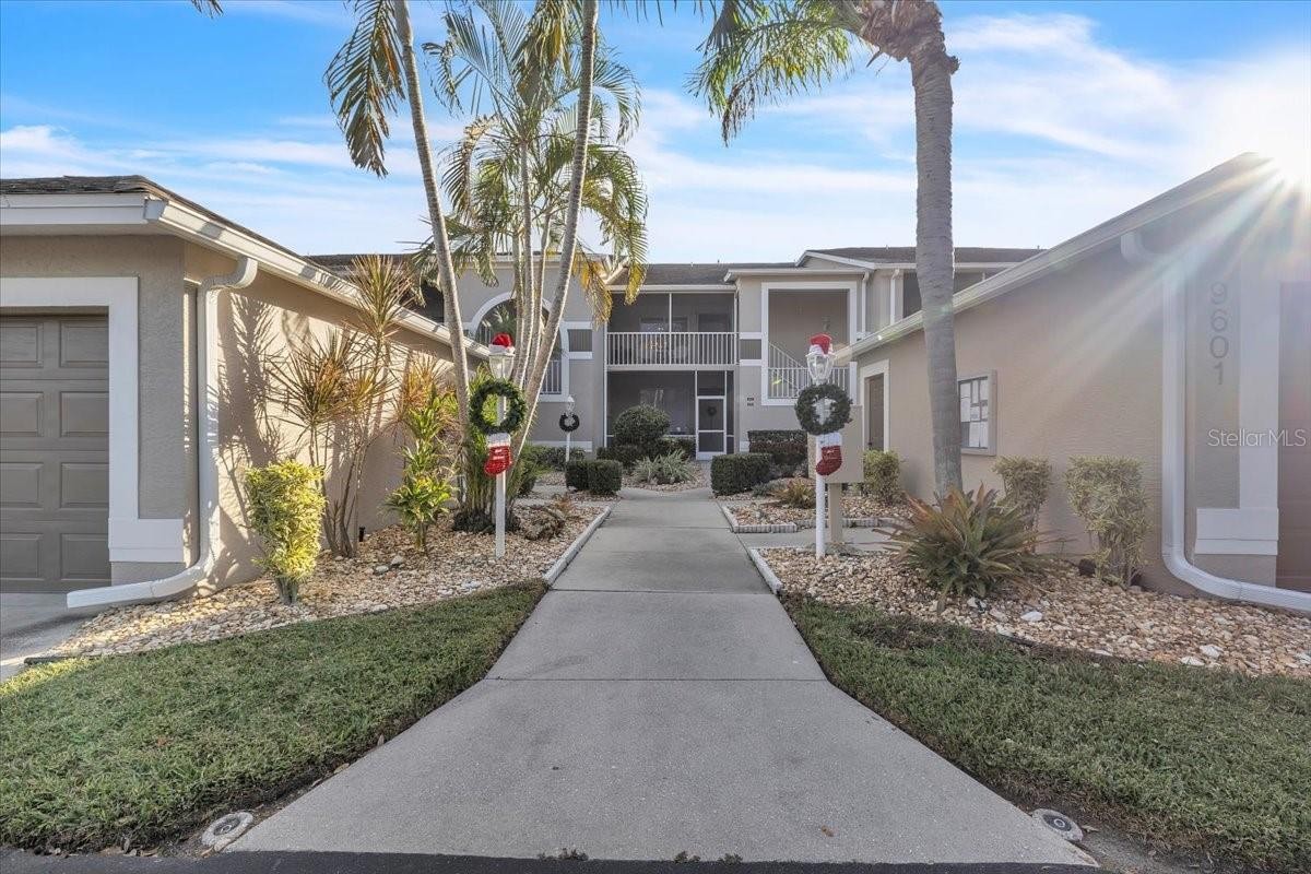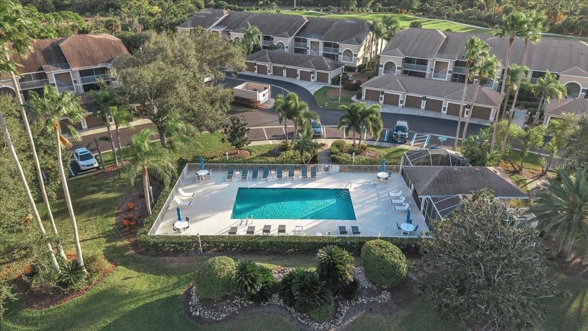 Welcome to Stoneybrook Golf and Country Club. This inviting second-floor, two-bedroom, two-bath condo in the Verandas offers a comfortable, well-designed living space with thoughtful updates throughout. The open floor plan is enhanced by high ceilings and diagonally laid tile flooring that extends throughout the main living areas, adding visual interest while remaining easy to maintain. Both front and rear lanais enhance everyday living, with the front lanai offering open, unobstructed views that do not overlook garage rooftops. The kitchen features updated raised-panel cabinetry and solid-surface countertops and overlooks the living and dining areas, creating a bright, open setting ideal for entertaining. An attached dinette includes two pantry closets, with sliding glass doors that open to the front screened-in lanai. Additional sliders from the living and dining area lead to the glassed enclosed rear lanai, where you can relax and enjoy peaceful views of the wooded preserve. The primary bedroom offers direct access to the lanai and features two walk-in closets and a private en-suite bath with dual sinks and a tiled walk-in shower accented by a modern glass enclosure. The guest bedroom is finished with wood laminate flooring, includes a built-in closet, and enjoys convenient access to its own full bathroom—perfect for visitors or everyday comfort. Recent improvements include an air conditioning system (2023), complete with a Nest thermostat, air scrubber, and UV lighting, and a new refrigerator. A detached one-car garage provides secure parking and additional space for bikes and beach gear, with overhead storage for added convenience. The heated community pool is just a short stroll away. A deeded full golf membership conveys with the property, granting access to an Arthur Hills–designed 18-hole golf course, Har-Tru lighted tennis courts, pickleball, bocce ball, a large, heated pool and spa, and a full-service clubhouse featuring a restaurant, bar, meeting rooms, pro shop, fitness center, and a variety of planned activities. Walking and biking trails are easily accessible, including nearby access to the Legacy Trail. Siesta Key’s renowned sugar-sand beaches are less than 15 minutes away, and the Stoneybrook location offers close proximity to shopping, dining, movie theaters, and everyday conveniences—delivering a lifestyle that’s easy to enjoy. **PLEASE ENJOY THE 3D INTERACTIVE VIRTUAL TOUR ASSOCIATED WITH THIS LISTING**