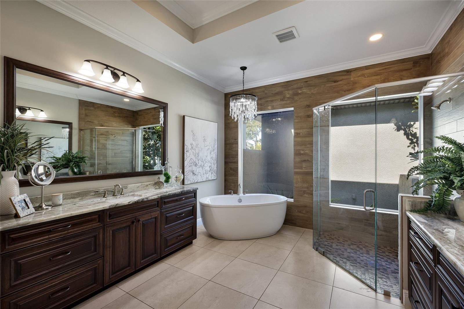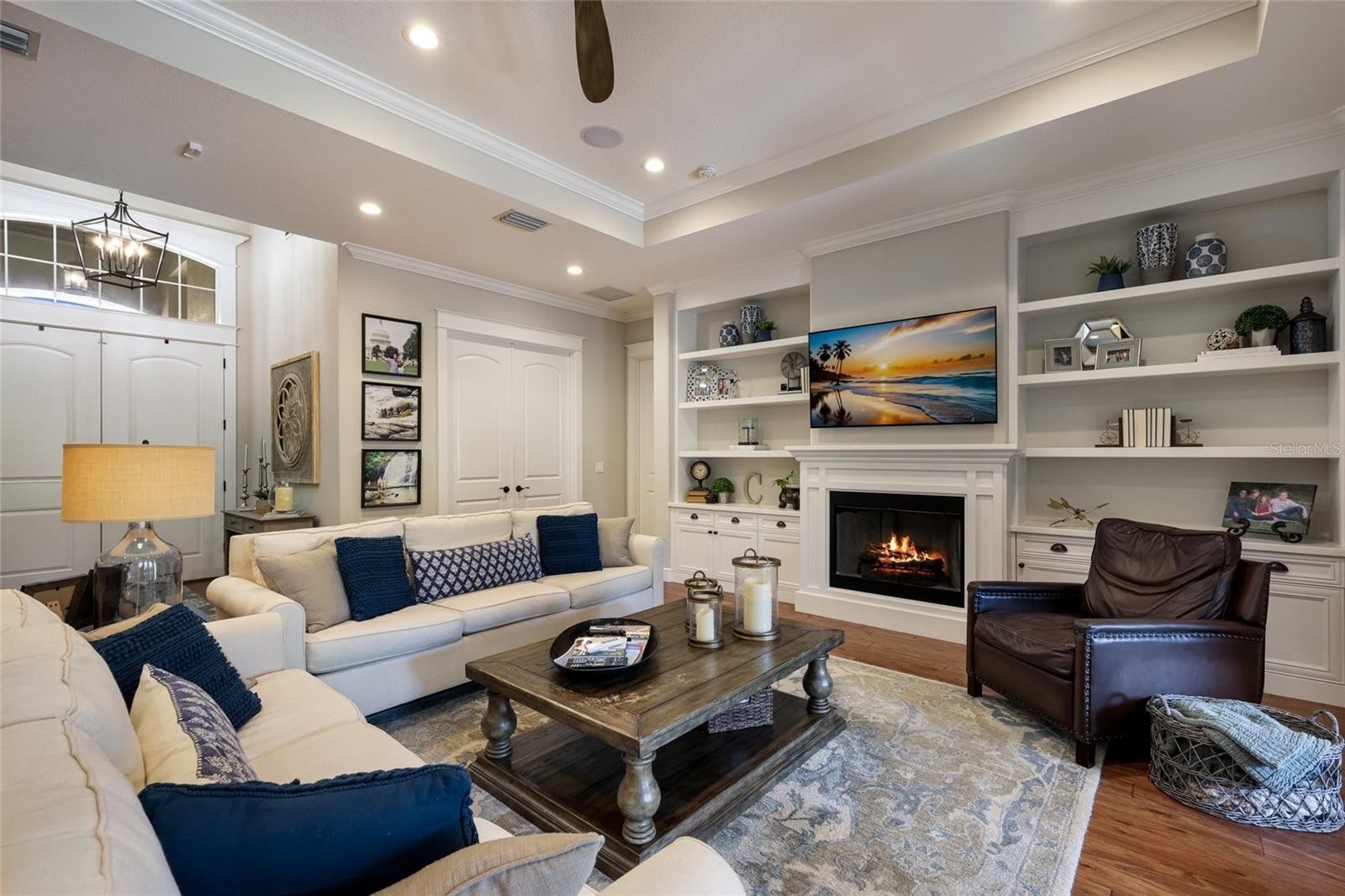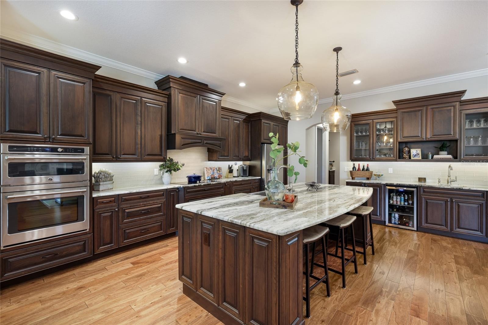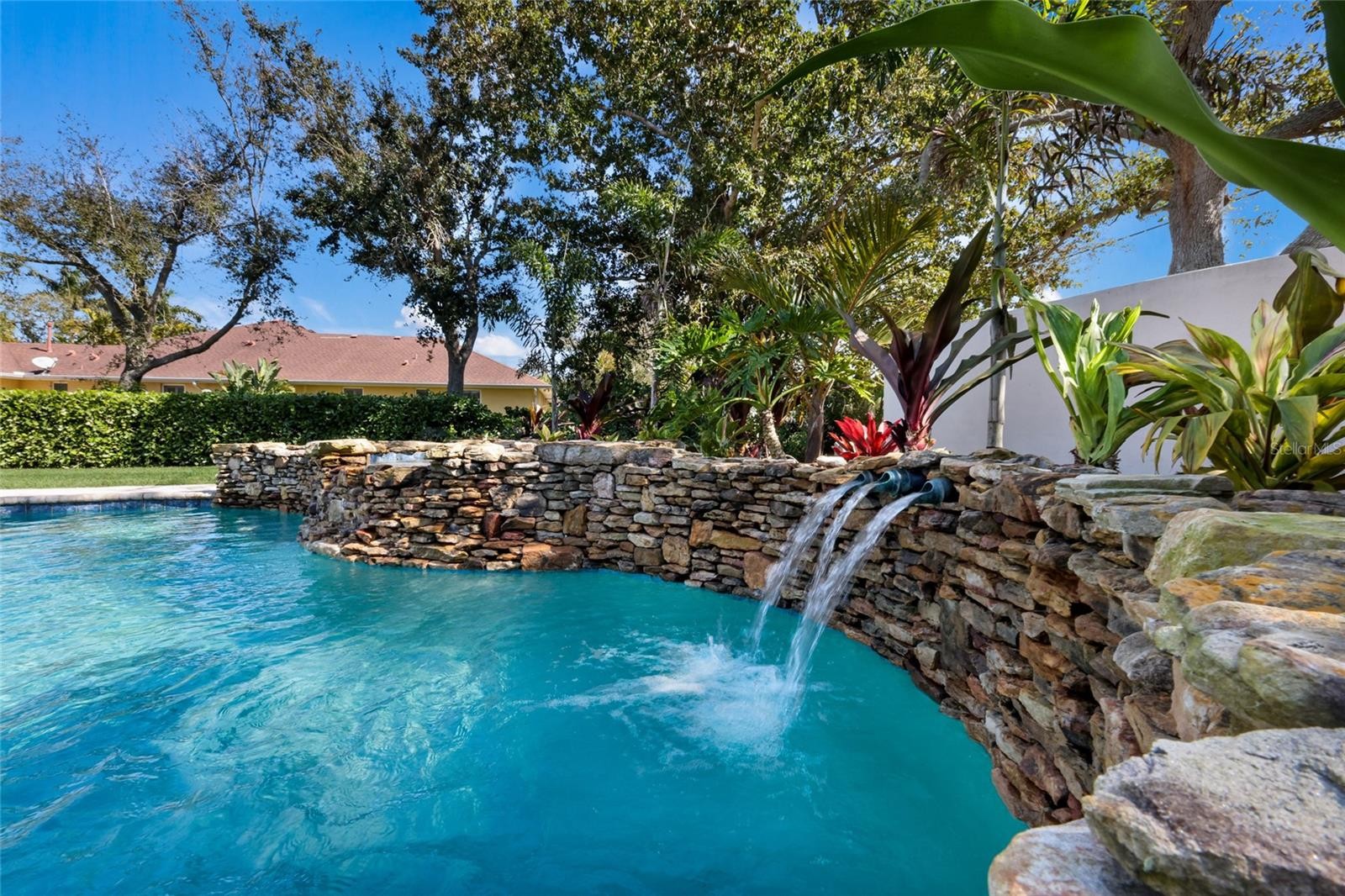 Located in the prestigious gated community of The Loop in Northwest Bradenton, this exceptional custom estate at 9702 18th Drive NW offers refined craftsmanship, expansive indoor-outdoor living, and thoughtful architectural detail throughout. Situated on a private half-acre homesite, this 4-bedroom, 4.5-bath residence was designed for both everyday comfort and elevated entertaining. The oversized covered front porch, accented by a beautifully detailed wood ceiling, establishes the home’s custom craftsmanship from the moment you arrive. Upon entry, a spacious foyer welcomes you with an immediate sense of openness and architectural presence. Rich hardwood floors flow throughout the home, complemented by extensive crown molding, custom baseboards, detailed millwork, and beautifully cased windows adorned with plantation shutters. Each oversized bedroom is ensuite and features a spacious walk-in closet with custom built-ins. At the heart of the home, the oversized family room and kitchen create an open, flowing space perfect for daily living and entertaining. The kitchen is a true dream — featuring a large center island, ample custom wood cabinetry in a sophisticated custom finish, and a wet bar ideal for hosting. GE Profile appliances, an expansive walk-in pantry, oversized laundry room, and dedicated mudroom area complete the space, seamlessly blending style, function, and comfort. Lutron lighting with dimming capability and whole-home surround sound further enhance the living areas, while three HVAC systems, including two Nest-controlled units accessible by app, ensure year-round comfort. The outdoor living experience is truly exceptional. An expansive covered lanai with a rich wood ceiling seamlessly extends the interior living space, creating the perfect setting for entertaining or relaxing. A fully equipped outdoor kitchen with built-in grill complements the space, while beyond the lanai, the oversized pool deck surrounds a custom saltwater pool with sundeck and spa — the centerpiece of this resort-style backyard. Finished with elegant stonework, a tranquil fountain feature, and fully enclosed by a wrought-iron fence, the backyard offers ample space for lounging, dining, and enjoying the retreat. Lush, mature landscaping enhanced by professionally designed landscape lighting completes the private oasis, delivering beauty and ambiance day or night. Adding tremendous versatility, the private-entry casita offers flexibility as a mother-in-law suite, guest retreat, private office, or gym. Complete with its own kitchenette featuring a sink, refrigerator, and microwave, it functions as a self-contained space ideal for extended family or work-from-home privacy. Additional highlights include hurricane impact windows, spray foam attic insulation for enhanced energy efficiency, two garages with ample storage, and an irrigation system on a private well — helping maintain the beautifully landscaped grounds while keeping water costs down. This is a rare opportunity to own a meticulously crafted custom home that blends timeless design, modern technology, and extraordinary indoor-outdoor living in one of Northwest Bradenton’s most desirable gated communities.