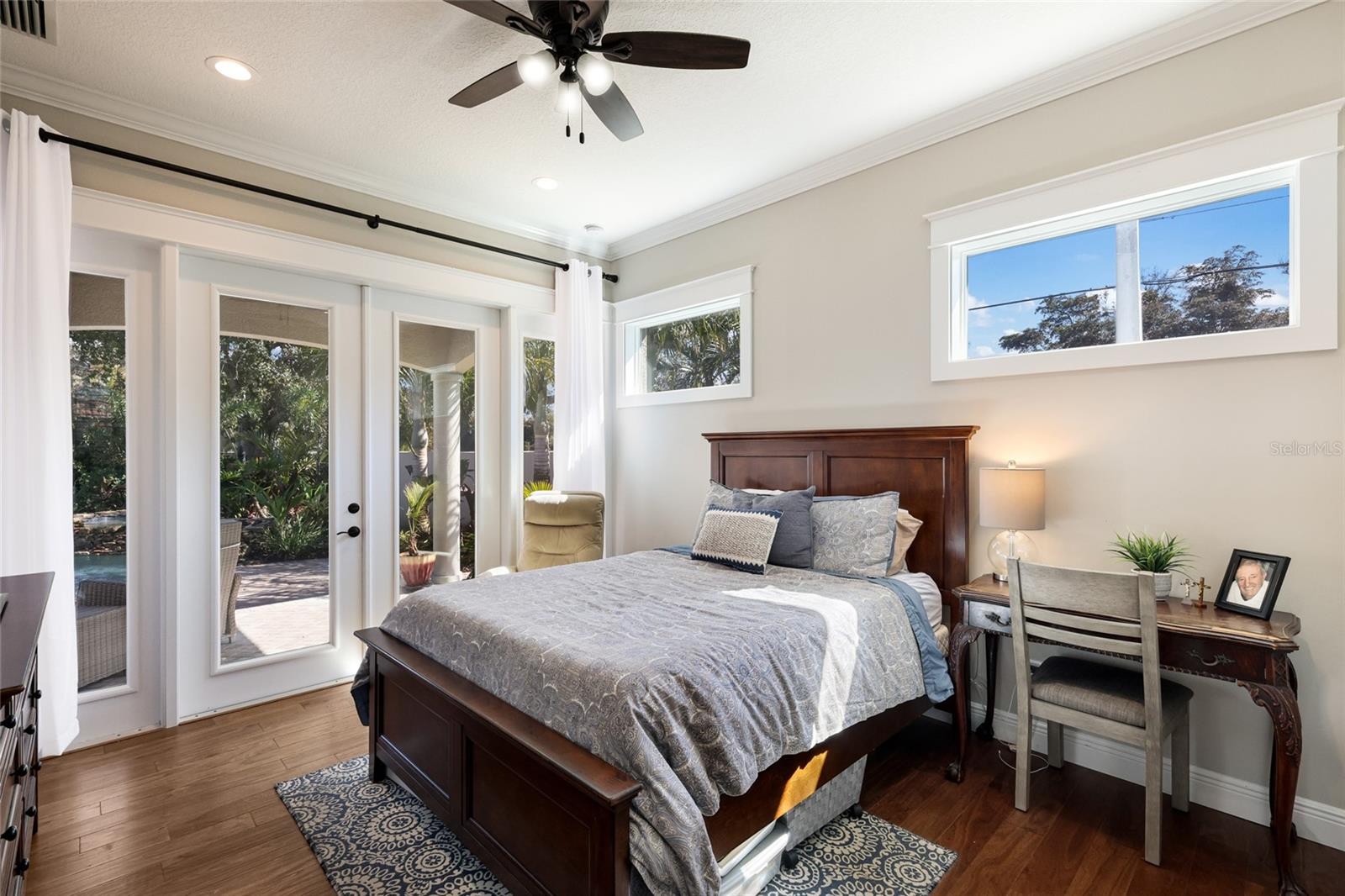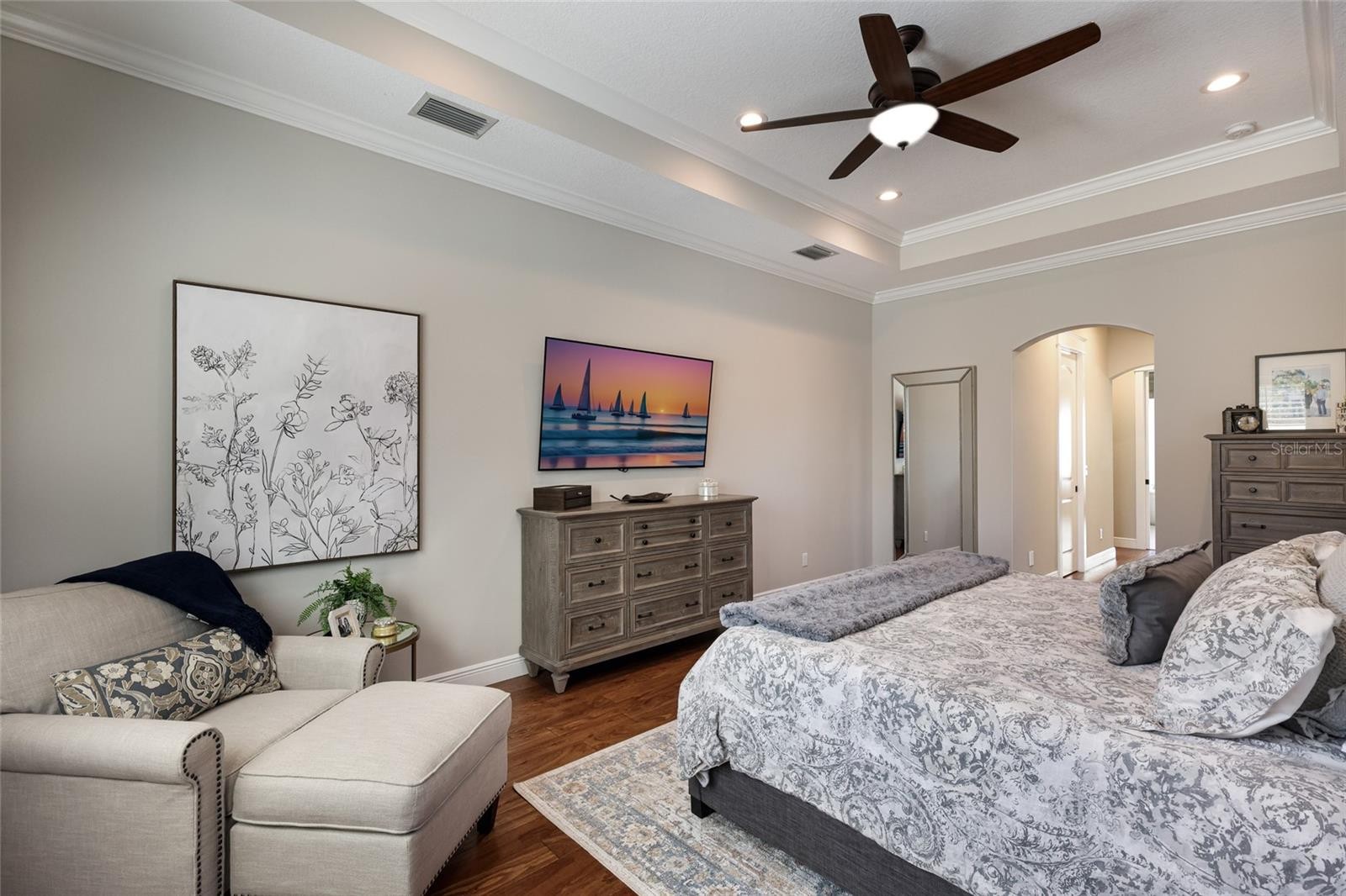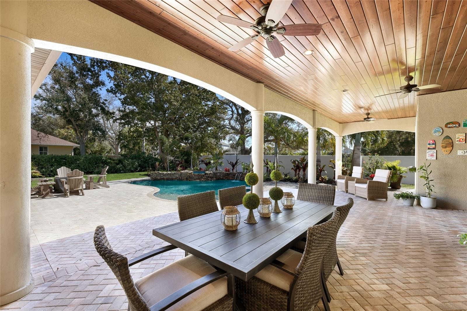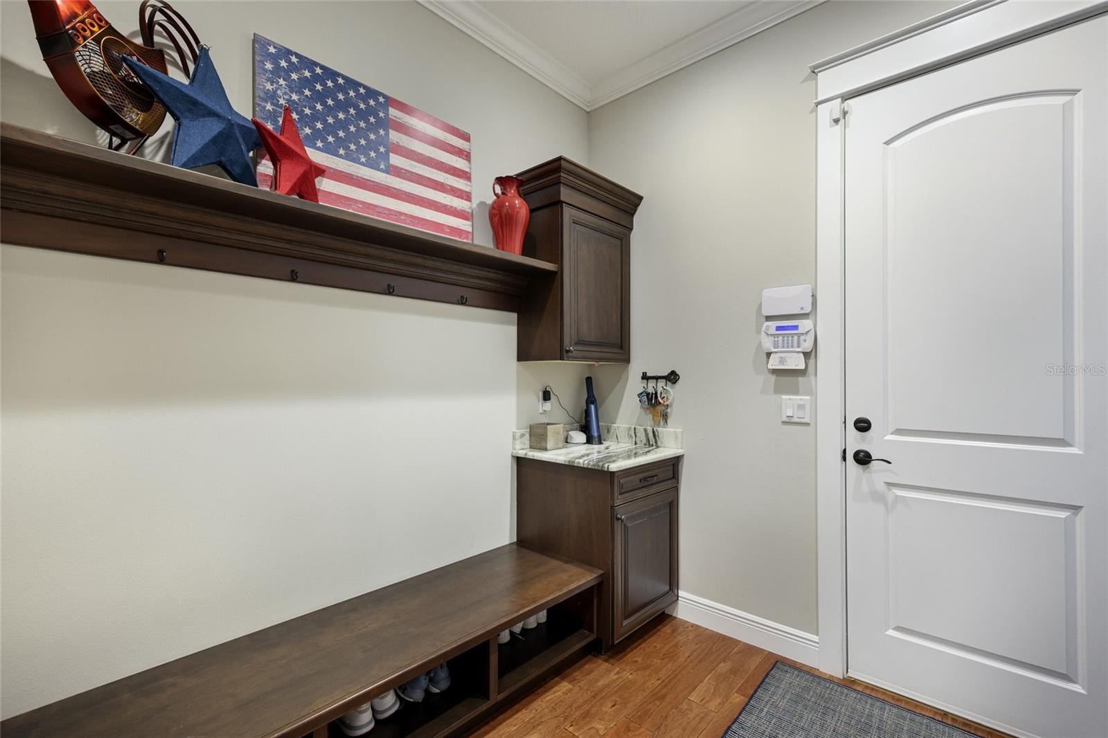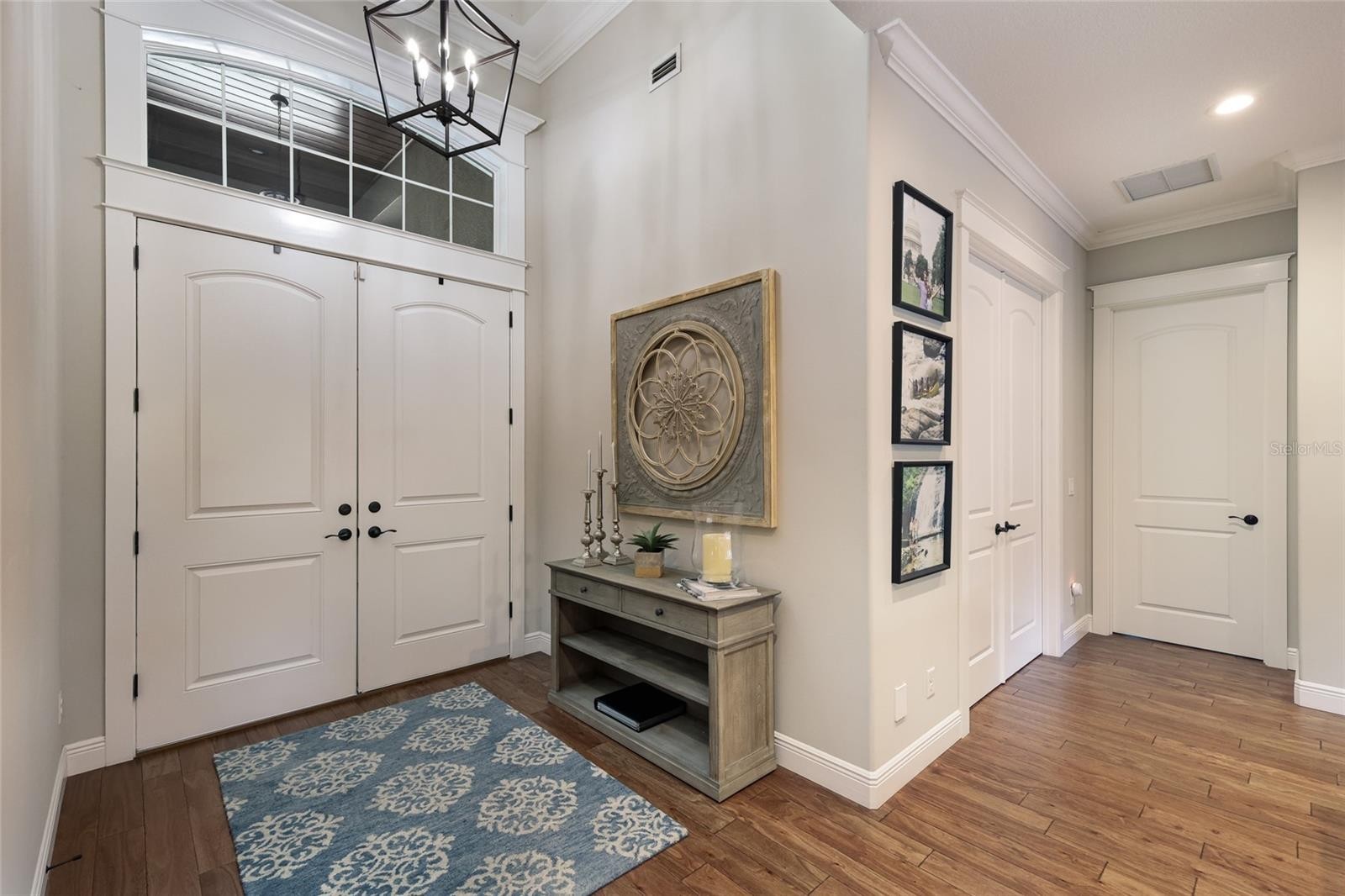 Located in the prestigious gated community of The Loop in Northwest Bradenton, this exceptional custom estate at 9702 18th Drive NW offers refined craftsmanship, expansive indoor-outdoor living, and thoughtful architectural detail throughout. Situated on a private half-acre homesite, this 4-bedroom, 4.5-bath residence was designed for both everyday comfort and elevated entertaining. The oversized covered front porch, accented by a beautifully detailed wood ceiling, establishes the home’s custom craftsmanship from the moment you arrive. Upon entry, a spacious foyer welcomes you with an immediate sense of openness and architectural presence. Rich hardwood floors flow throughout the home, complemented by extensive crown molding, custom baseboards, detailed millwork, and beautifully cased windows adorned with plantation shutters. Each oversized bedroom is ensuite and features a spacious walk-in closet with custom built-ins. At the heart of the home, the oversized family room and kitchen create an open, flowing space perfect for daily living and entertaining. The kitchen is a true dream — featuring a large center island, ample custom wood cabinetry in a sophisticated custom finish, and a wet bar ideal for hosting. GE Profile appliances, an expansive walk-in pantry, oversized laundry room, and dedicated mudroom area complete the space, seamlessly blending style, function, and comfort. Lutron lighting with dimming capability and whole-home surround sound further enhance the living areas, while three HVAC systems, including two Nest-controlled units accessible by app, ensure year-round comfort. The outdoor living experience is truly exceptional. An expansive covered lanai with a rich wood ceiling seamlessly extends the interior living space, creating the perfect setting for entertaining or relaxing. A fully equipped outdoor kitchen with built-in grill complements the space, while beyond the lanai, the oversized pool deck surrounds a custom saltwater pool with sundeck and spa — the centerpiece of this resort-style backyard. Finished with elegant stonework, a tranquil fountain feature, and fully enclosed by a wrought-iron fence, the backyard offers ample space for lounging, dining, and enjoying the retreat. Lush, mature landscaping enhanced by professionally designed landscape lighting completes the private oasis, delivering beauty and ambiance day or night. Adding tremendous versatility, the private-entry casita offers flexibility as a mother-in-law suite, guest retreat, private office, or gym. Complete with its own kitchenette featuring a sink, refrigerator, and microwave, it functions as a self-contained space ideal for extended family or work-from-home privacy. Additional highlights include hurricane impact windows, spray foam attic insulation for enhanced energy efficiency, two garages with ample storage, and an irrigation system on a private well — helping maintain the beautifully landscaped grounds while keeping water costs down. This is a rare opportunity to own a meticulously crafted custom home that blends timeless design, modern technology, and extraordinary indoor-outdoor living in one of Northwest Bradenton’s most desirable gated communities.