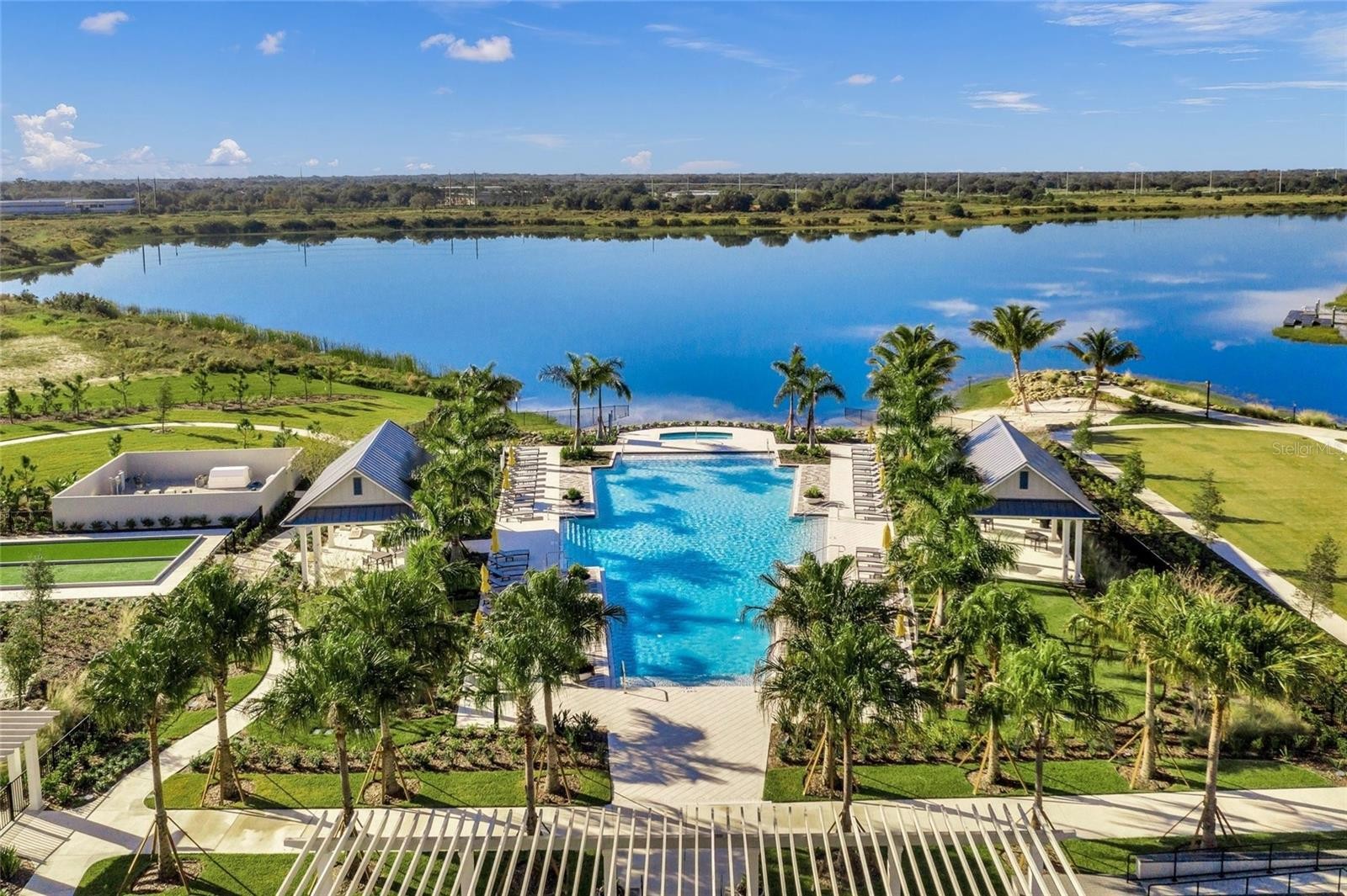 INCREDIBLE VIEWS!....INCREDIBLE FINISHES!....INCREDIBLE COMMUNITY!....You will be WOWED! by this Desirable Skiff Floor Plan located in the Sought After Lakehouse Cove @ Waterside--a Resort Style Amenity Rich Community: Expansive Clubhouse; Fitness Center; Pickleball Courts; Kayak Launch; Dog Park; Playground; Walking Trails and Water Taxi to "downtown" Waterside Place where you will Enjoy Dining, Shopping and Sunday's Farmers Market! This "EXTRA SPECIAL" PREMIUM WATERFRONT LOT is one of only a few that is Uniquely Positioned to enjoy BOTH Glorious SUNRISES as well as Majestic SUNSETS.........BRIGHT and SPACIOUS Interiors; Abundant Closets and Storage; Plantation Shutters and IMPACT WINDOWS/DOORS Throughout; Expansive Kitchen with Natural Gas Cooking & Oversized Quartz Countertop Island---Ideal for all your Meal Prep Needs. Extended Lanai with Clearview Screen---Perfect for Morning Coffees; Dining Al Fresco or Enjoying Your Favorite Podcast with Unobstructed Views of Lake Ibis----Conveniently Located to nearby University Town Center, I-75; Benderson Park; Downtown Sarasota and Your Choice of Lido Key or Top Rated Siesta Key Beach!